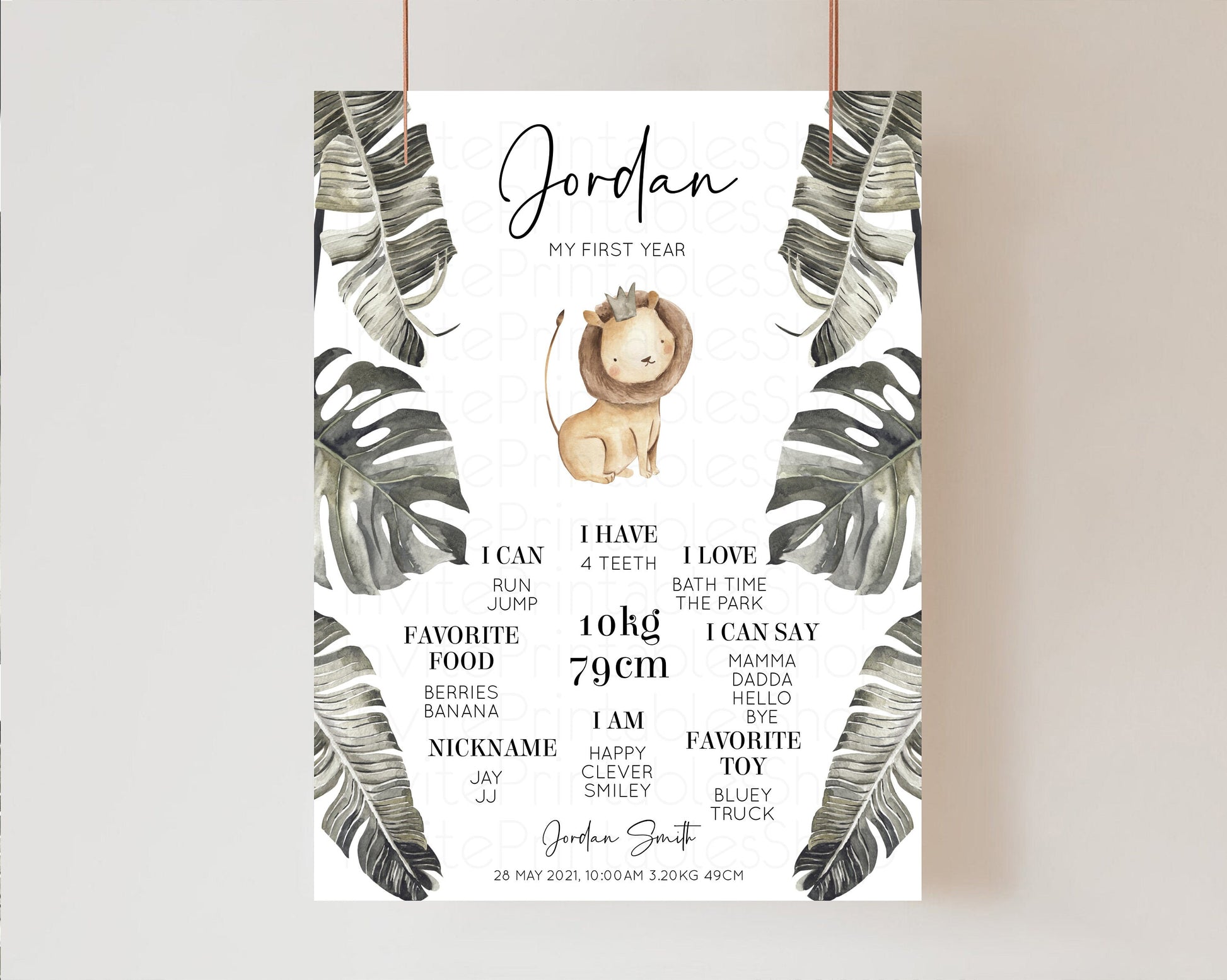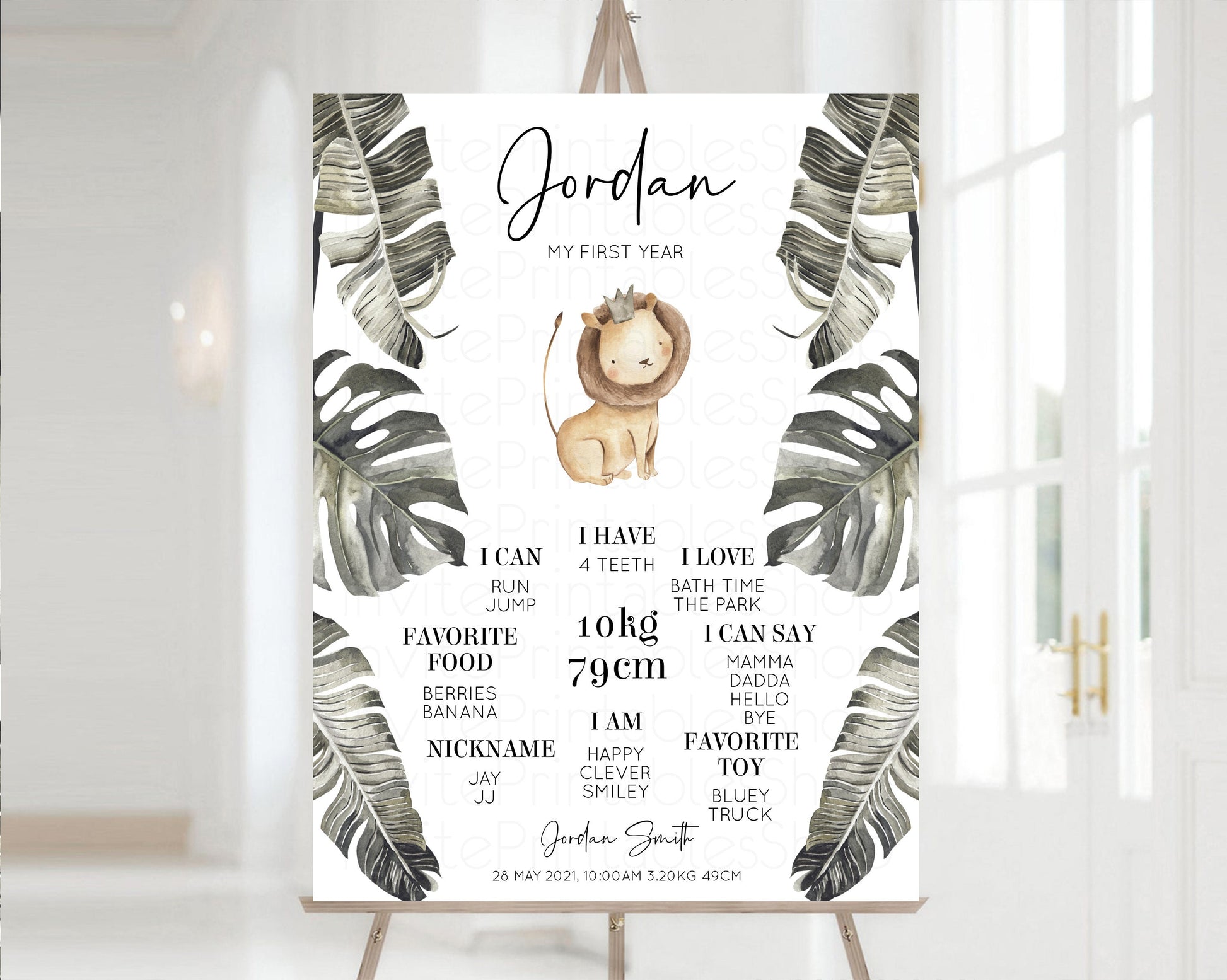 Baby Cub Milestone Sign Board Safari Lion King 1st Birthday Board Jungle Palms Welcome Sign Tropical Leaf 1st Birthday Milestone Sign 584