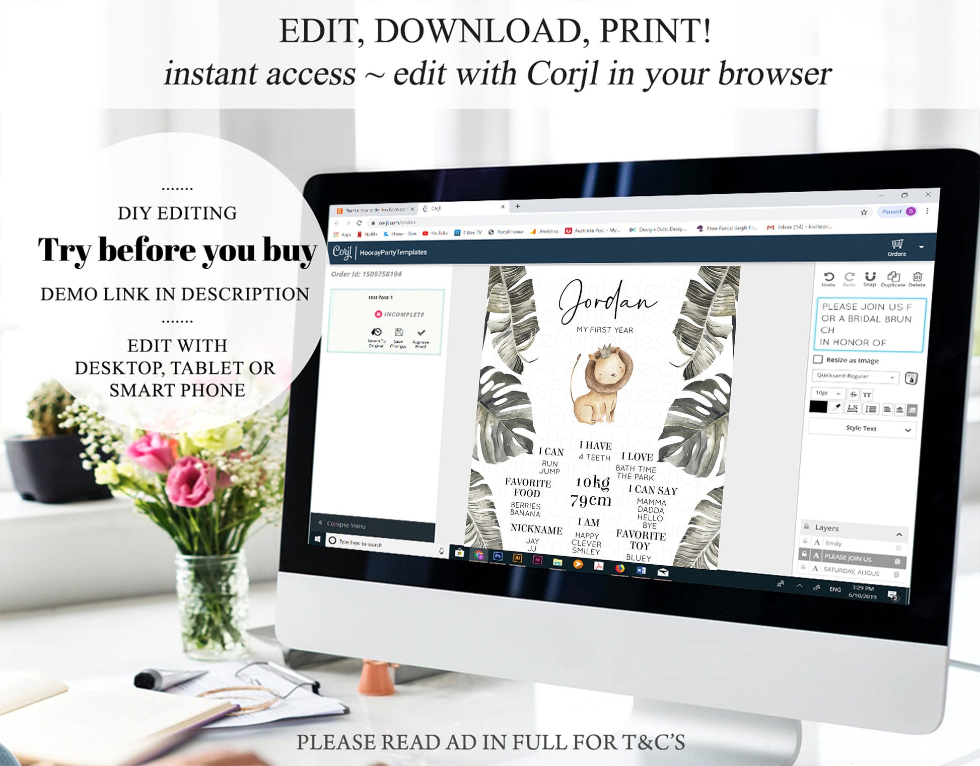 • After purchase, Corjl emails your editing link. Allow up to 15 minutes for delivery.