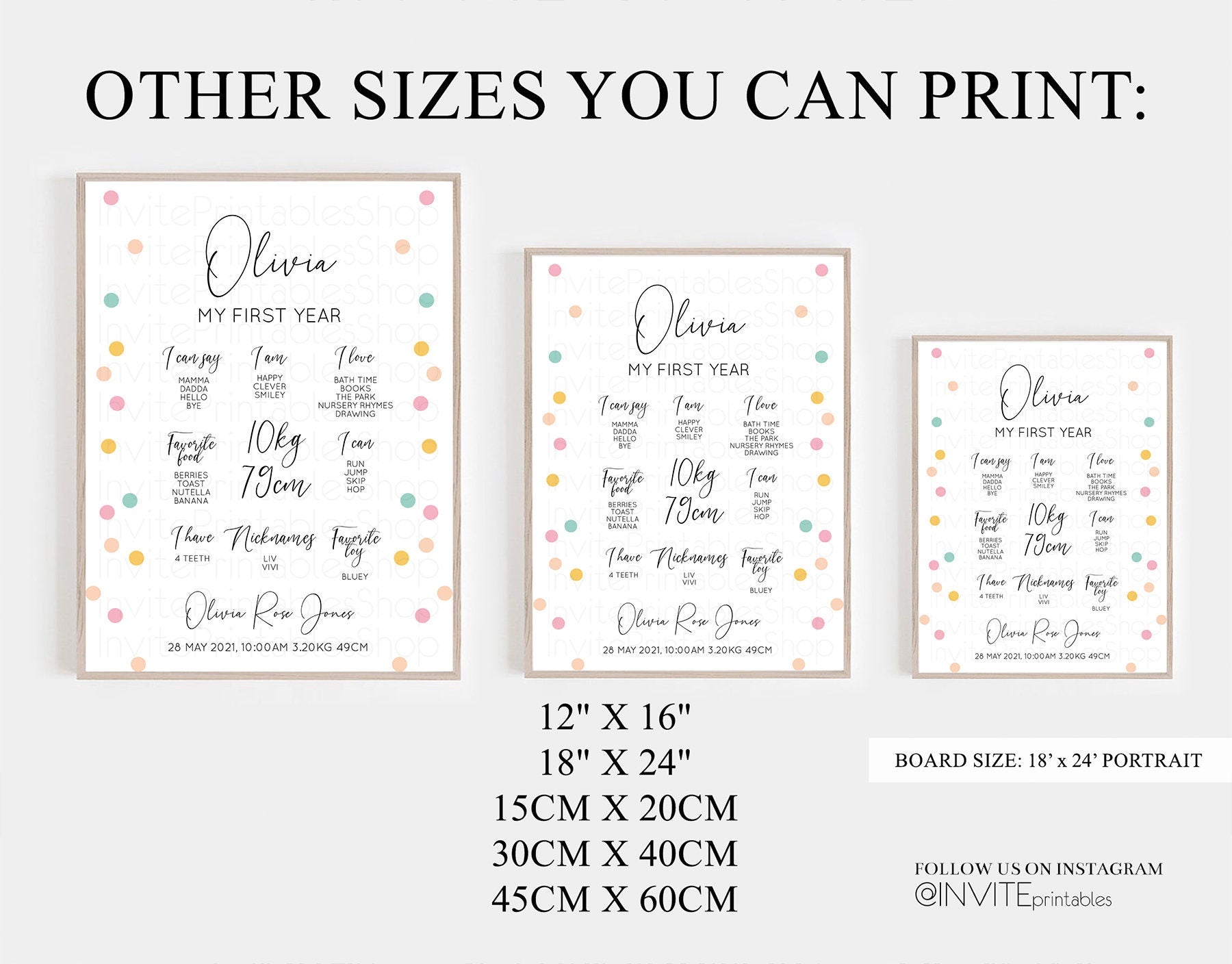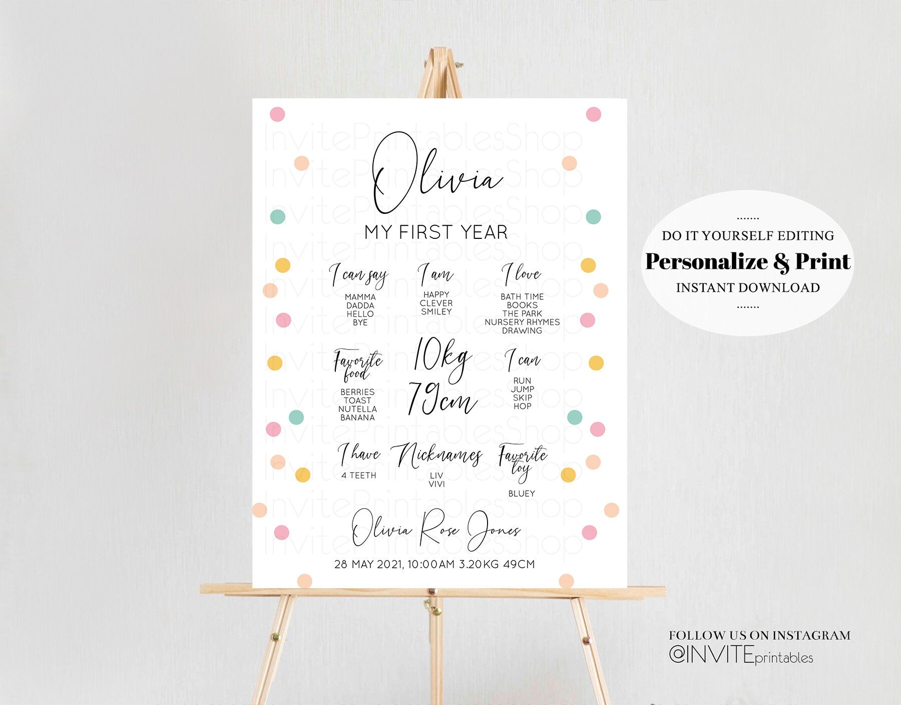 Baby Milestone Board First Birthday Poster Welcome Board 1st Birthday Baby Keepsake Milestone Sign Pastel Colorful Confetti Rainbow Sprinkle