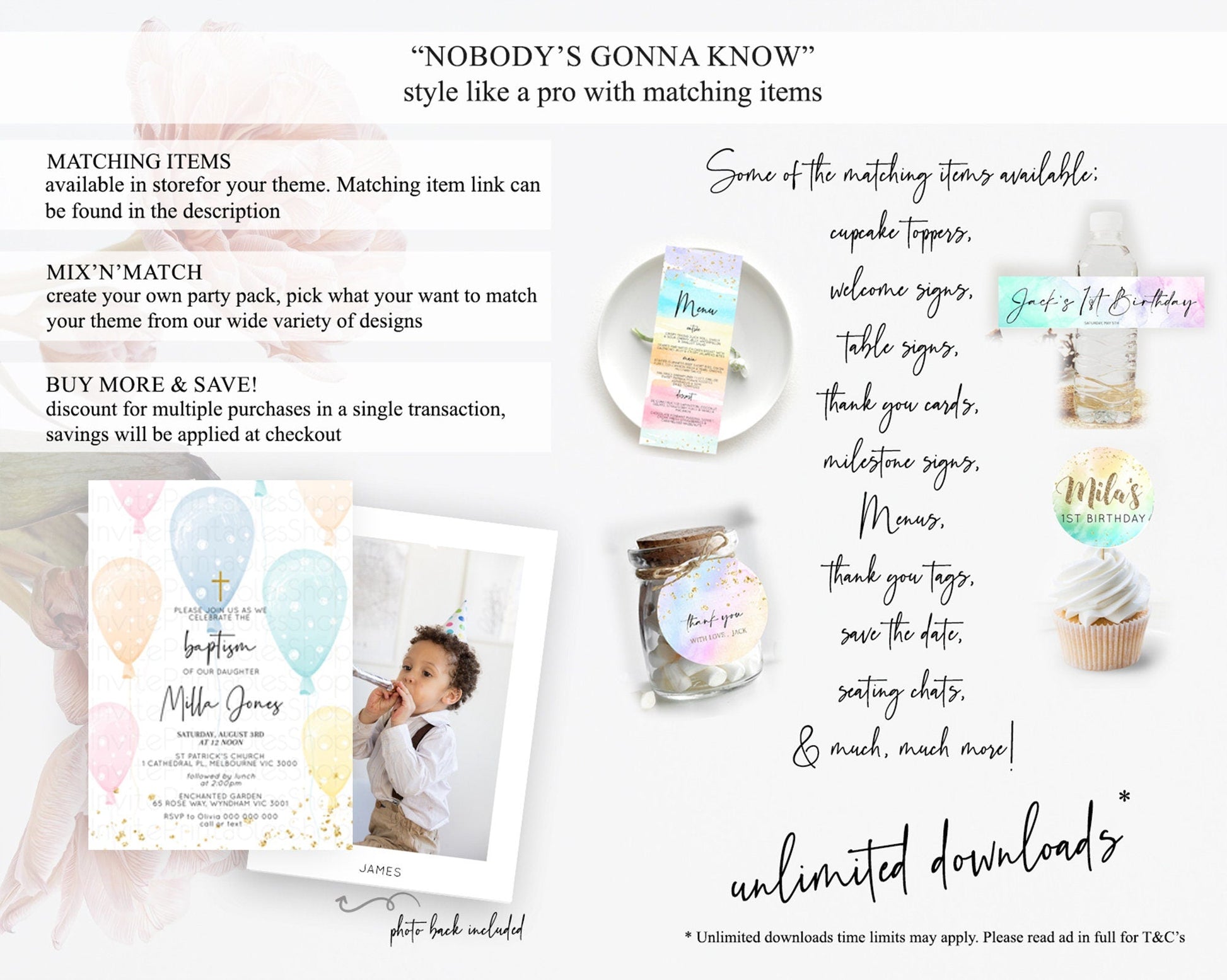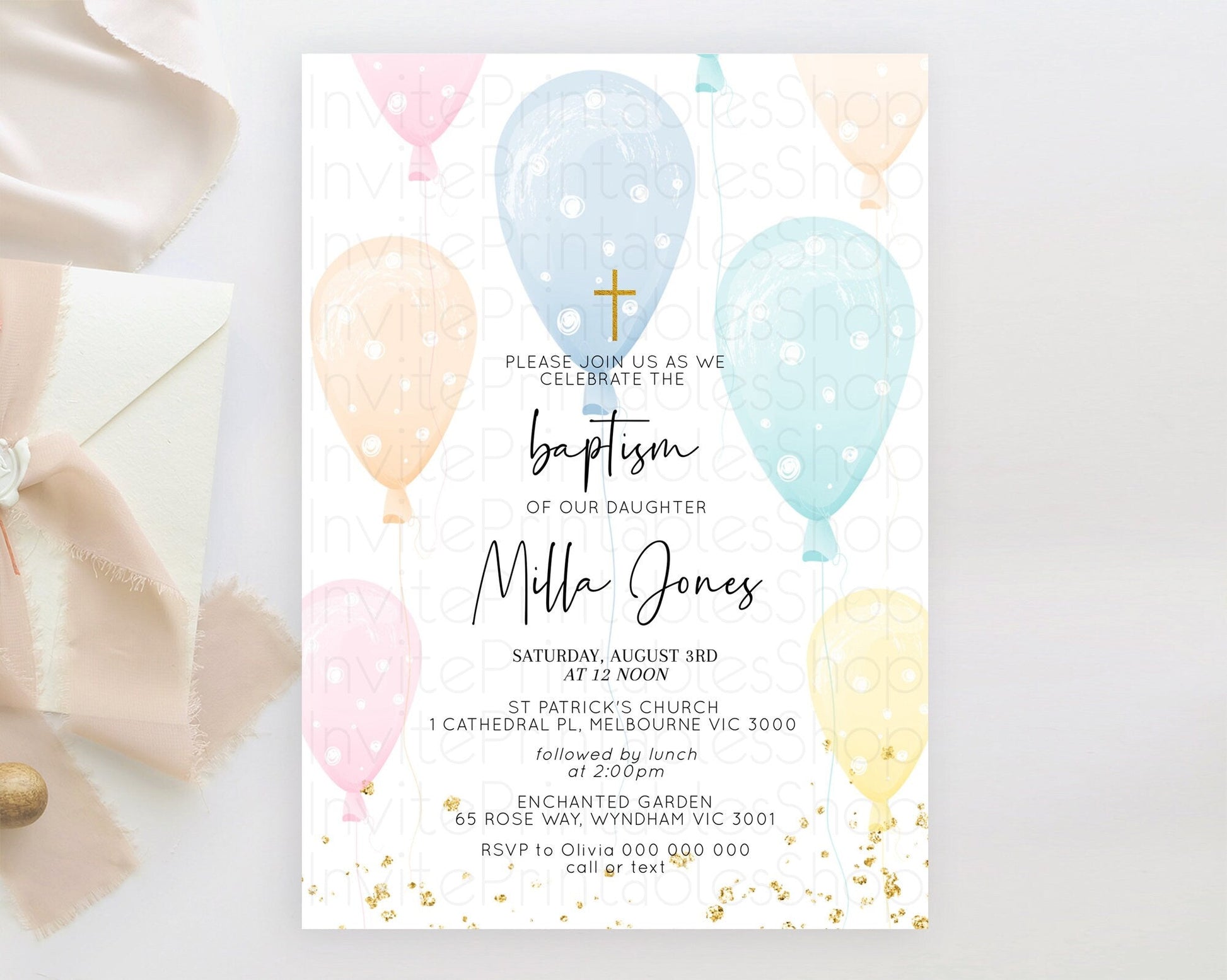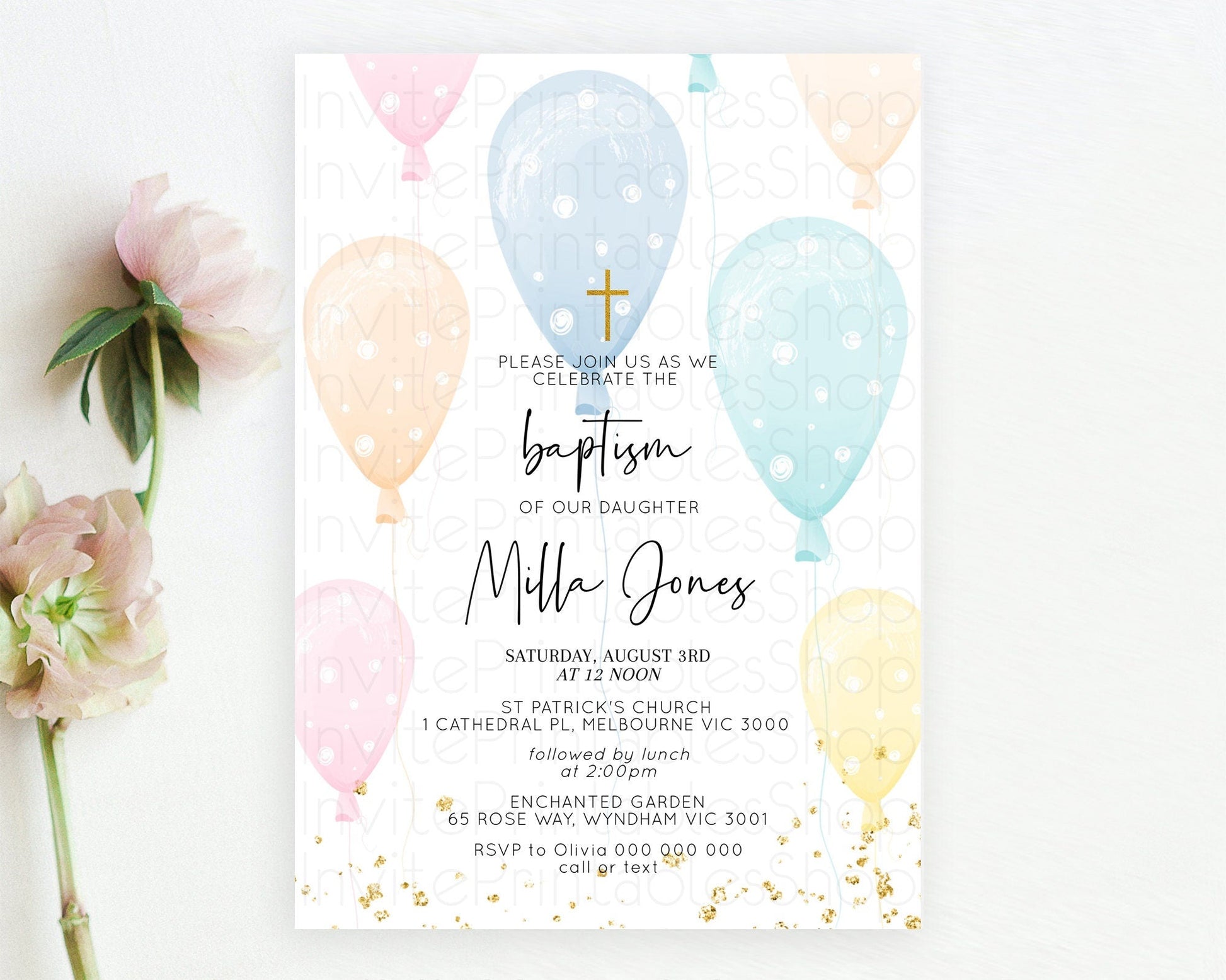 Balloon Baptism Invitation Pastel Baptism 1st Birthday Invitation Pastel Balloon Christening Invite Colorful Rainbow Balloon Invites D10776