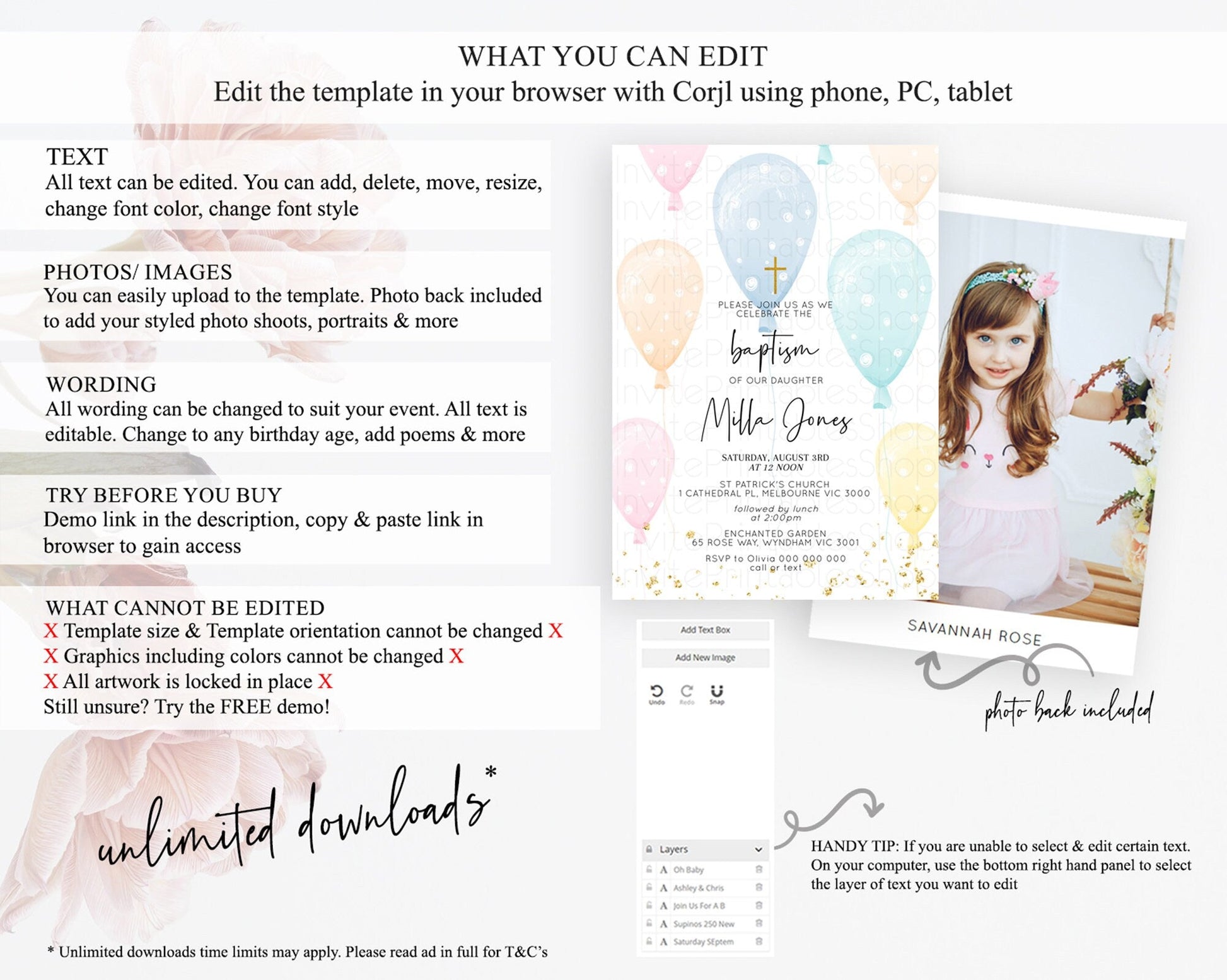 • Template size & orientation cannot be changed. Please use the demo link to confirm this product suits your needs.