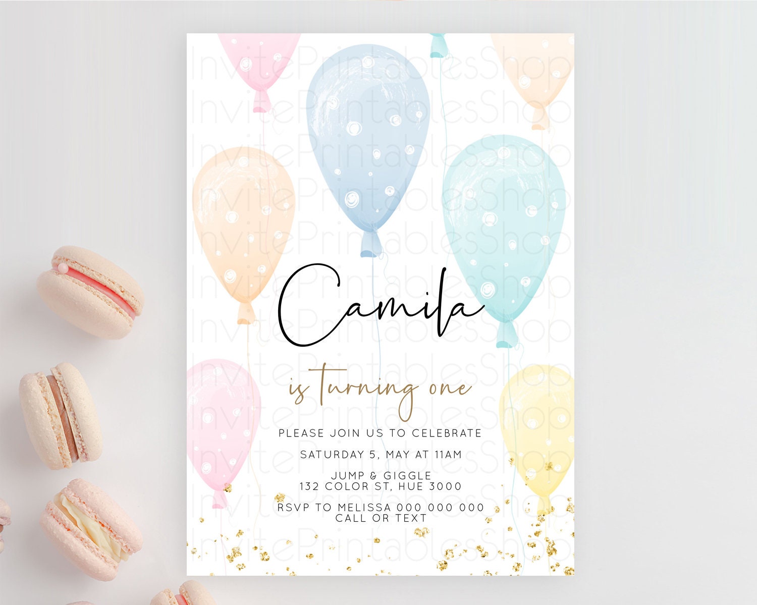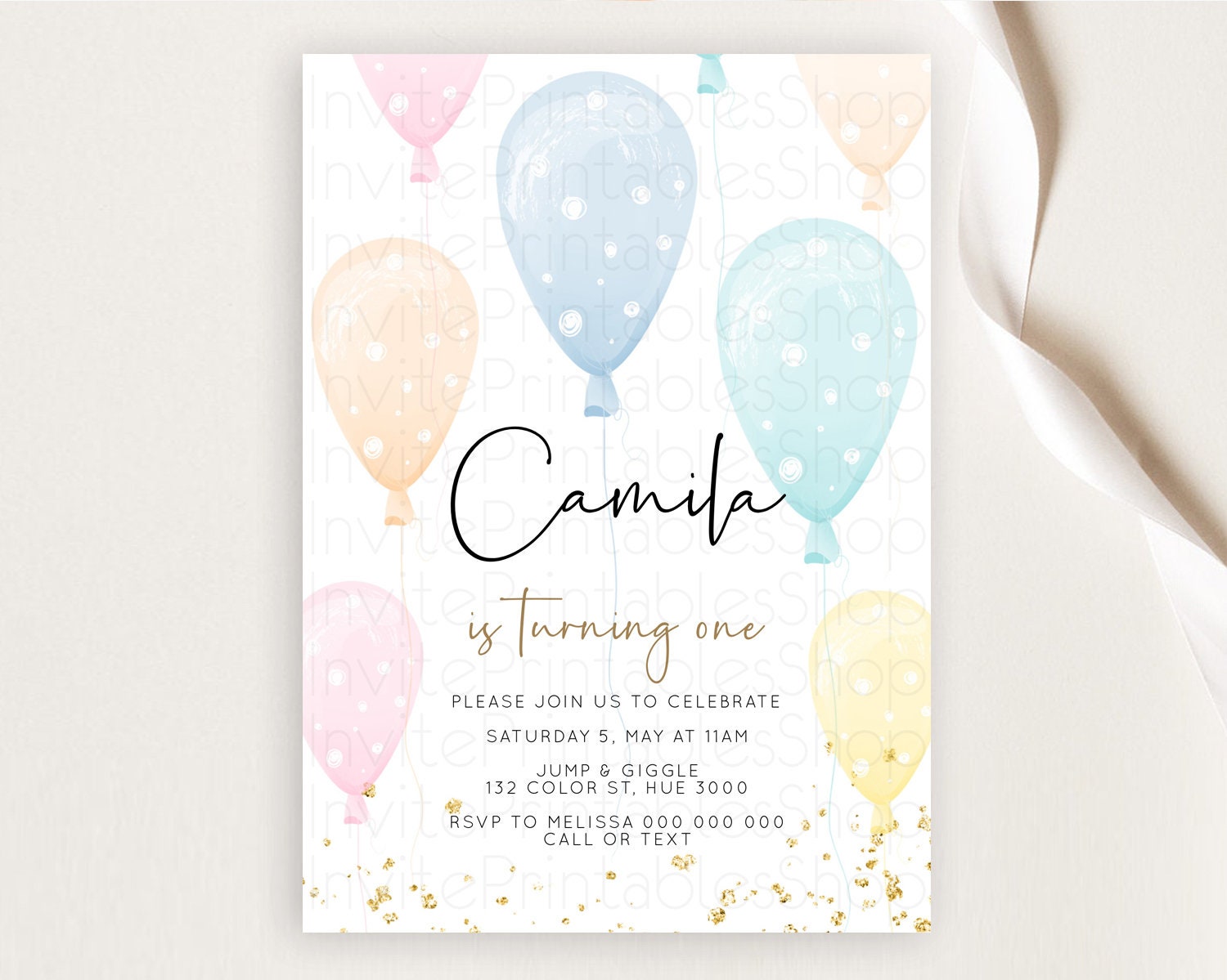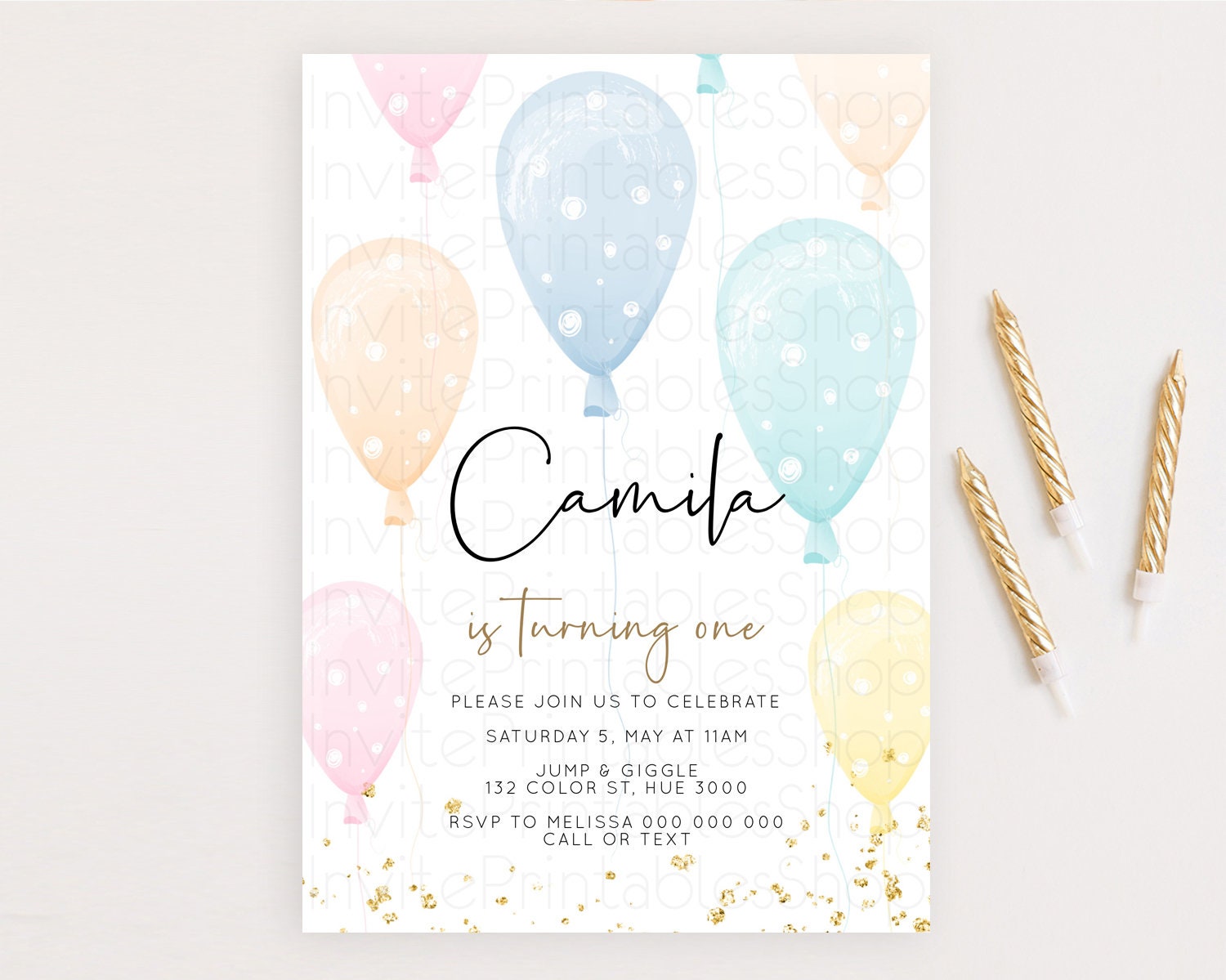 Balloon Birthday Invitation Pastel Birthday Invitation Pastel Balloon Invites Colorful Pastel Rainbow Balloon 3rd 2nd First Birthday D10776