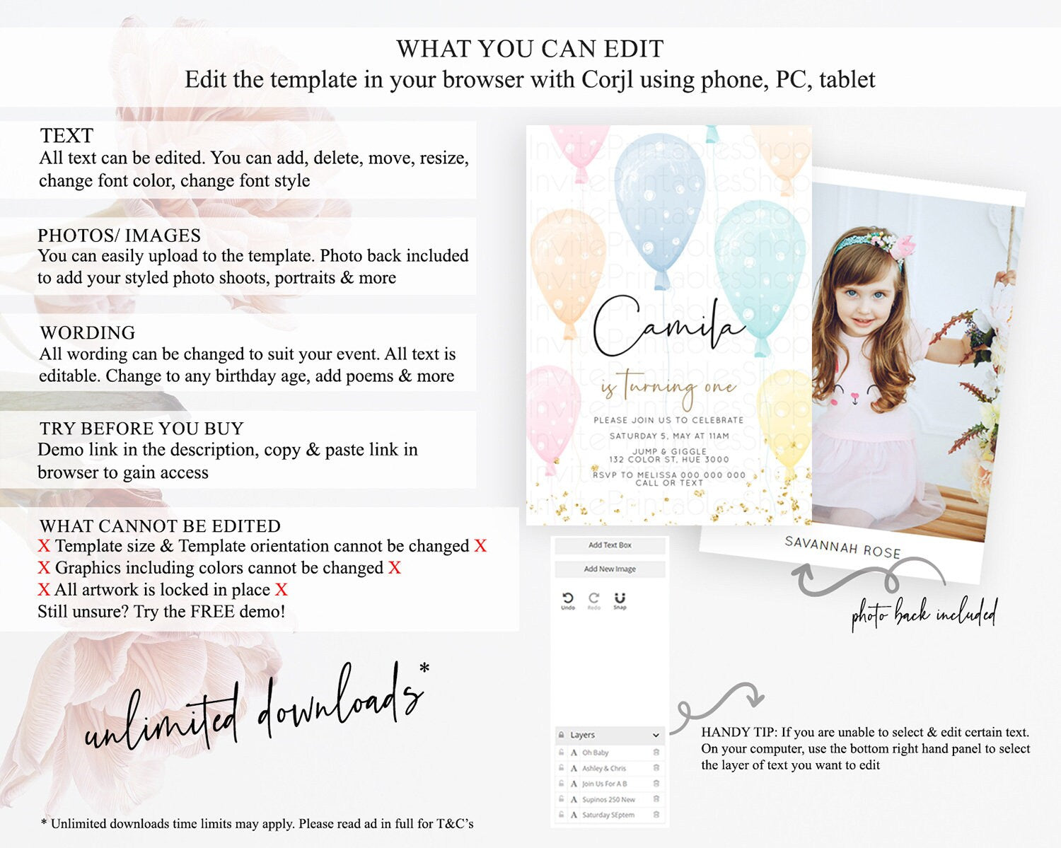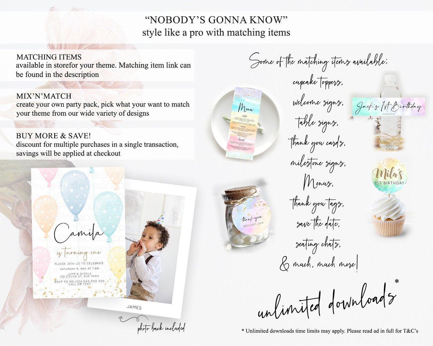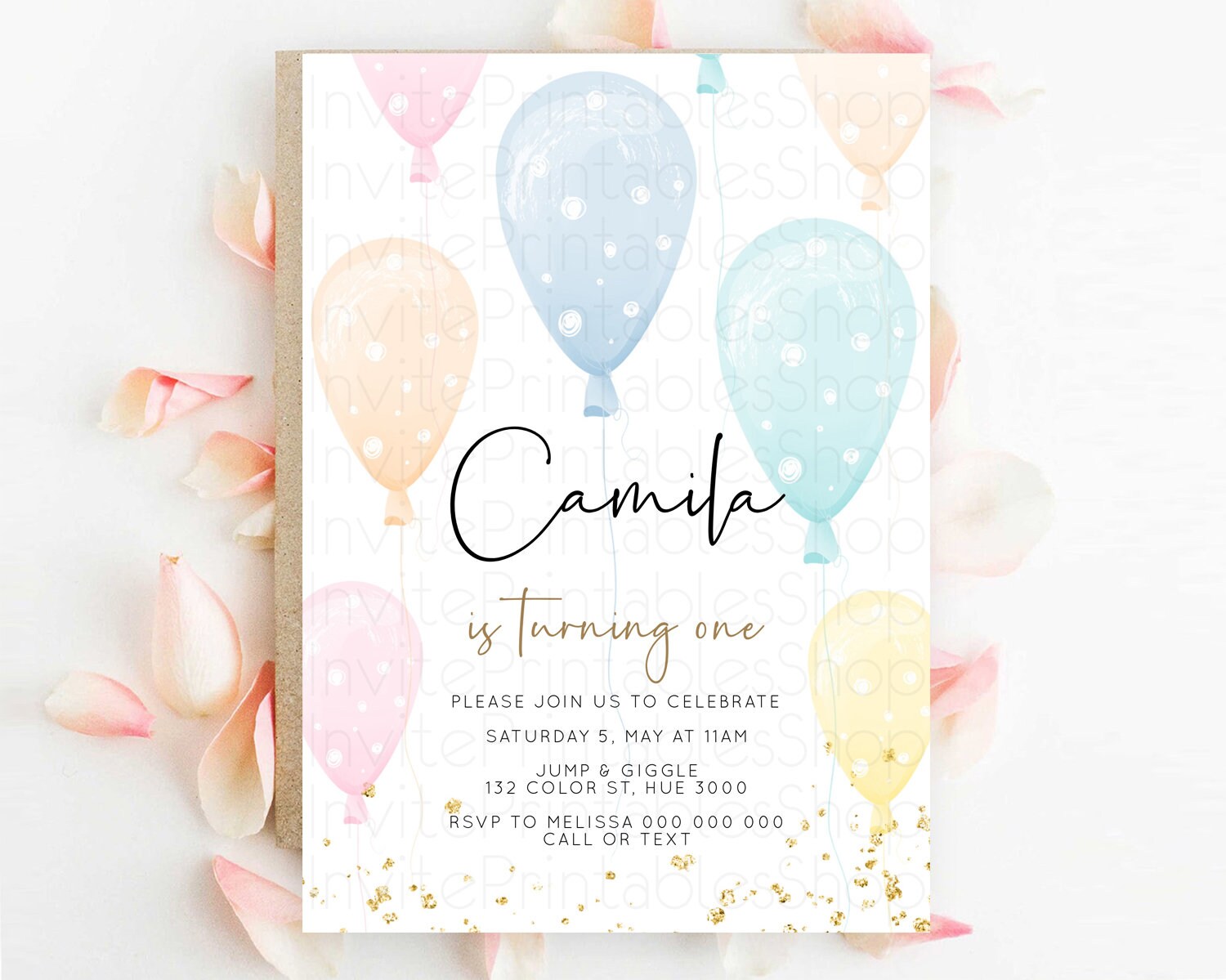 Balloon Birthday Invitation Pastel Birthday Invitation Pastel Balloon Invites Colorful Pastel Rainbow Balloon 3rd 2nd First Birthday D10776
