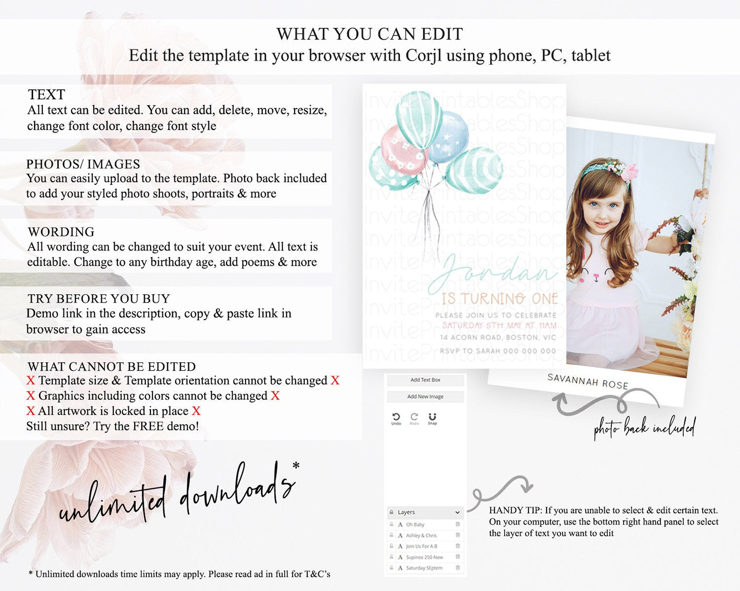 • After purchase, Corjl emails your editing link. Allow up to 15 minutes for delivery.