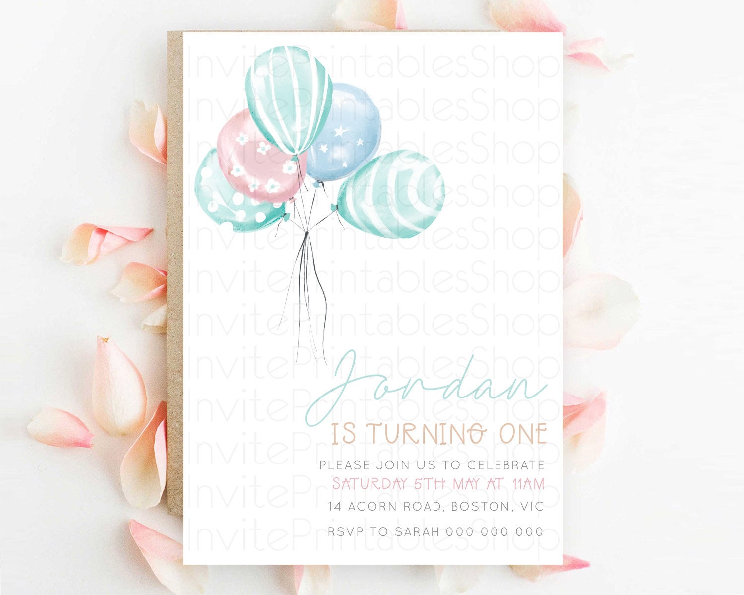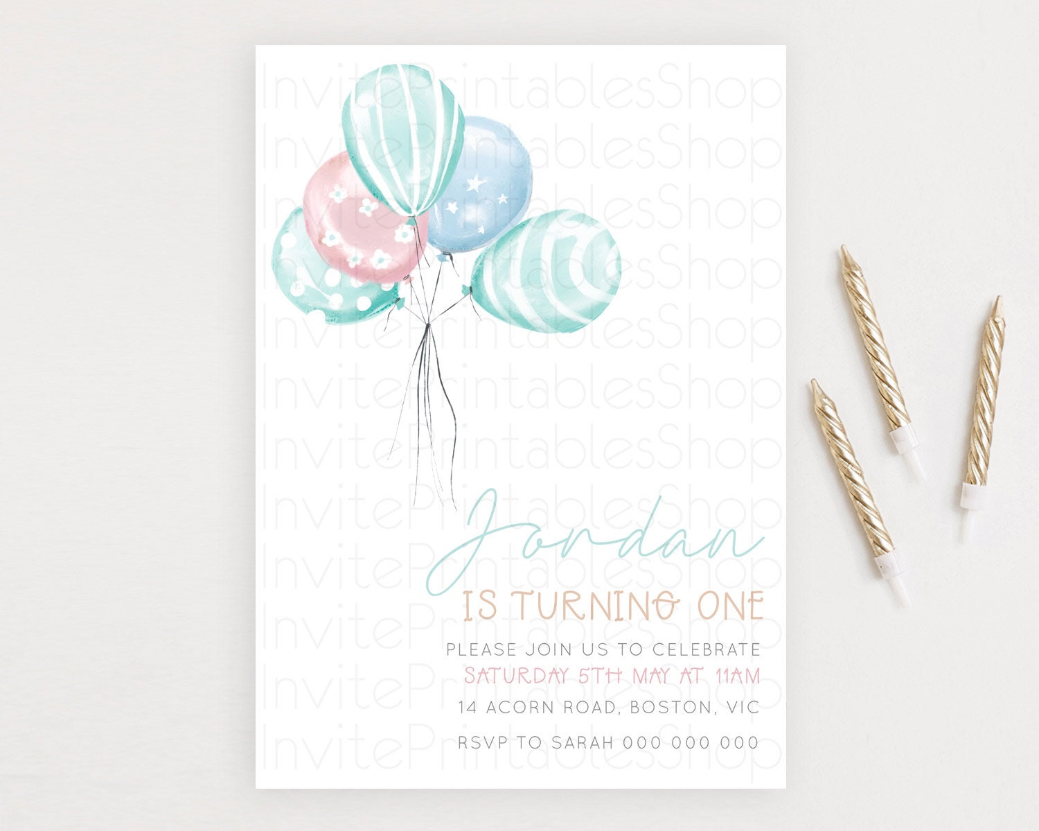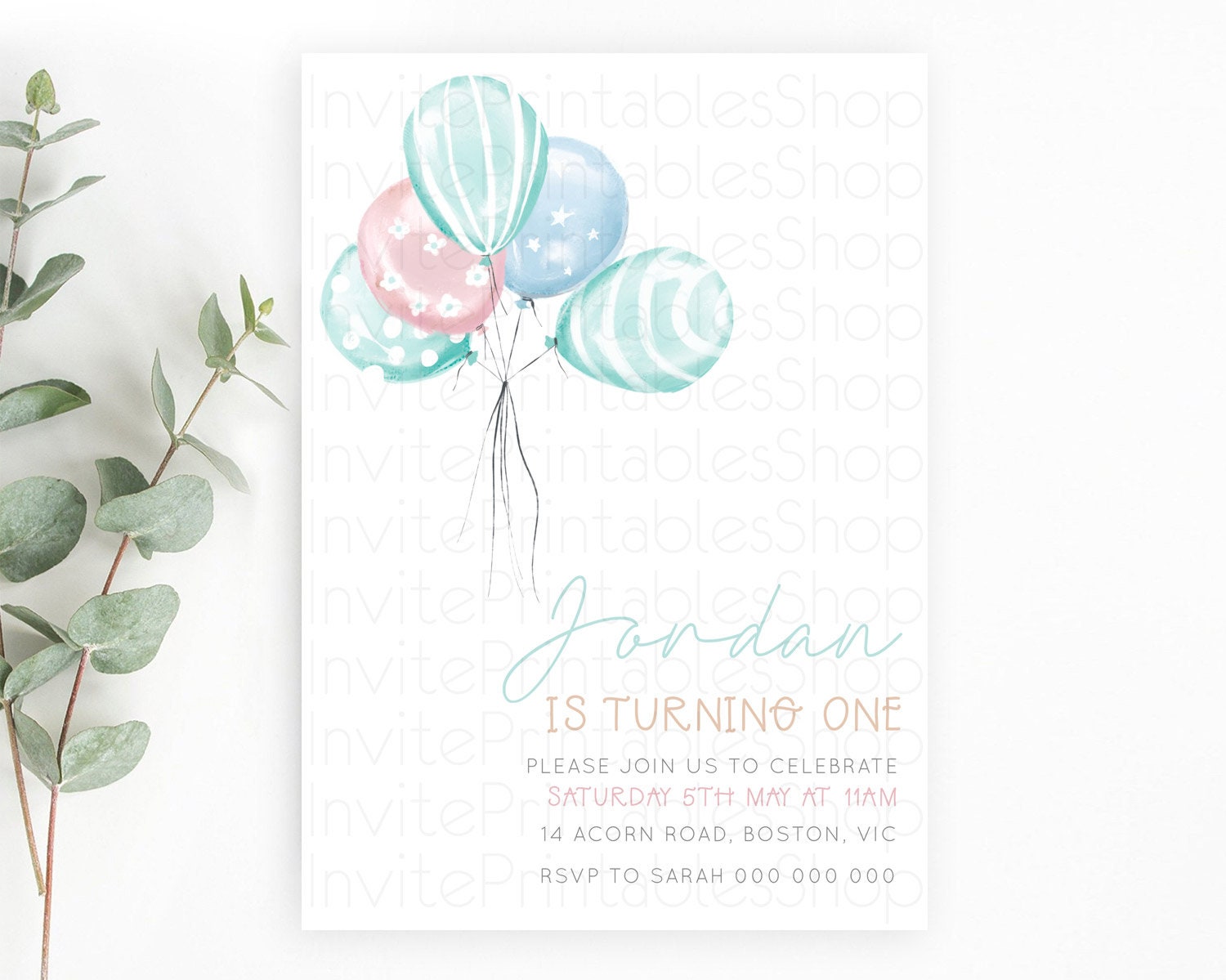 Balloon Birthday Invitation Pastel Birthday Invitation Pastel Balloon Invites Colorful Pastel Rainbow Balloon 3rd 2nd First Birthday D22997