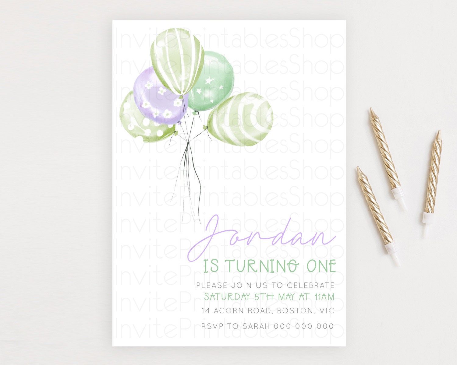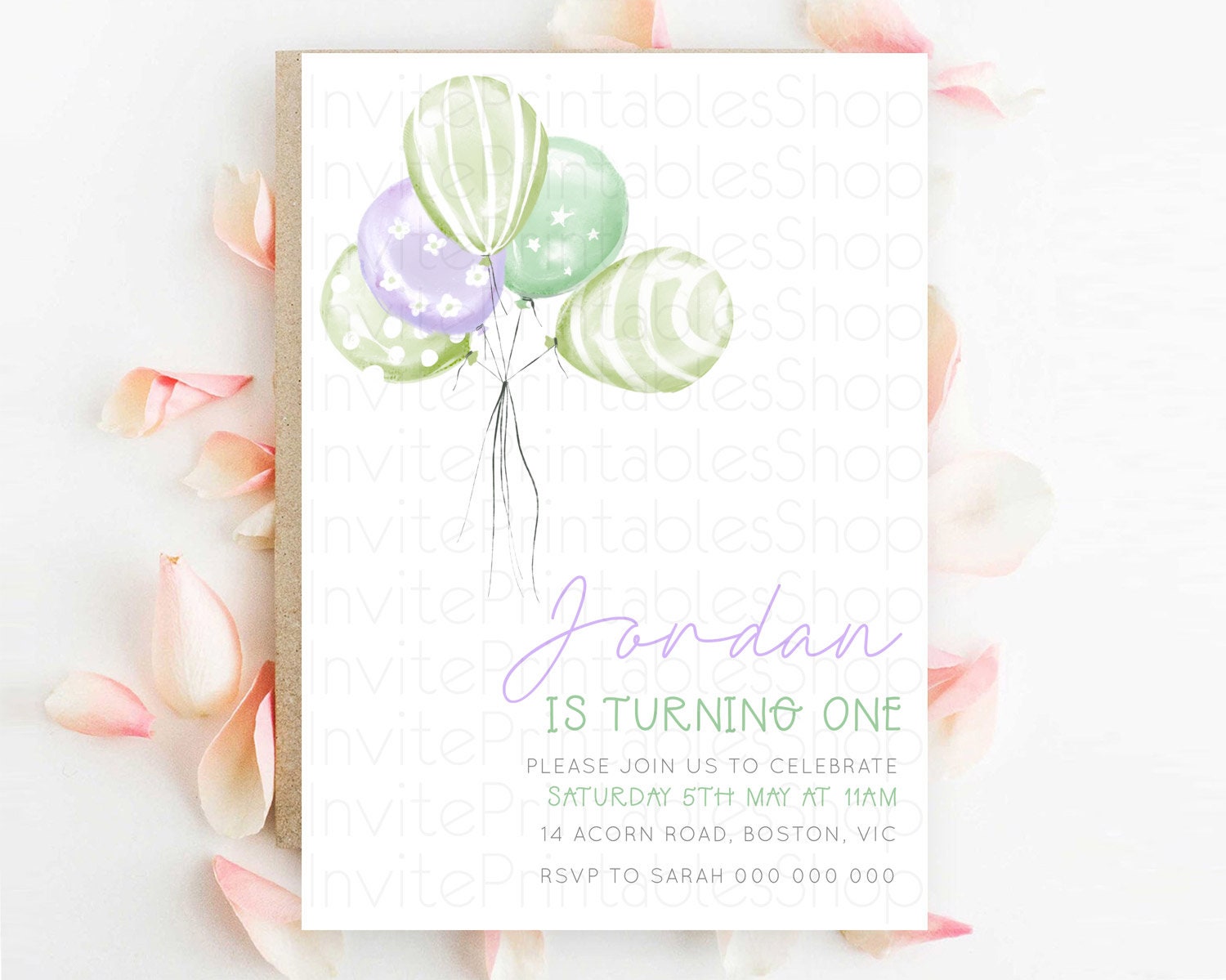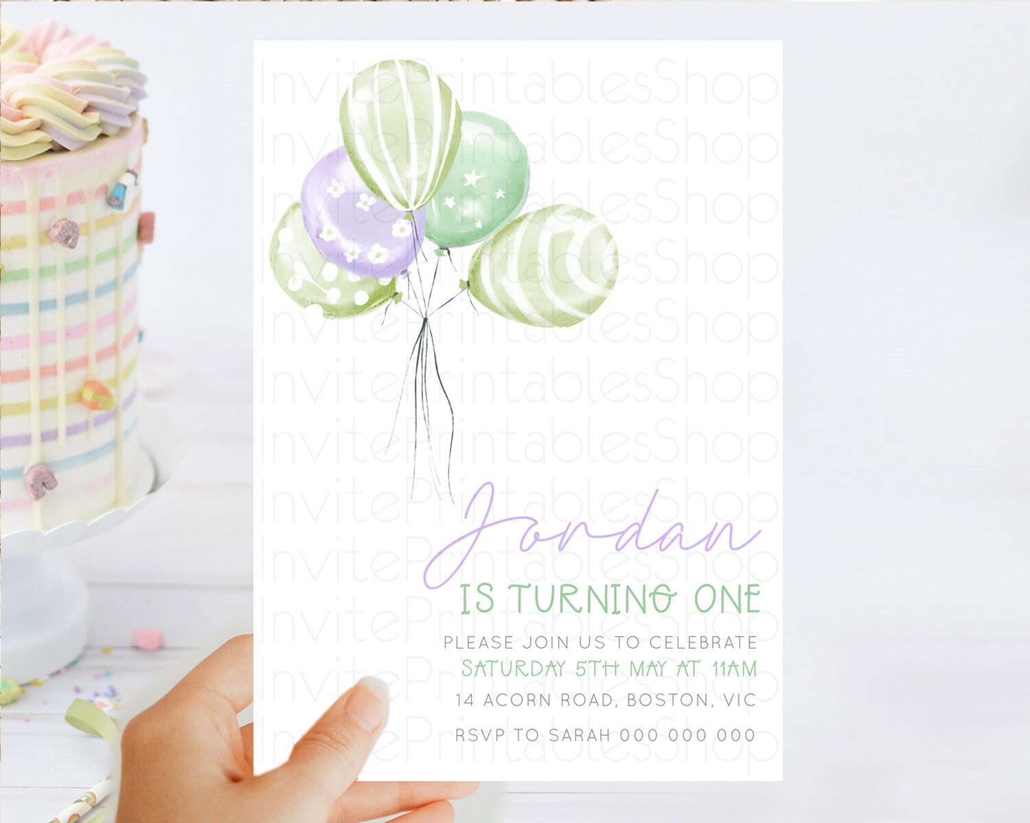 Balloon Birthday Invitation Pastel Birthday Invitation Pastel Balloon Invites Colorful Pastel Rainbow Balloon 3rd 2nd First Birthday D22998