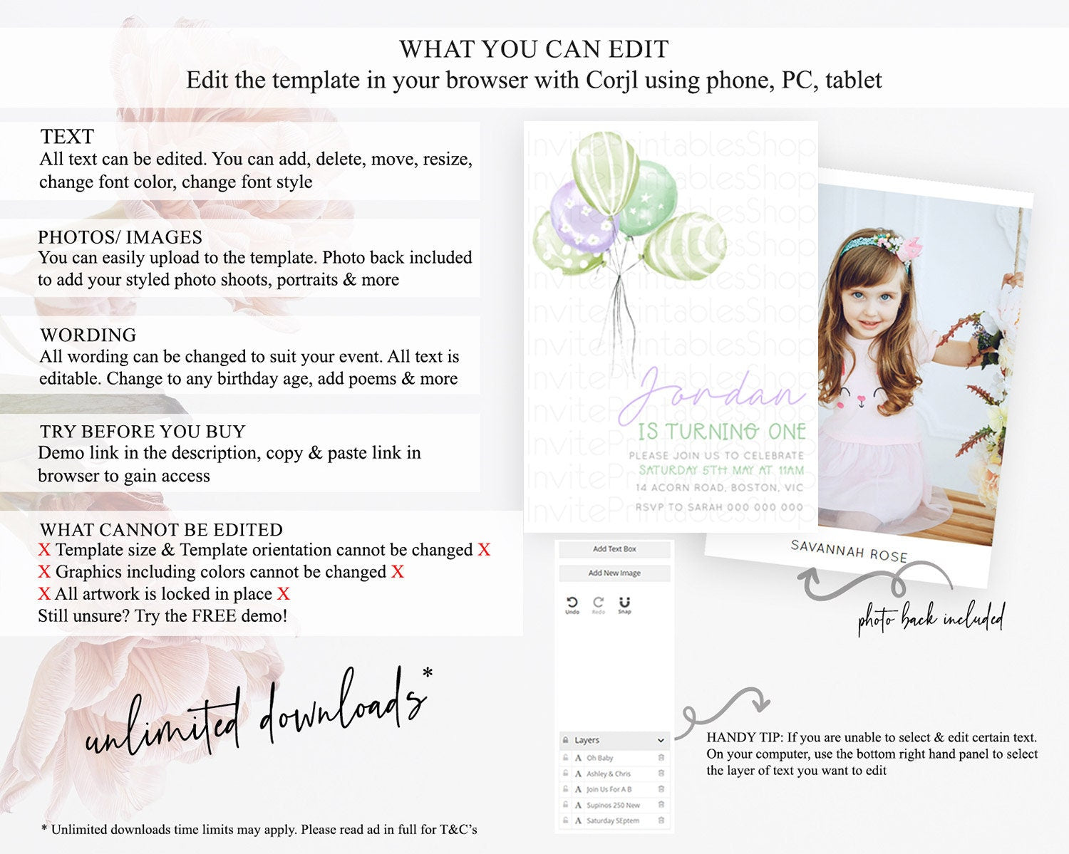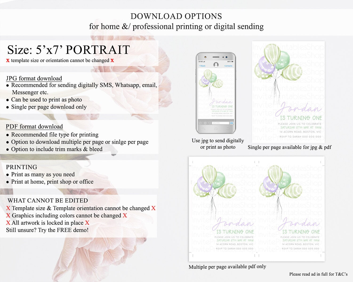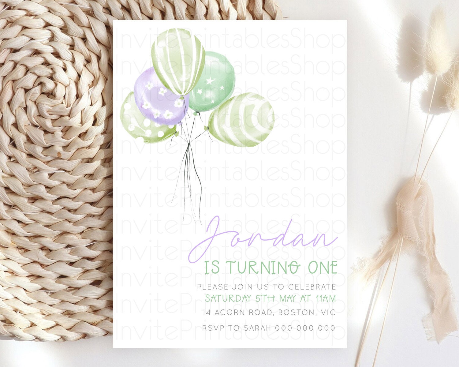 Balloon Birthday Invitation Pastel Birthday Invitation Pastel Balloon Invites Colorful Pastel Rainbow Balloon 3rd 2nd First Birthday D22998