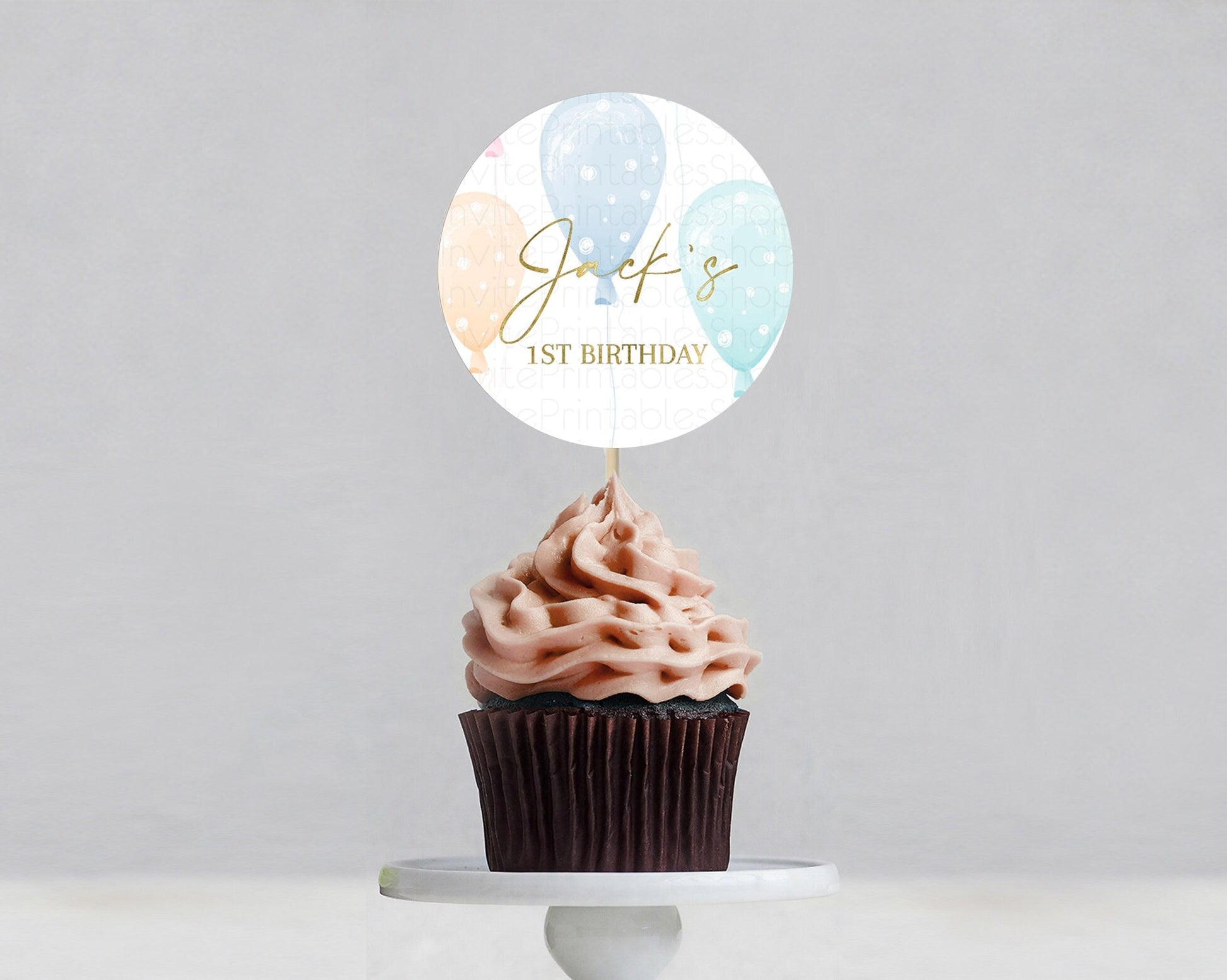 Balloon Cupcake Toppers Pastel Cupcake Toppers Pastel Balloon Cupcake Colorful Pastel Rainbow Balloon First Birthday Balloon Decor D10182