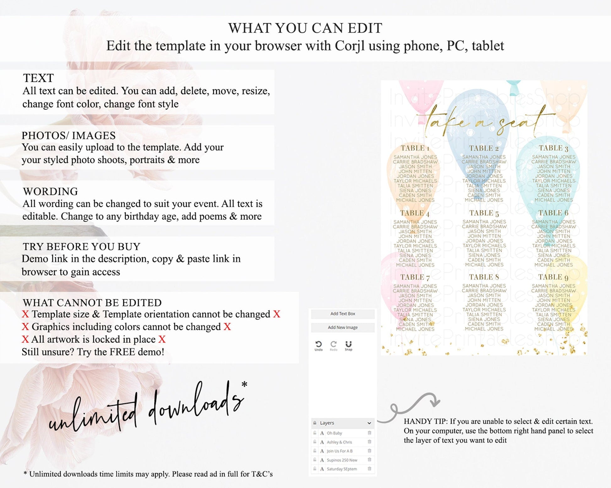 • After purchase, Corjl emails your editing link. Allow up to 15 minutes for delivery.