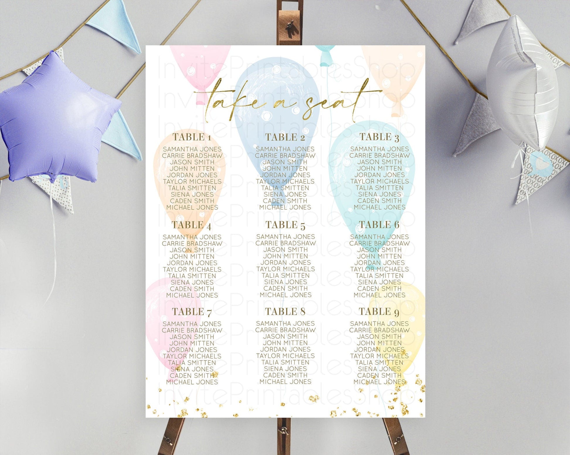 Colorful Balloons Seating Chart