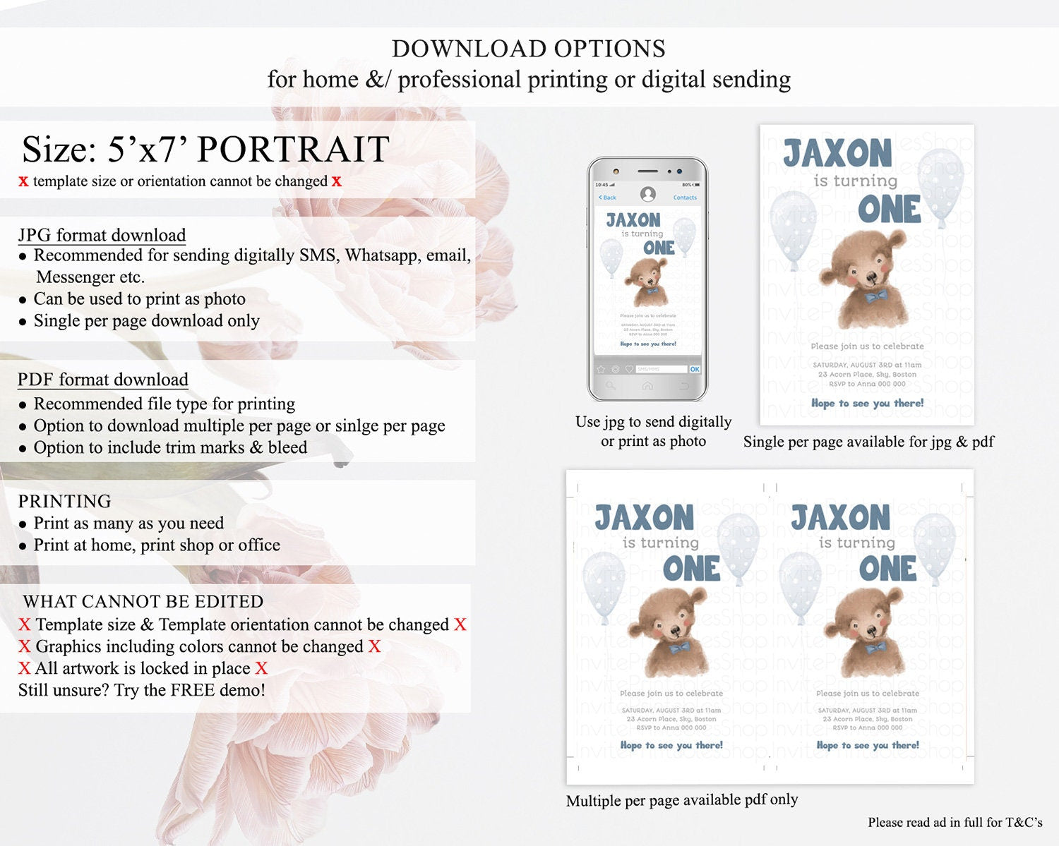 • Template size & orientation cannot be changed. Please use the demo link to confirm this product suits your needs.