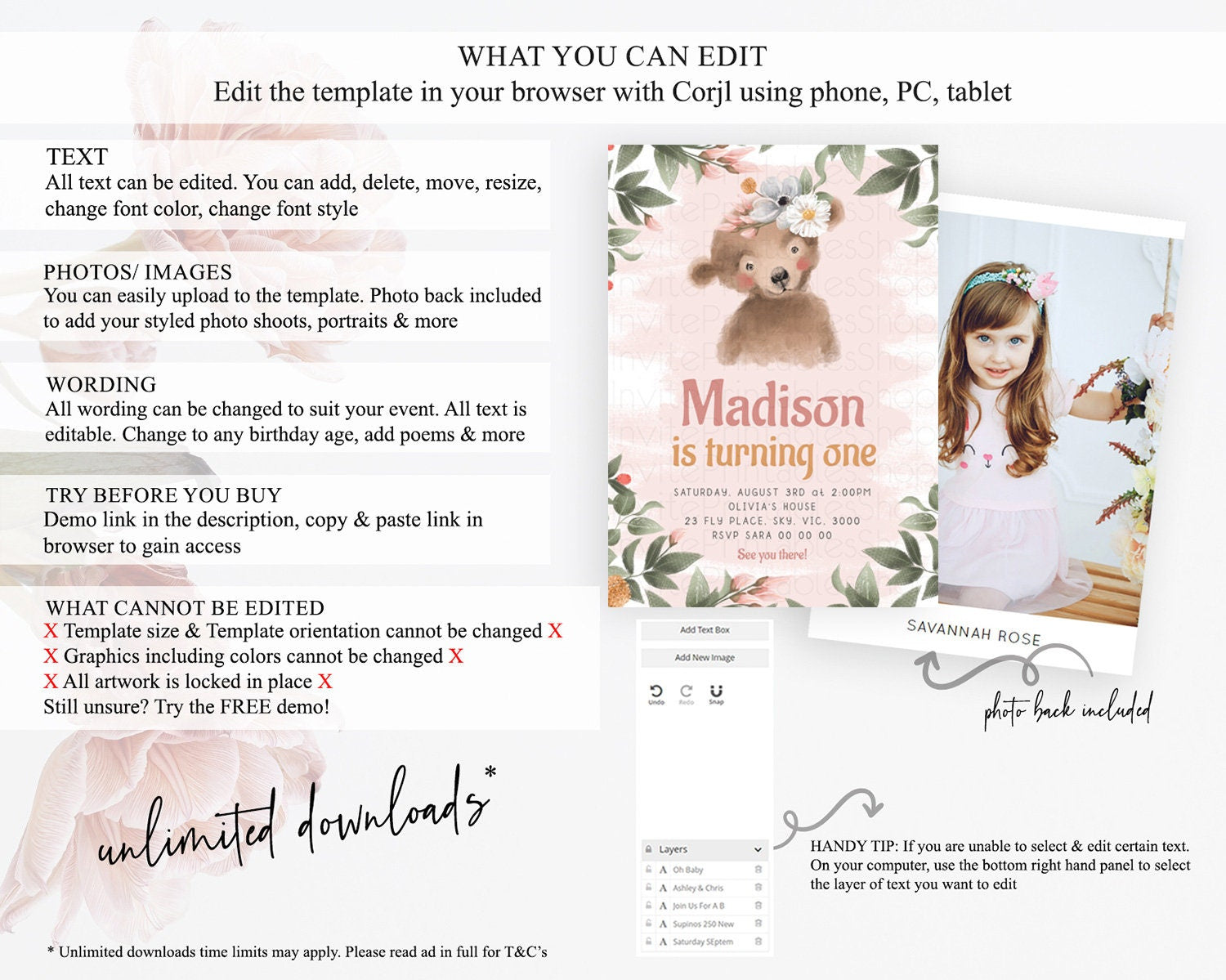 Bear Birthday Invitation Bear Invitation Forest Baby Invites Bear Woods Party Forest Adventure Bear Hunt Party 2nd First Birthday D10590
