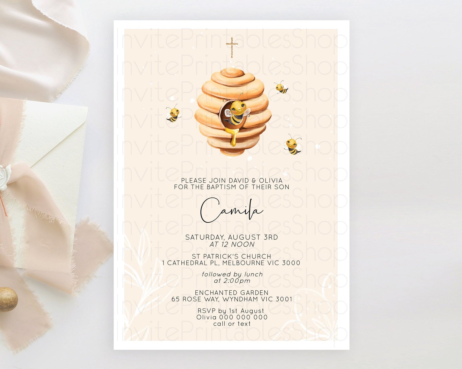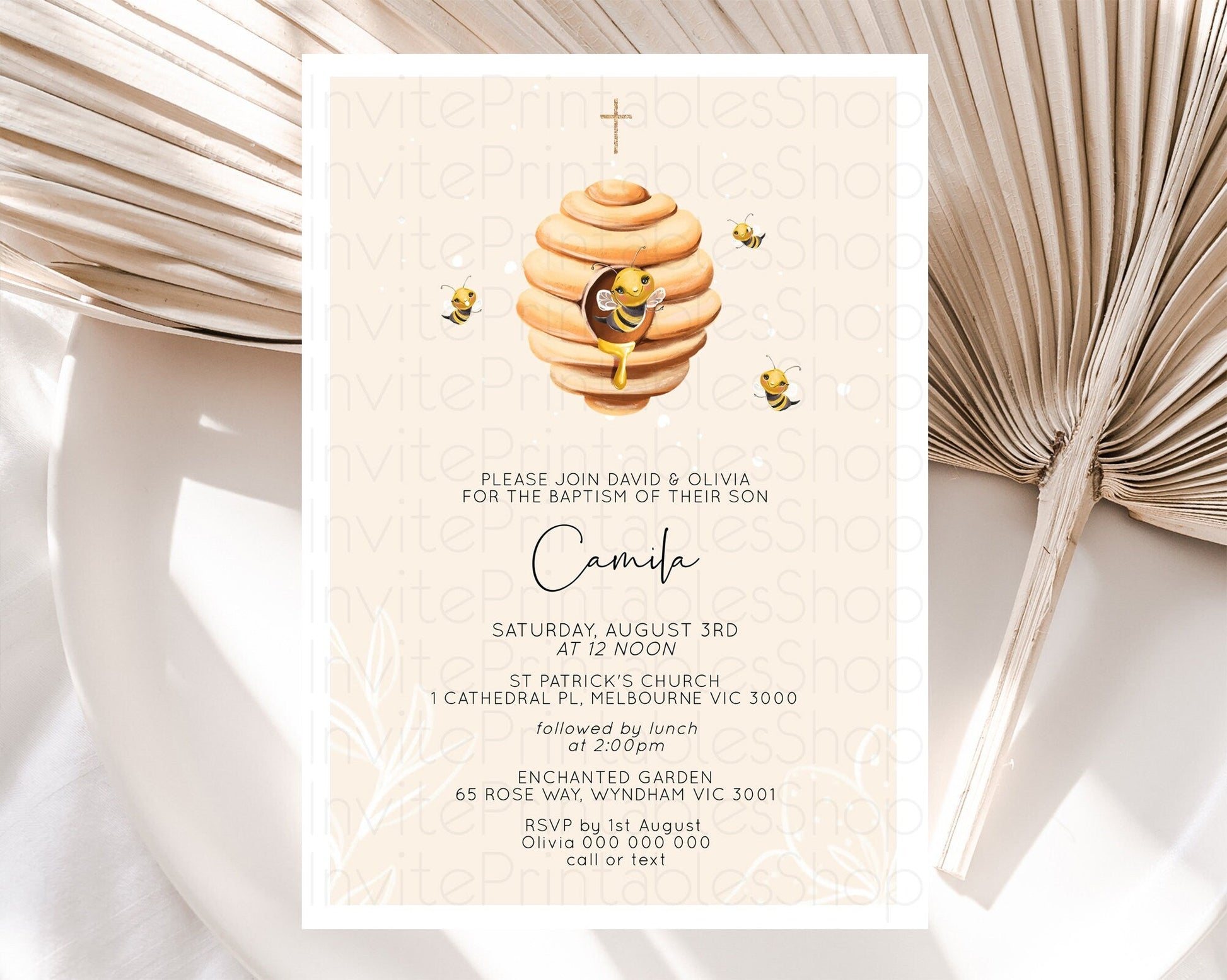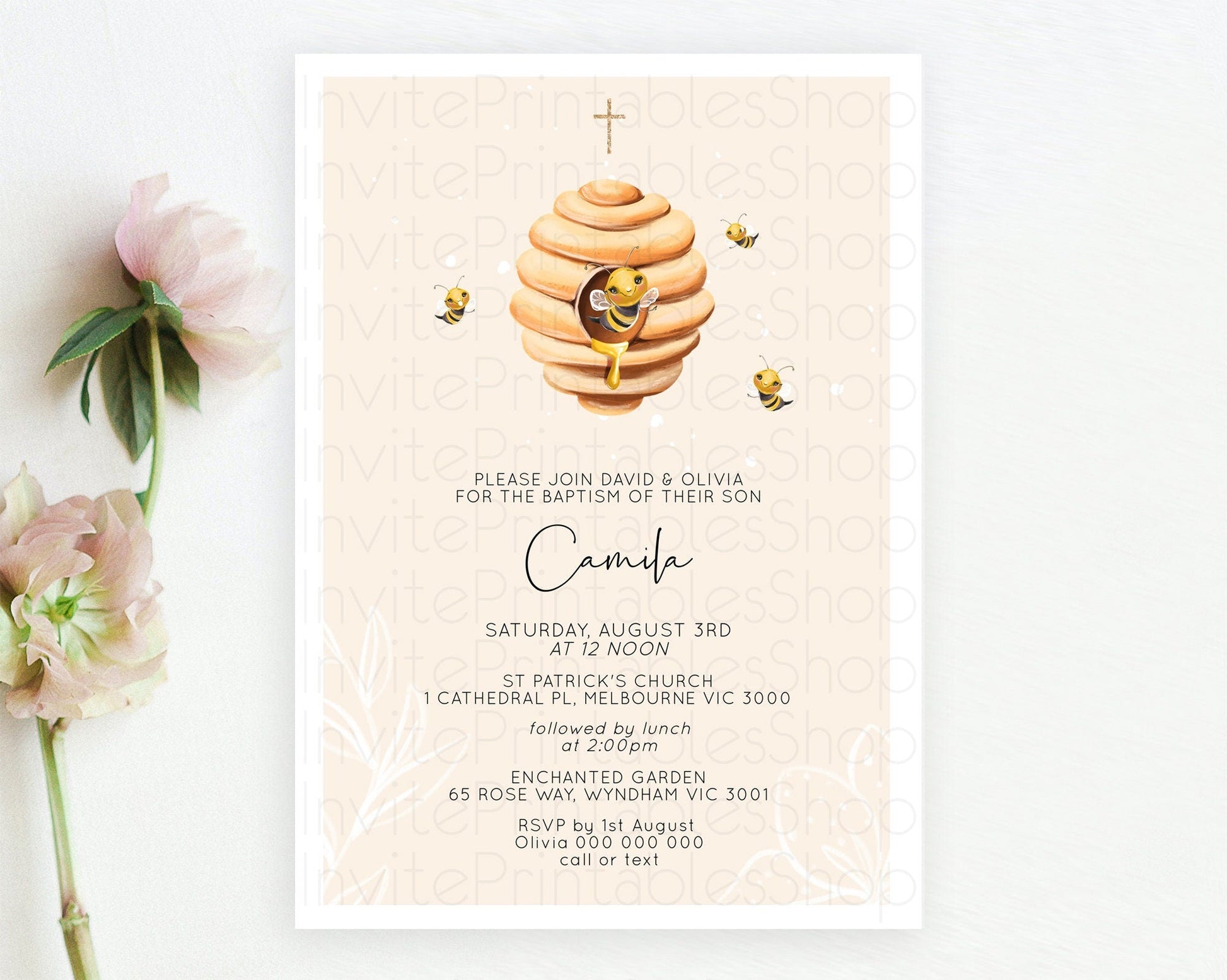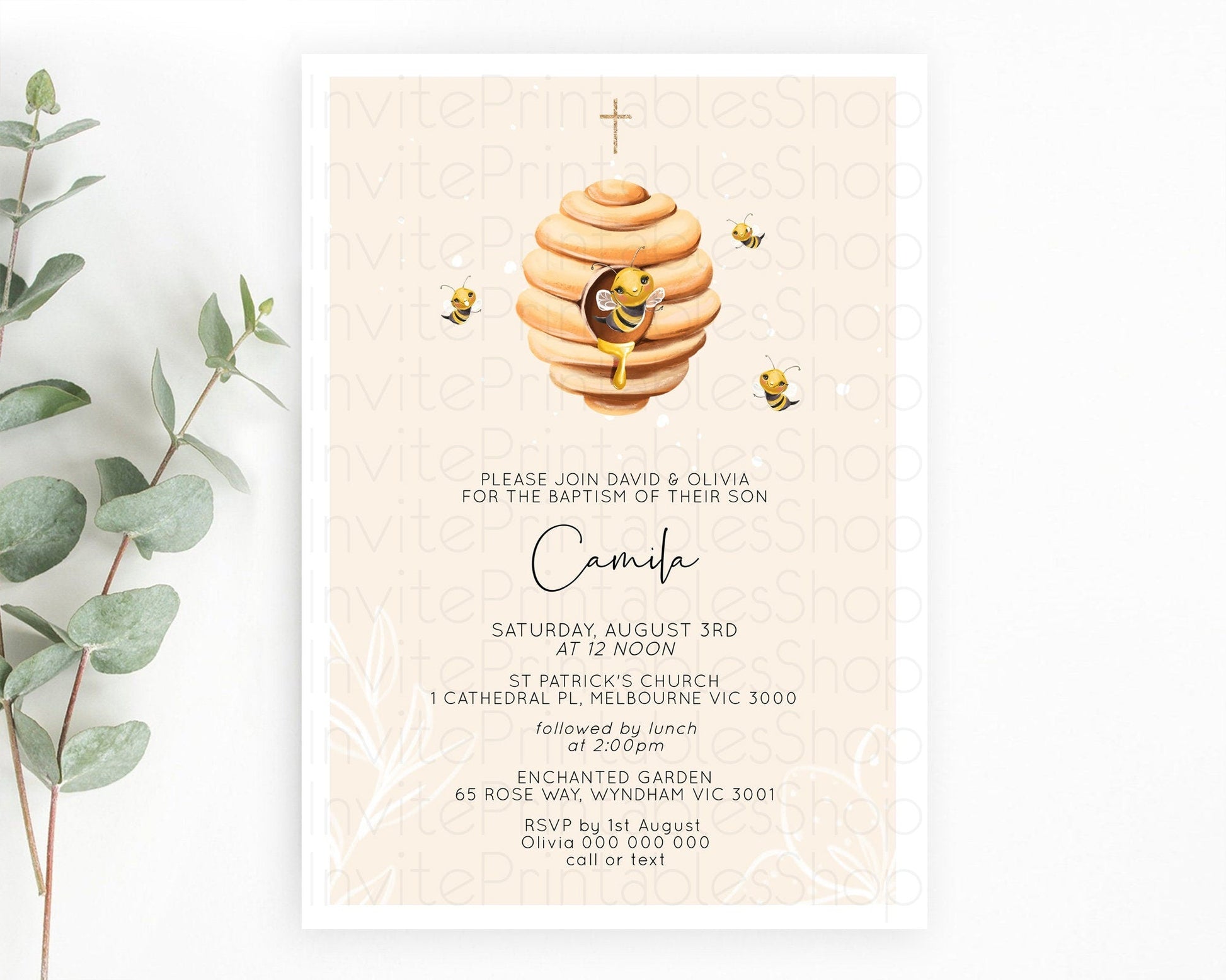 Bee Baptism Invitation Bee Baptism 1st Birthday Invitation Bee Day Beehive Christening Invitation Sweet Honey Bee Party Yellow D10754