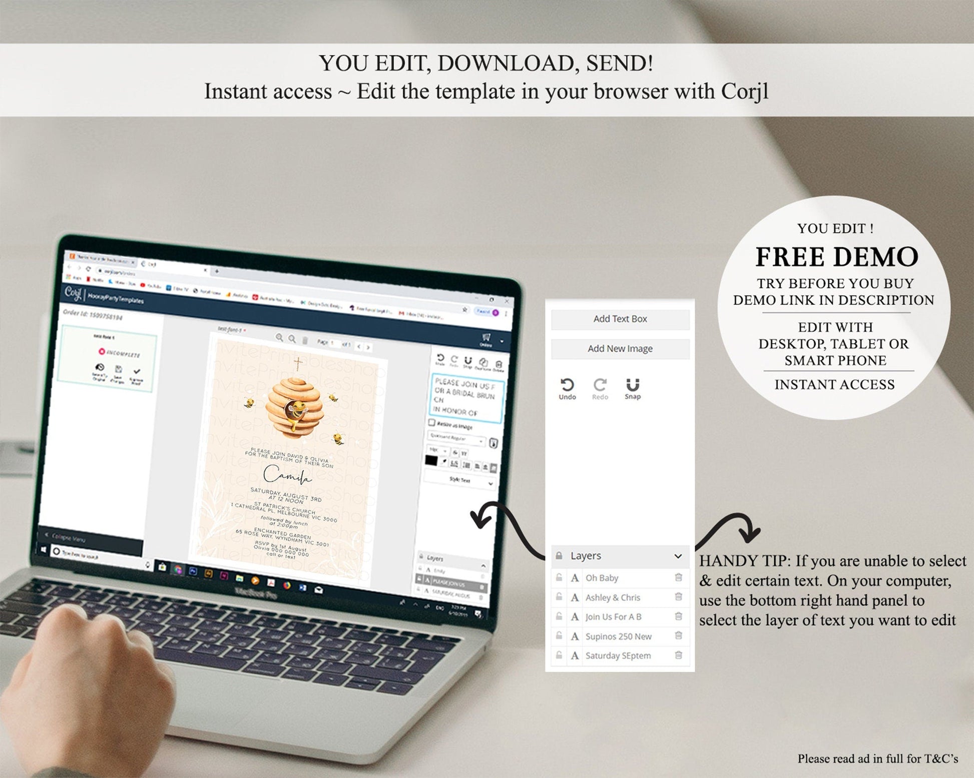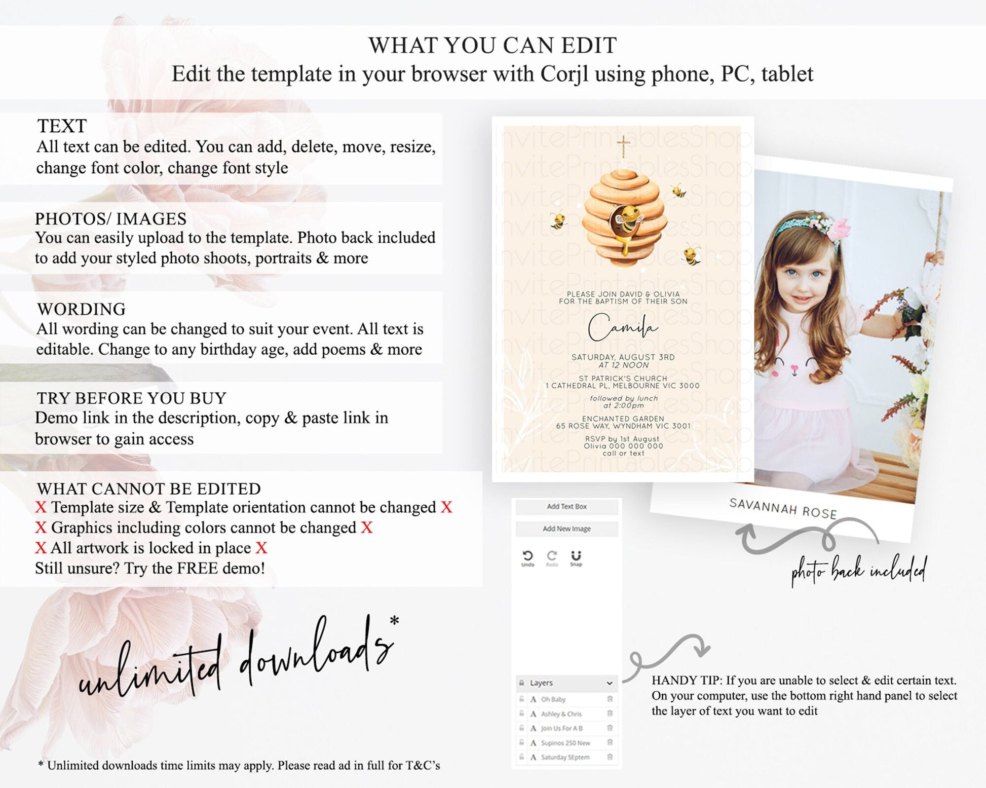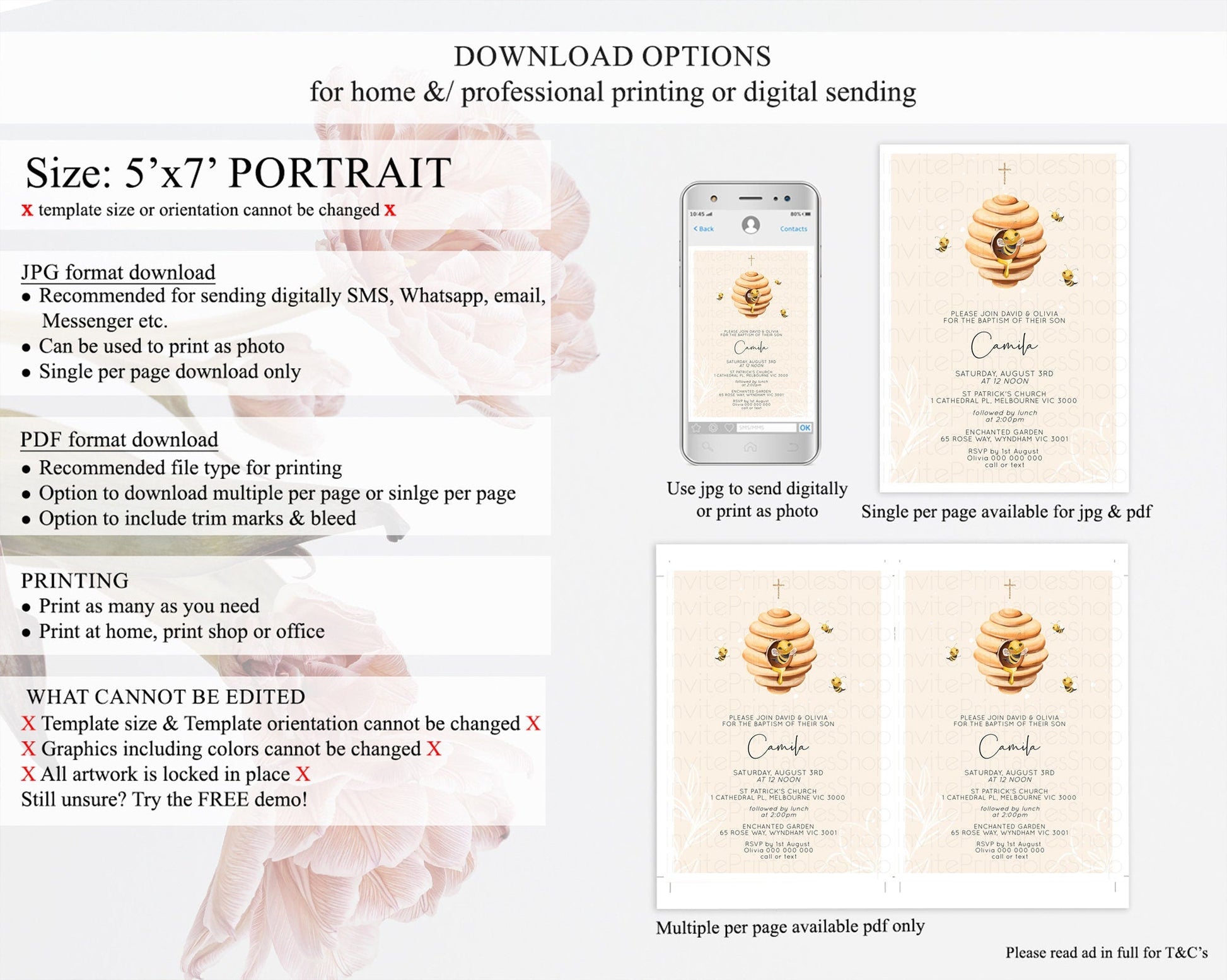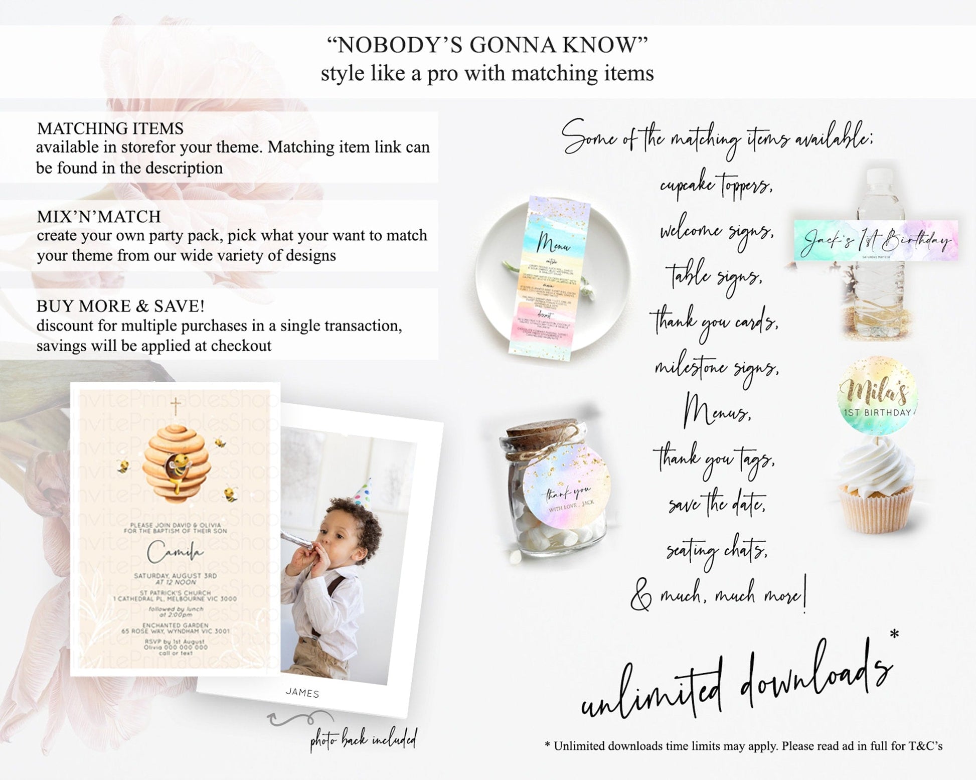Bee Baptism Invitation Bee Baptism 1st Birthday Invitation Bee Day Beehive Christening Invitation Sweet Honey Bee Party Yellow D10754