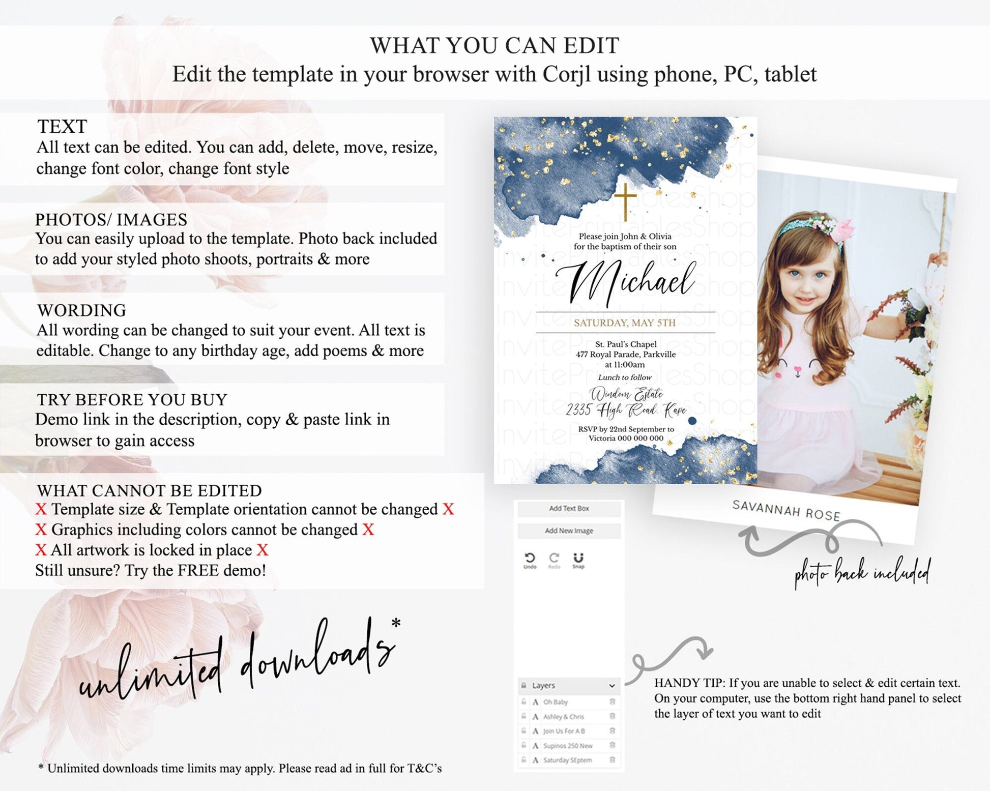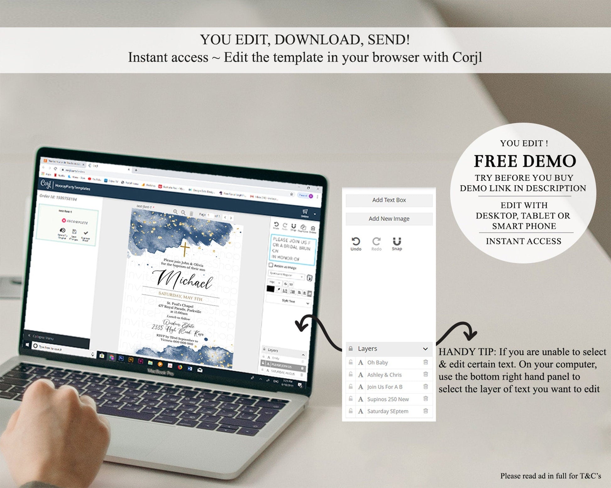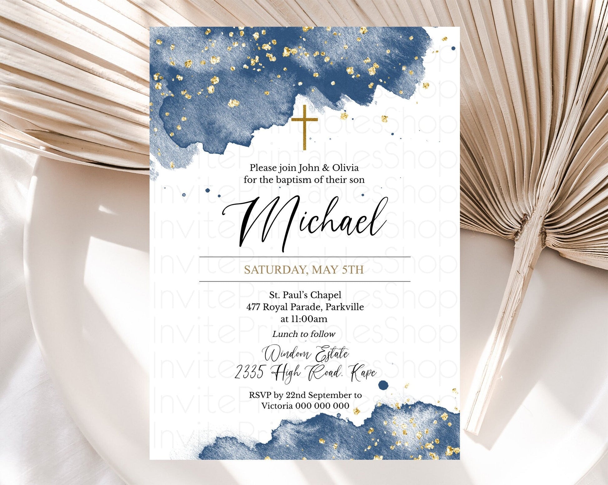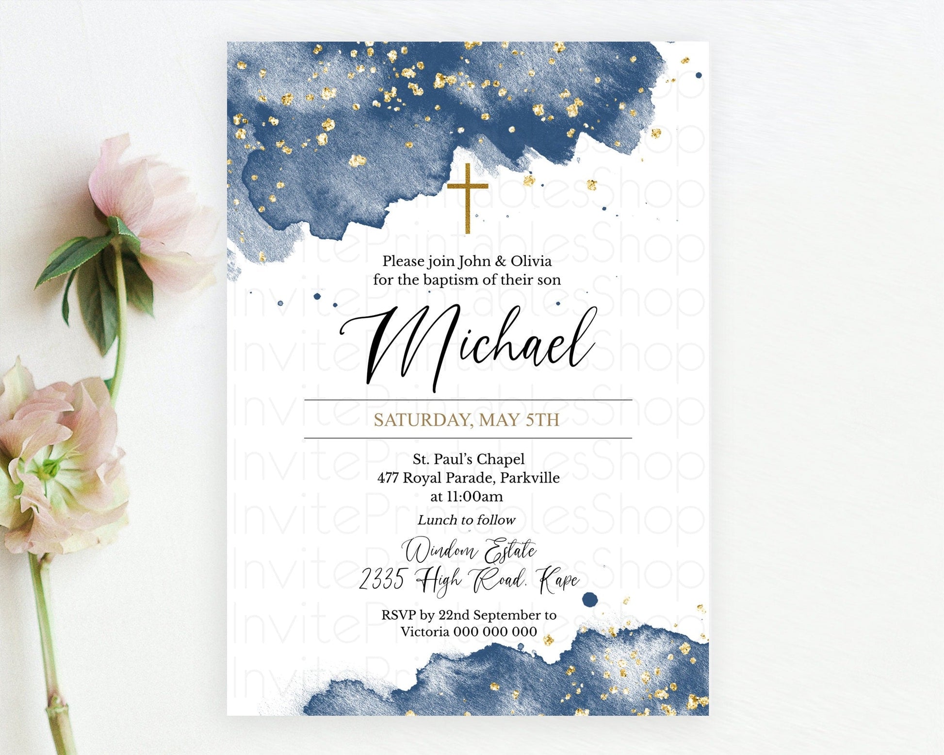 Blue Baptism Invitation Blue Watercolor Baptism 1st Birthday Invitation Pastel Blue Watercolor Christening Invite Blue Splash D10312