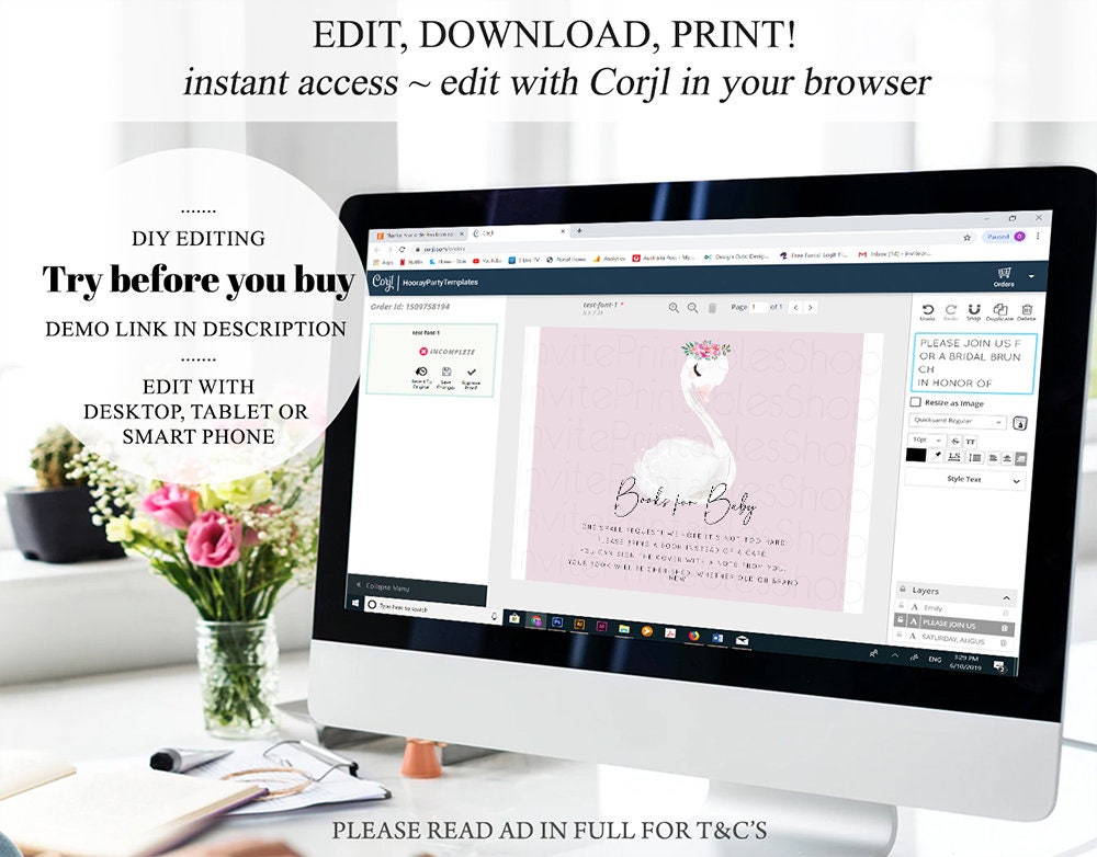 • After purchase, Corjl emails your editing link. Allow up to 15 minutes for delivery.