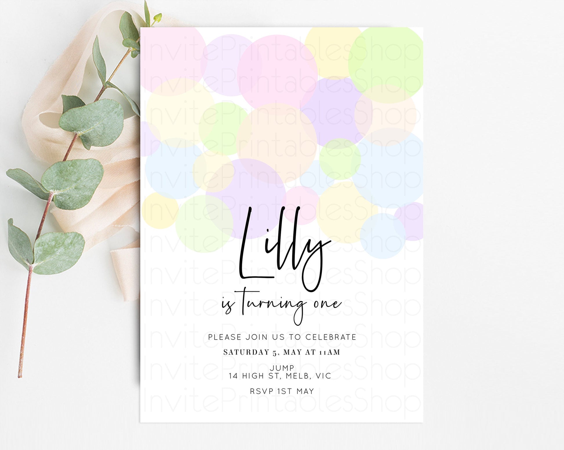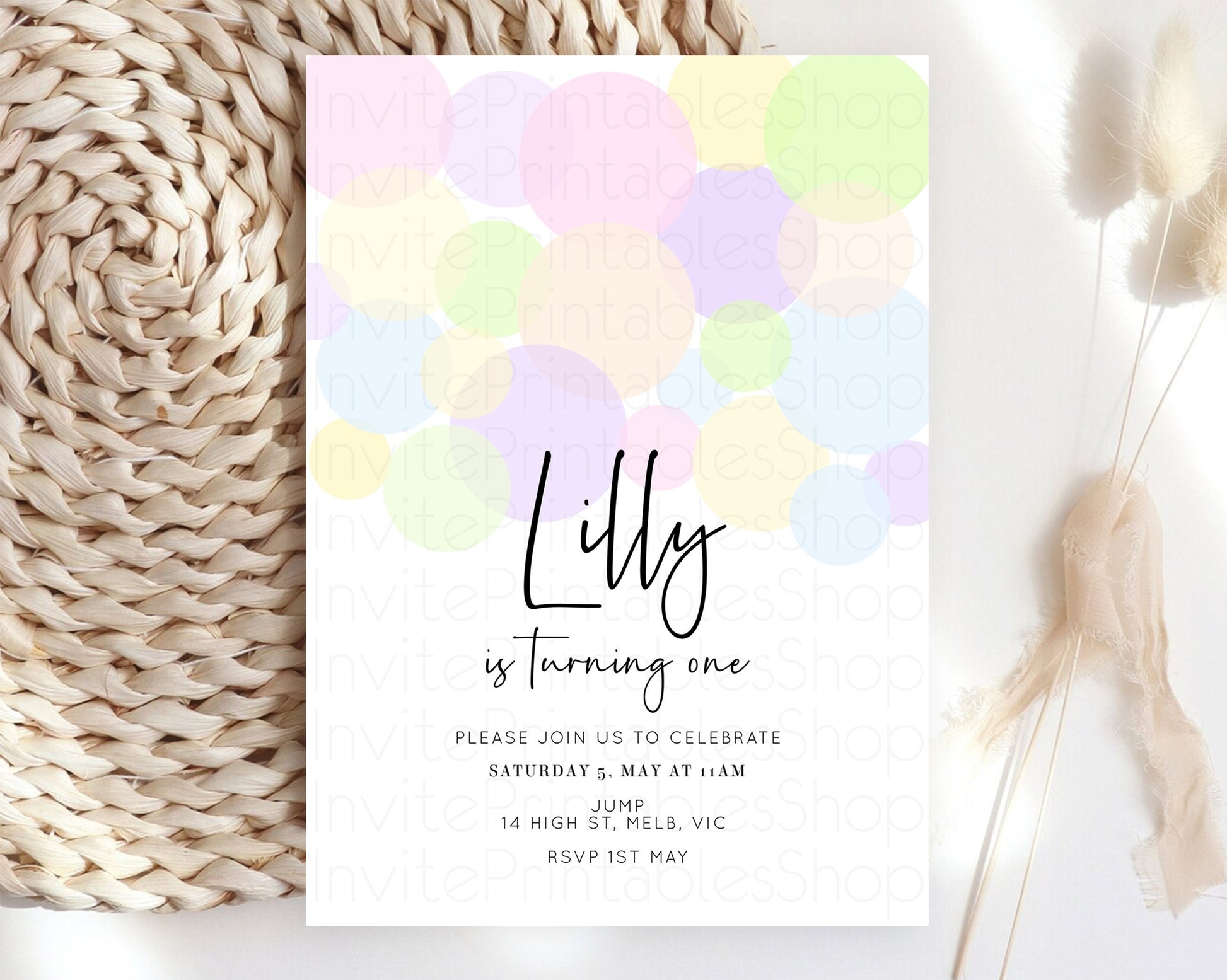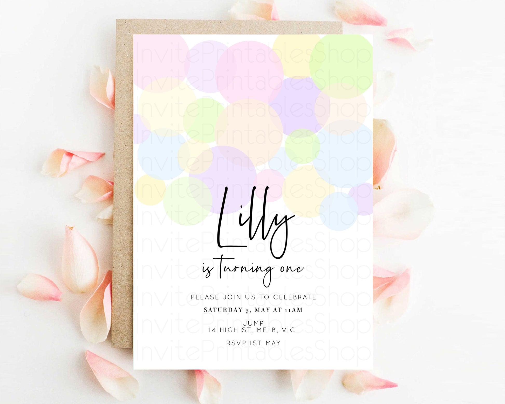 Bubbles Birthday Invitation Rainbow Confetti Invite Pastel Sprinkles Invite Pastel Colorful Art Fun Simple Birthday Invite 1st 2nd 3rd 208