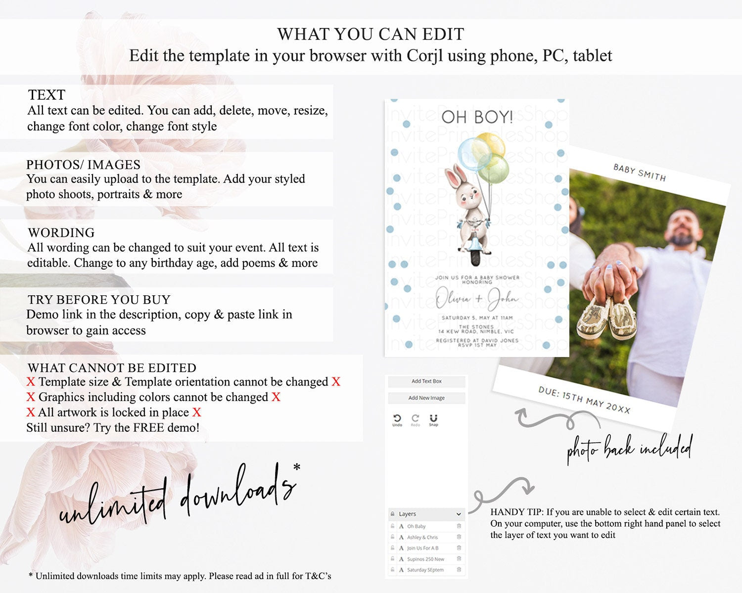 • After purchase, Corjl emails your editing link. Allow up to 15 minutes for delivery.