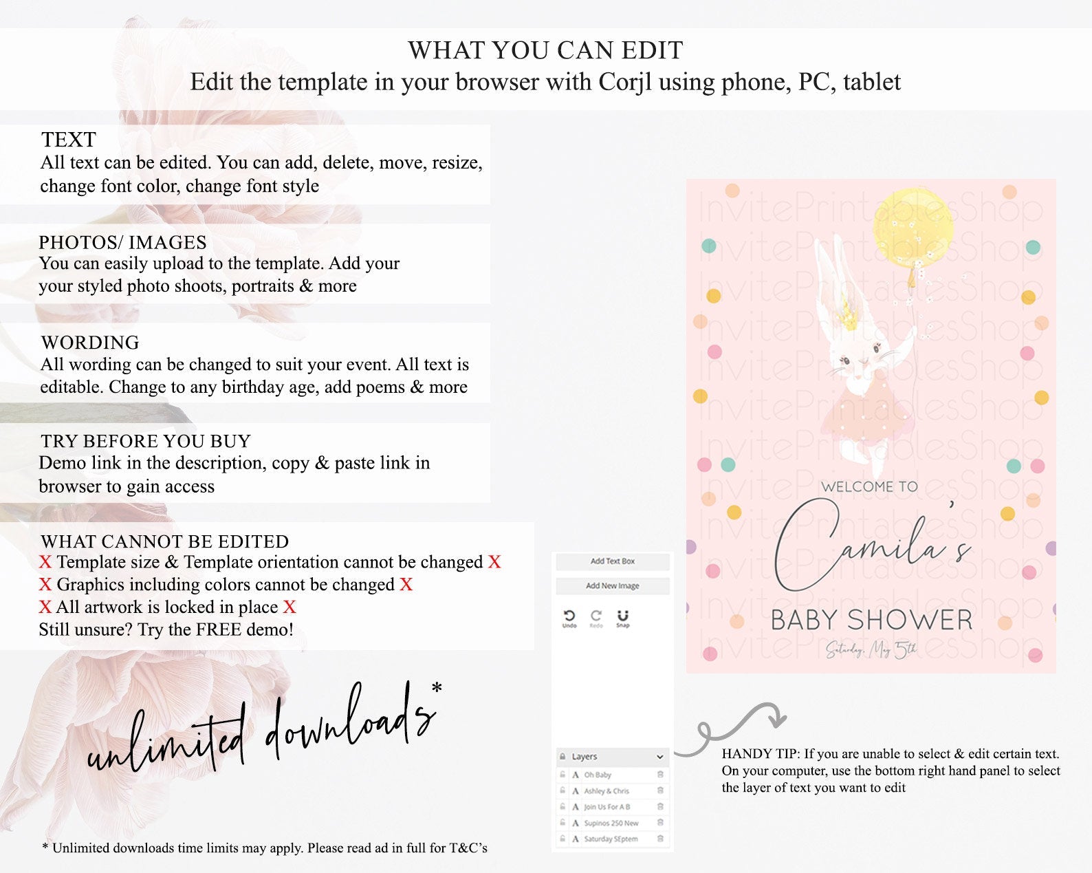 • After purchase, Corjl emails your editing link. Allow up to 15 minutes for delivery.
