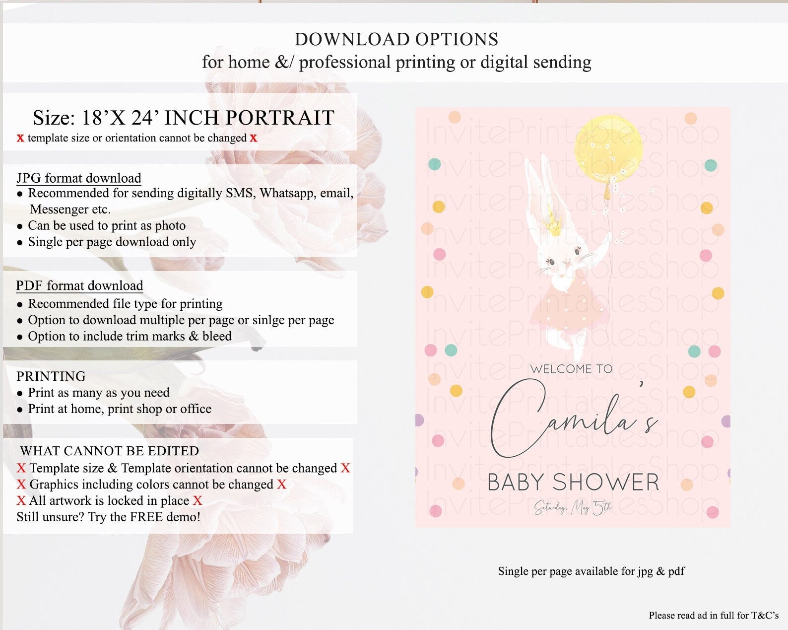 • Template size & orientation cannot be changed. Please use the demo link to confirm this product suits your needs.
