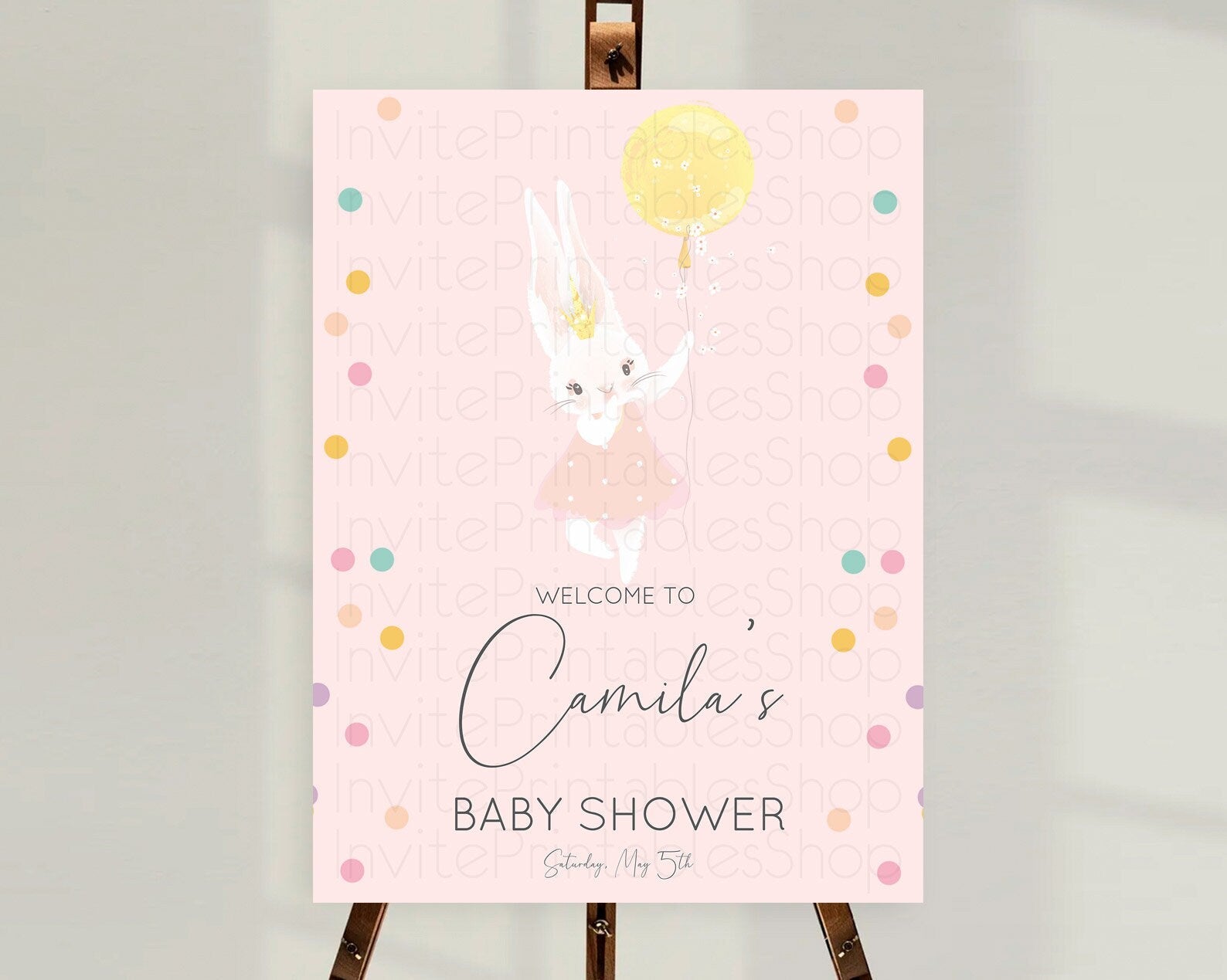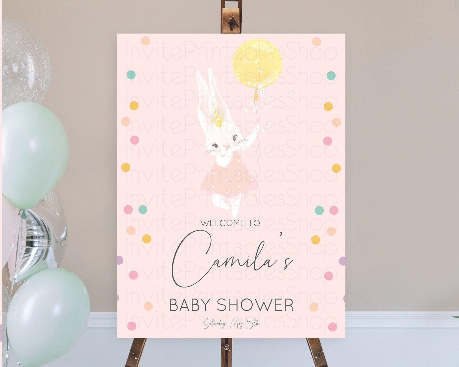 Bunny Baby Shower Welcome Sign Bunny Balloon Welcome Board Colorful Pastel Confetti Bunny Welcome Poster Sprinkles Baby Welcome Sign D10219