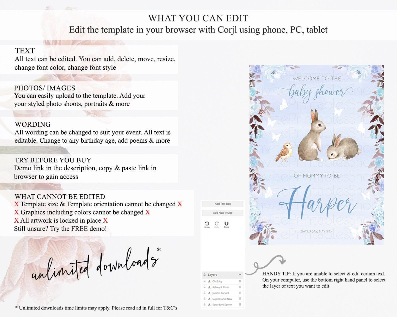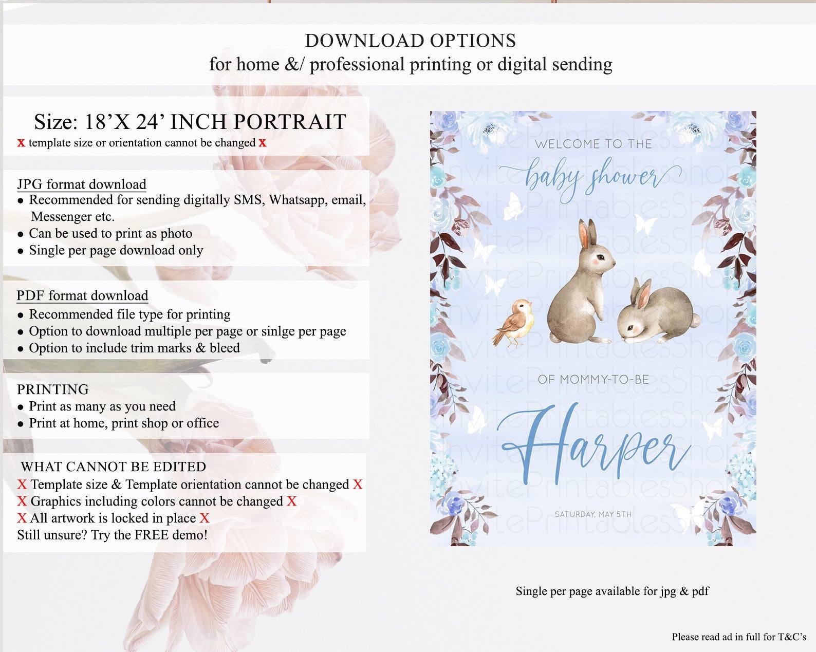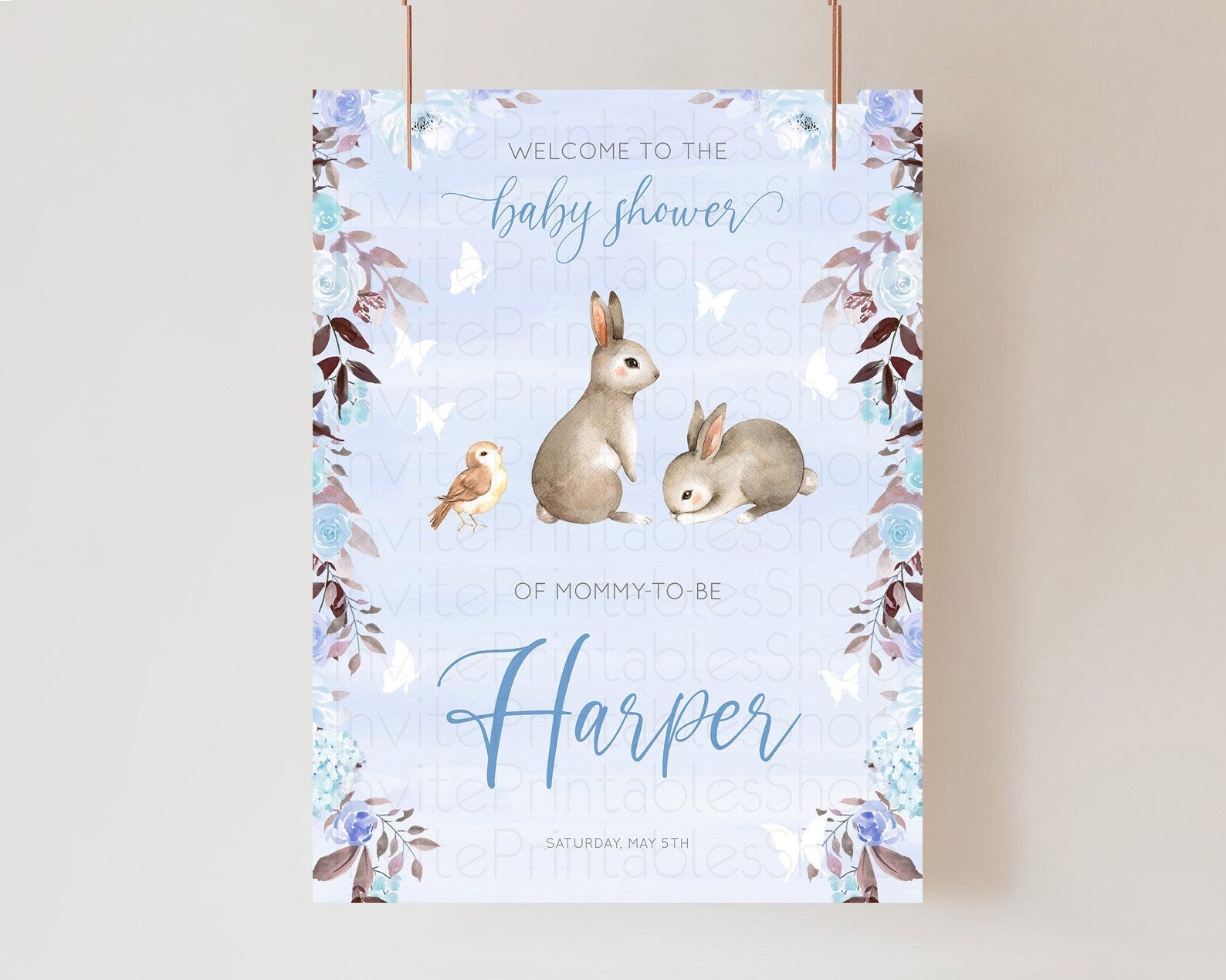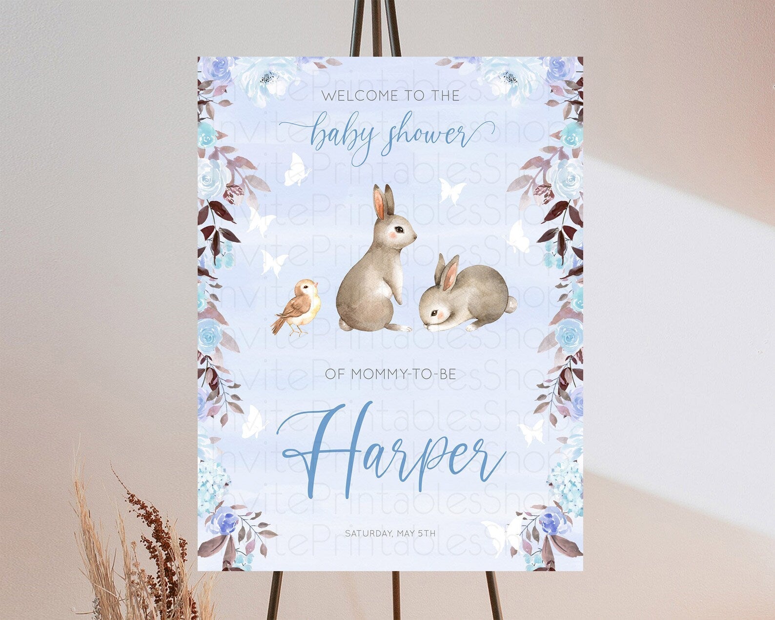 Bunny Baby Shower Welcome Sign Floral Bunny Welcome Board Pastel Flowers Woodland Bunny Welcome Poster Forest Bunny Welcome Sign D10923