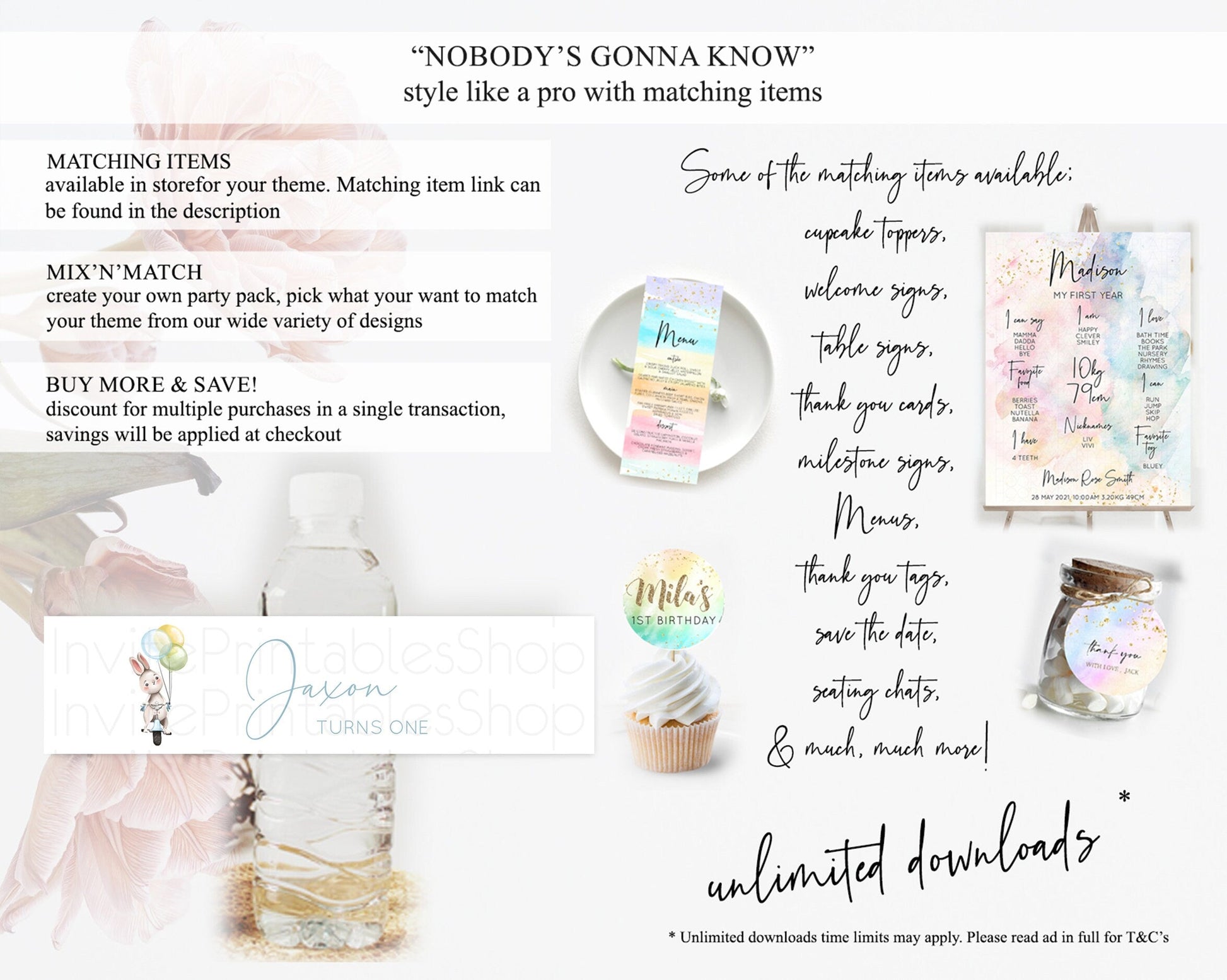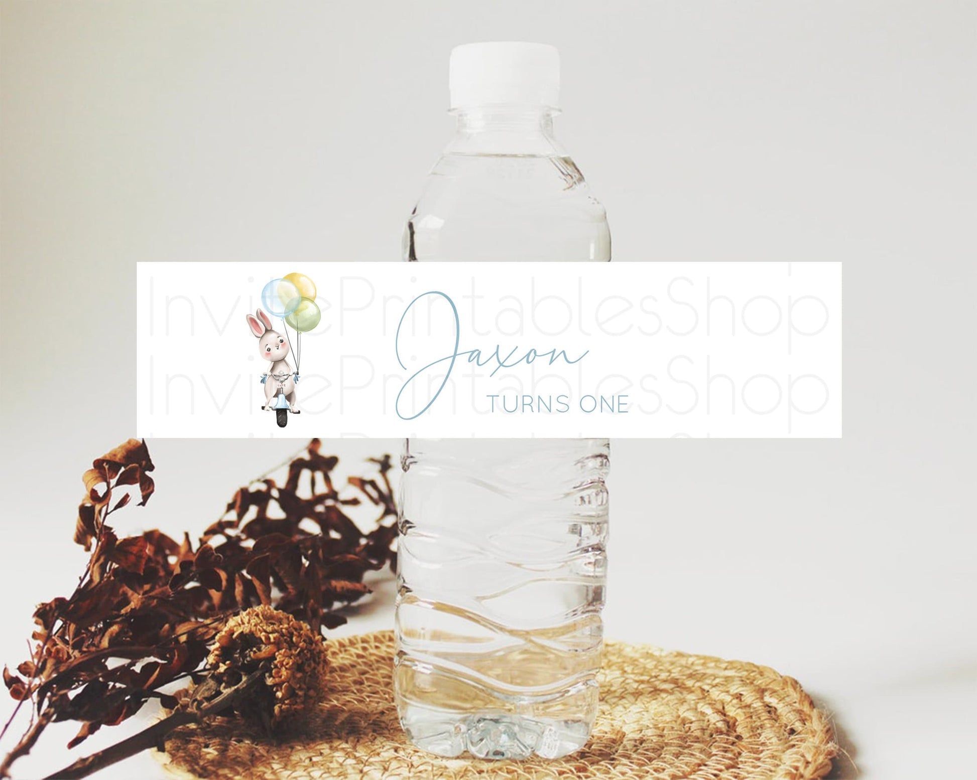 Bunny Balloon Water Label Template Colorful Pastel Confetti Sprinkles Bunny Party Decor Water Label 1st Birthday Baby Shower Baptism D10783