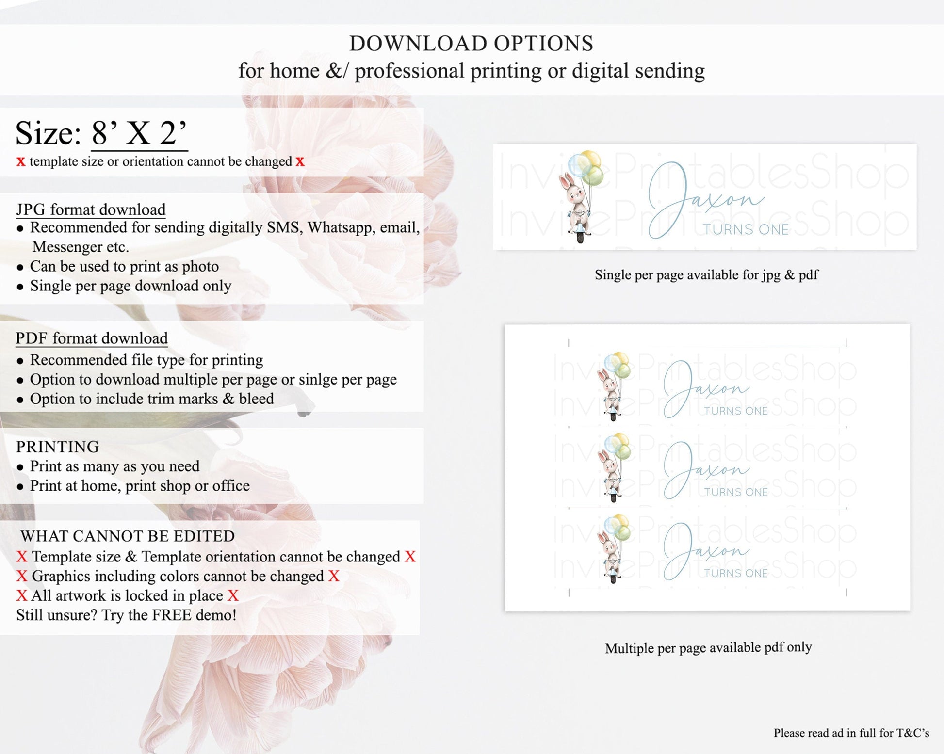 • Template size & orientation cannot be changed. Please use the demo link to confirm this product suits your needs.