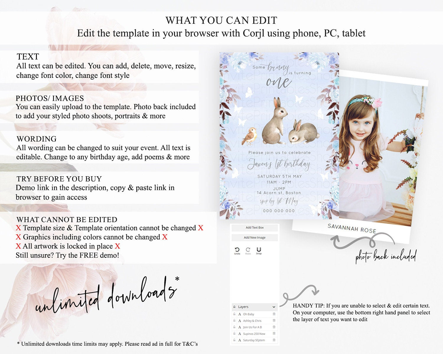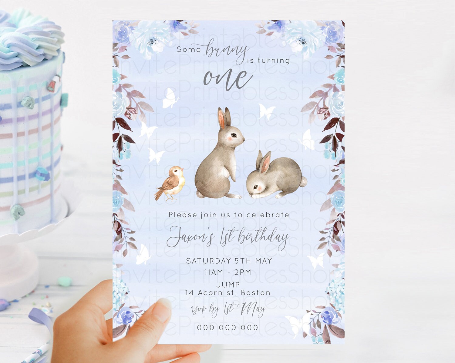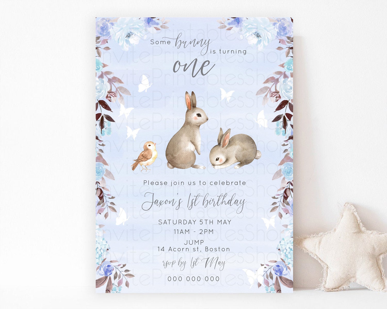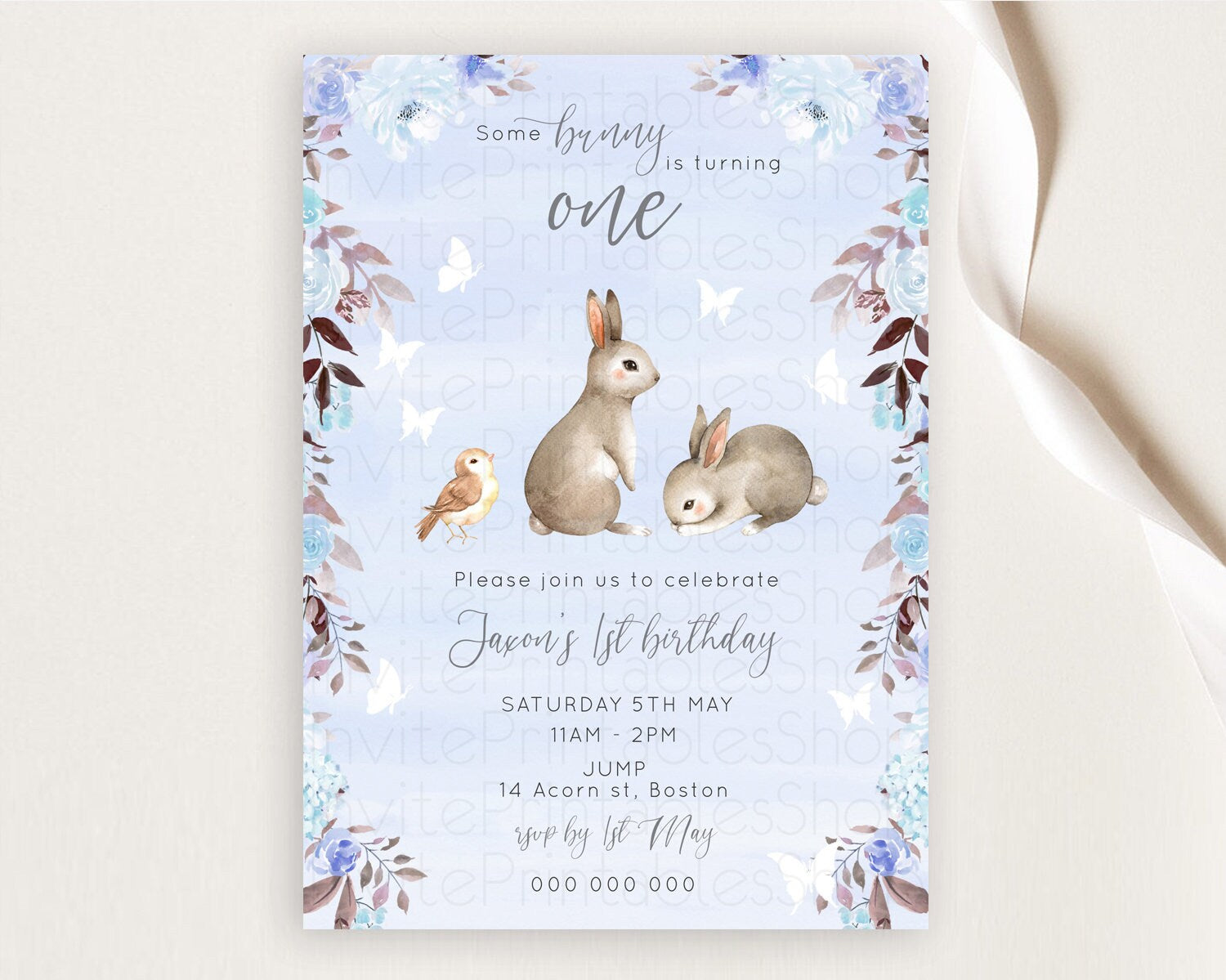 Bunny Birthday Invitation Floral Bunny Invitation Pastel Bunny Invites Pastel Watercolor Woodland Bunny Party 2nd 1st First Birthday D10923