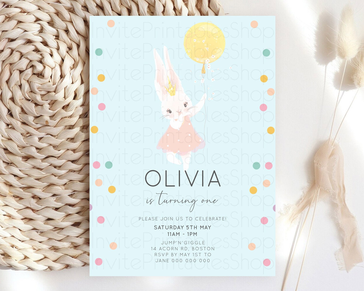 Bunny Birthday Invitation Pastel Bunny Invitation Bunny Balloon Invites Pastel Confetti Balloon Bunny Invites 2nd 1st First Birthday 199v3