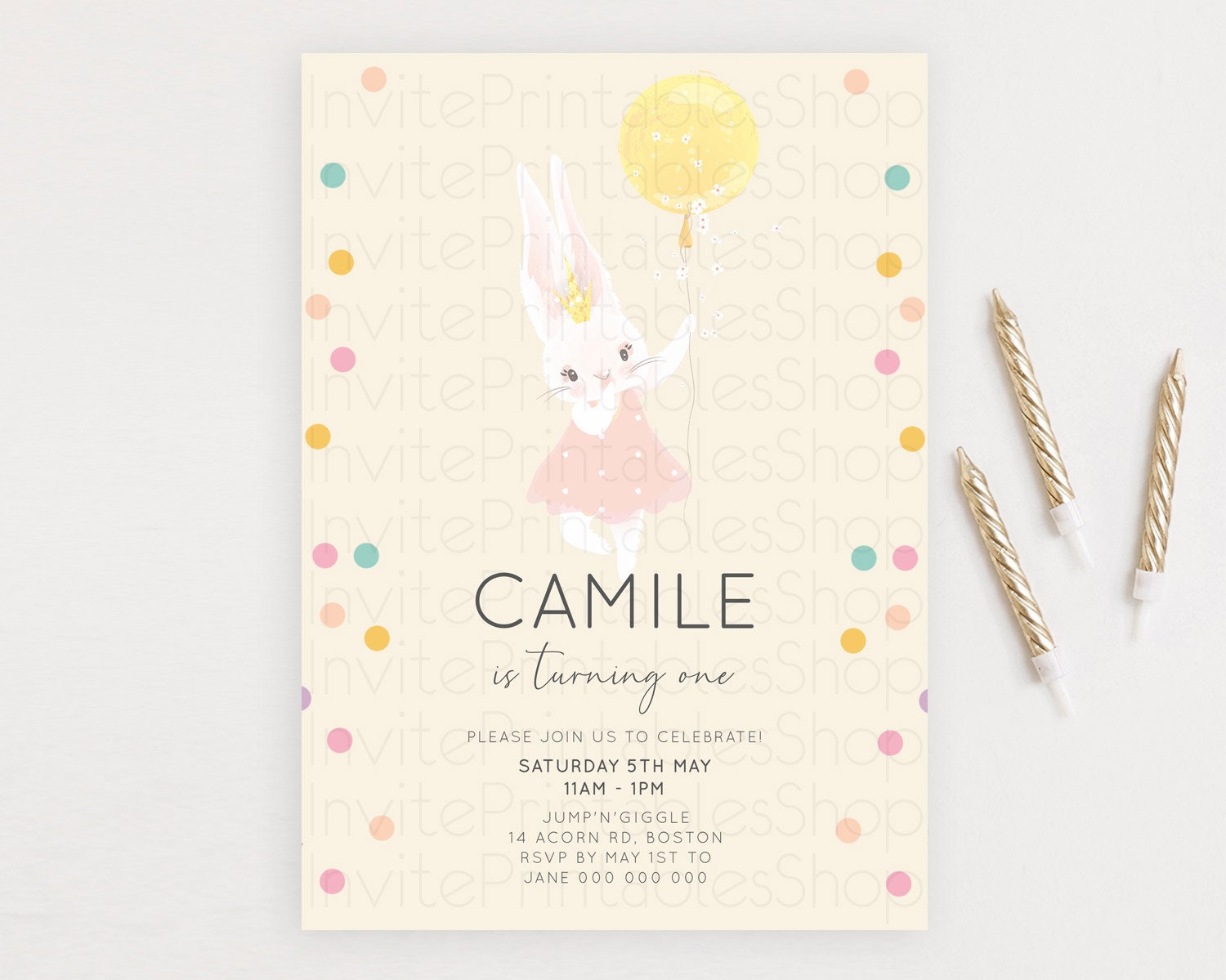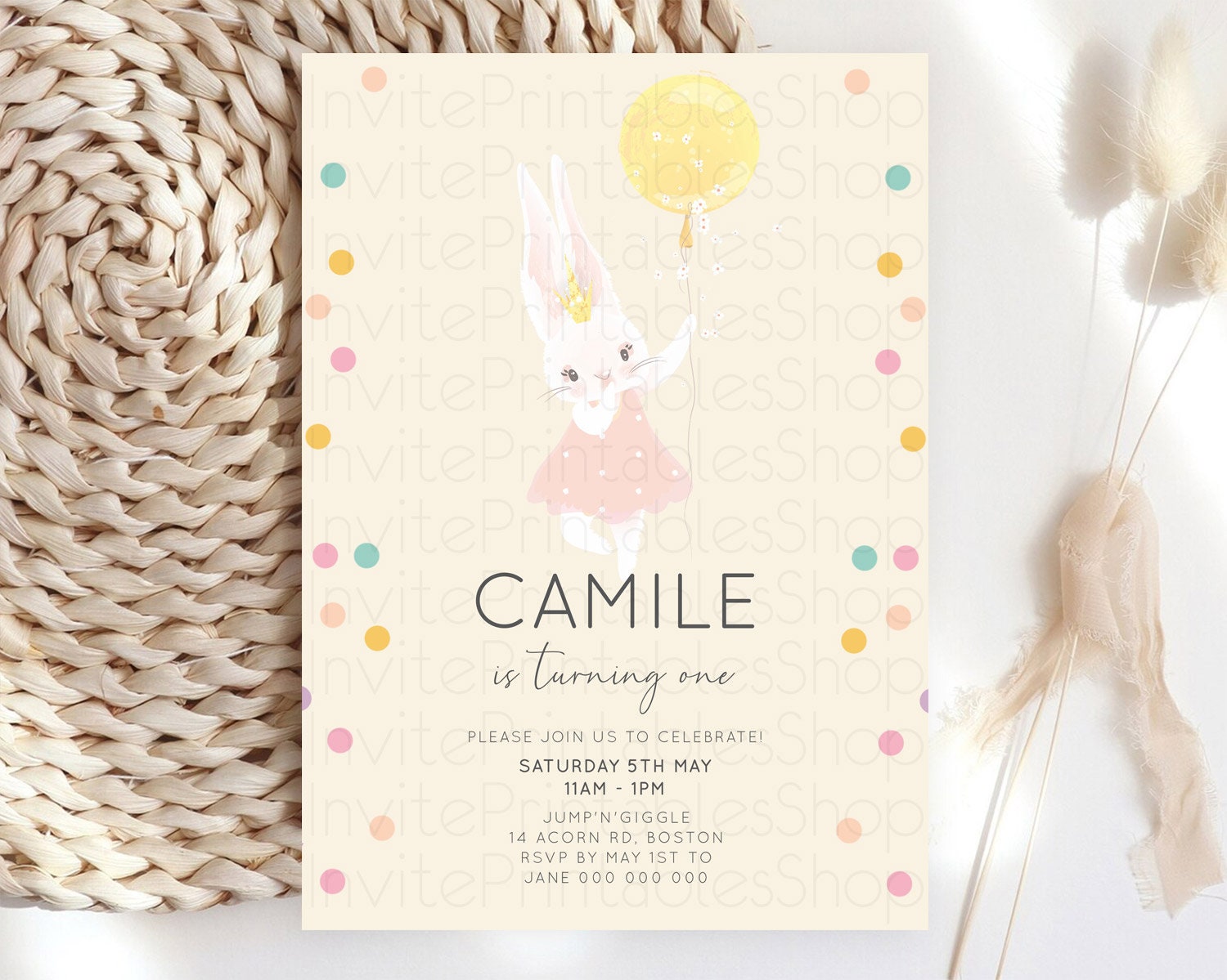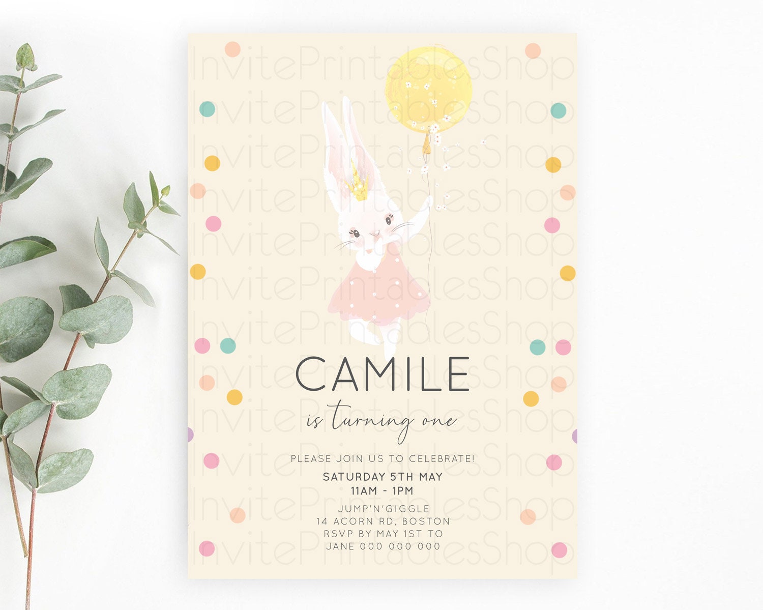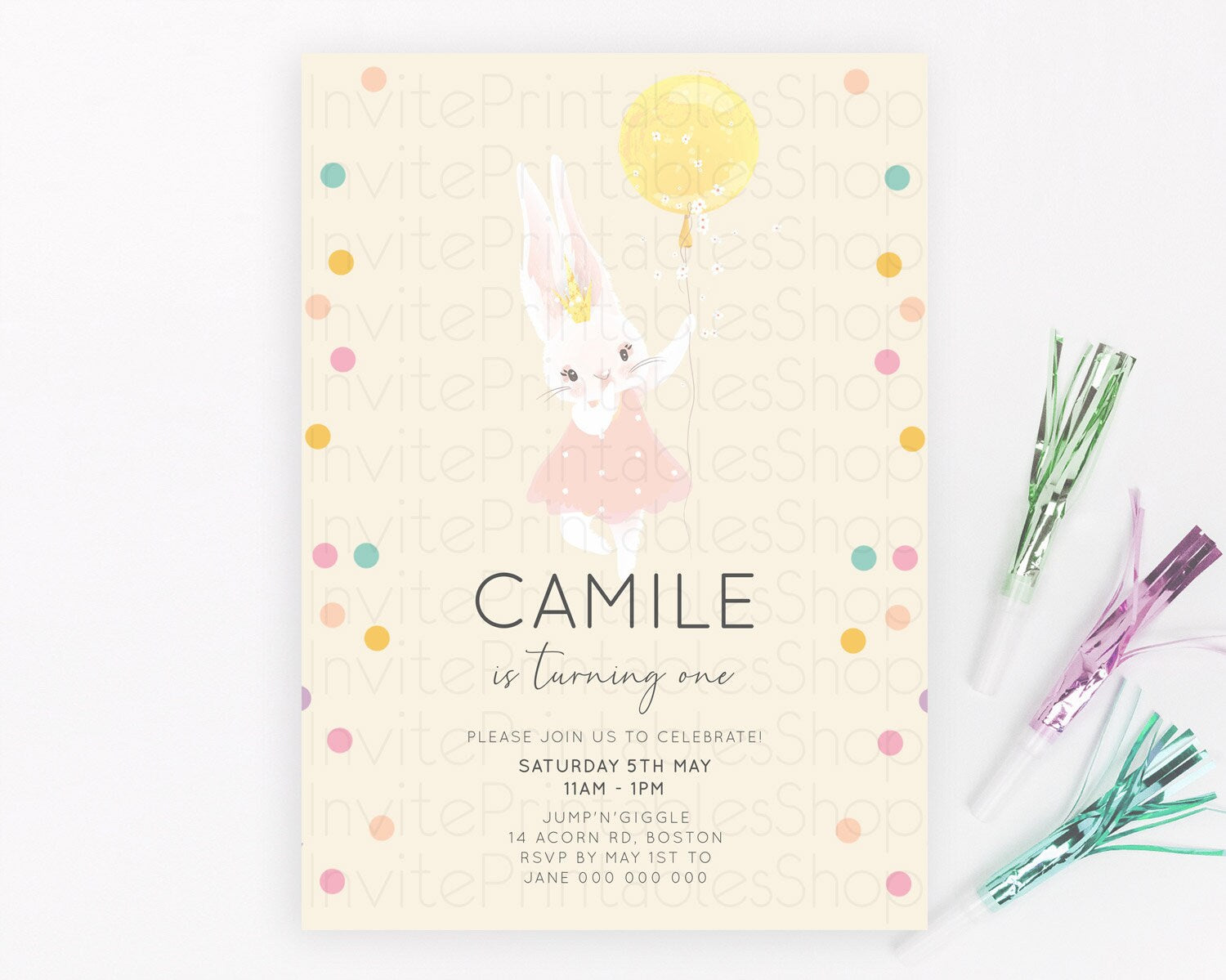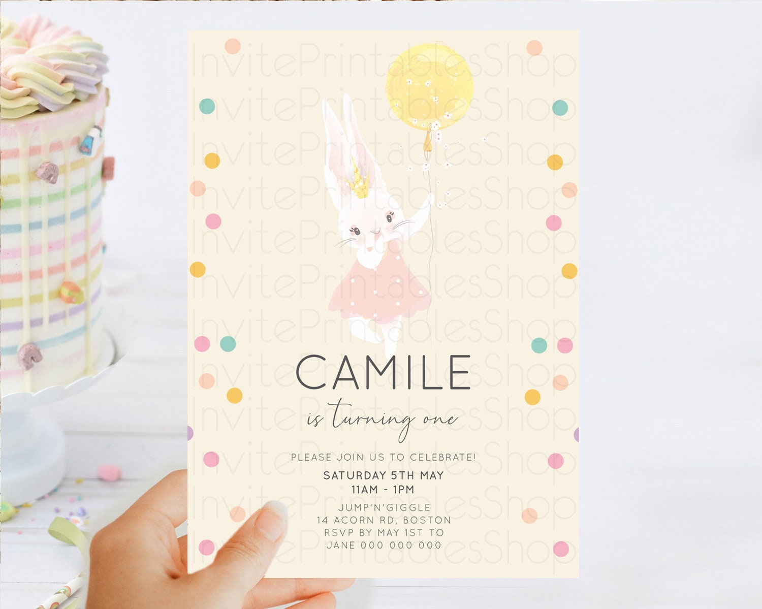 Bunny Birthday Invitation Pastel Bunny Invitation Bunny Balloon Invites Pastel Confetti Balloon Bunny Invites 2nd 1st First Birthday 199v4