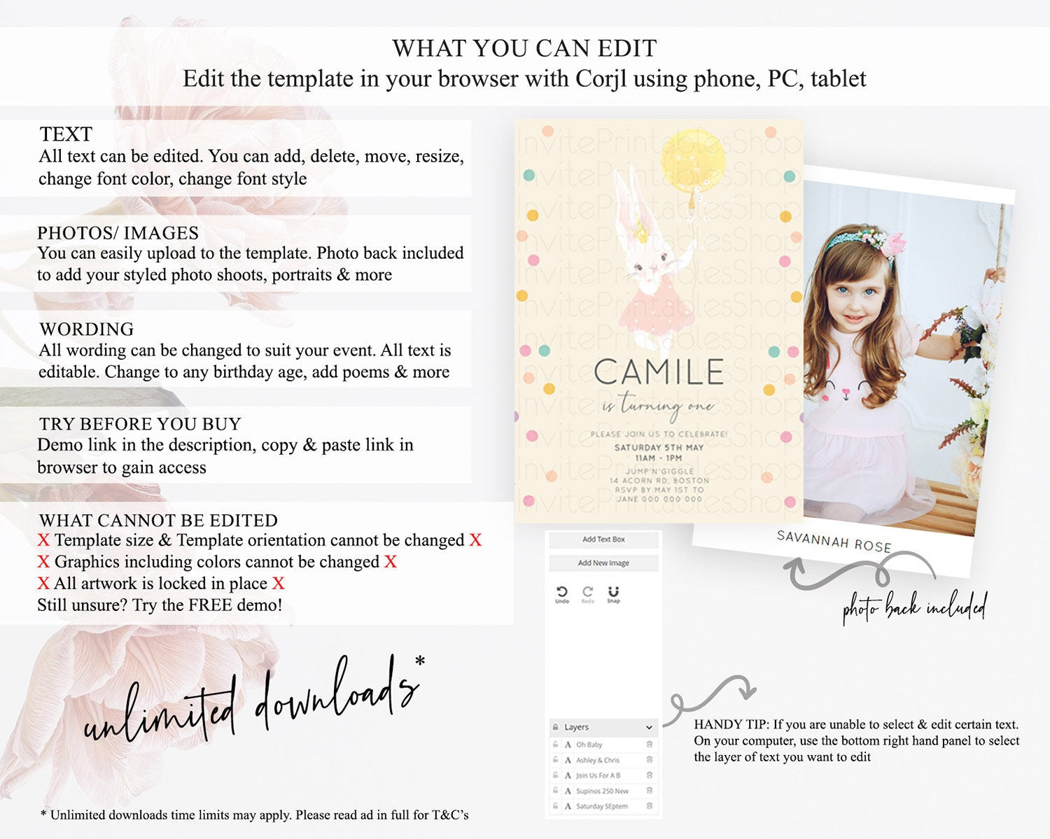 • After purchase, Corjl emails your editing link. Allow up to 15 minutes for delivery.