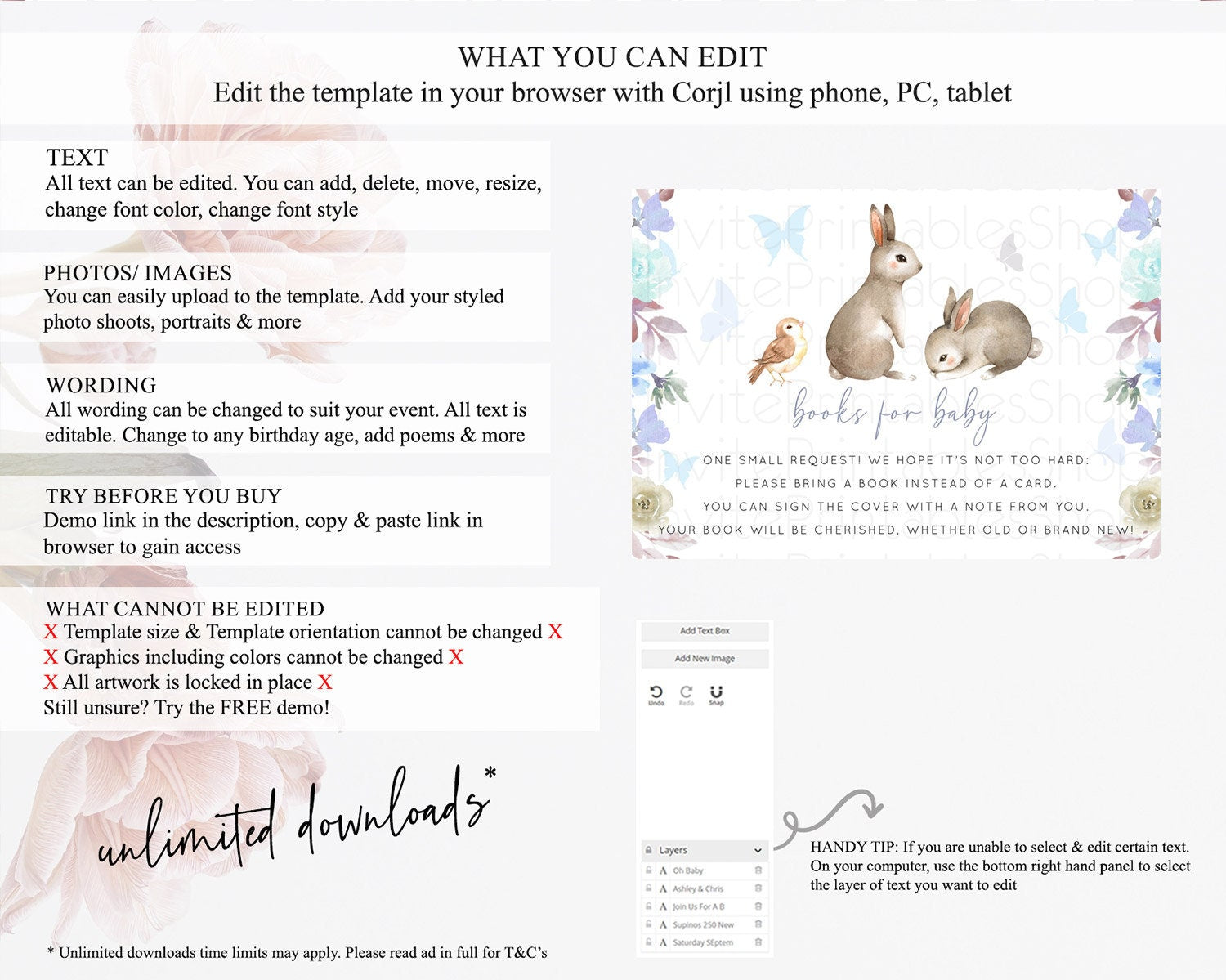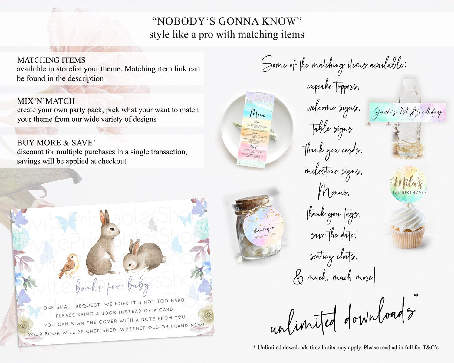 Bunny Books For Baby Card Floral Bunny Book Insert Pastel Flowers Woodland Bunny Book Card Forest Bunny Baby Book Poem Request D10927