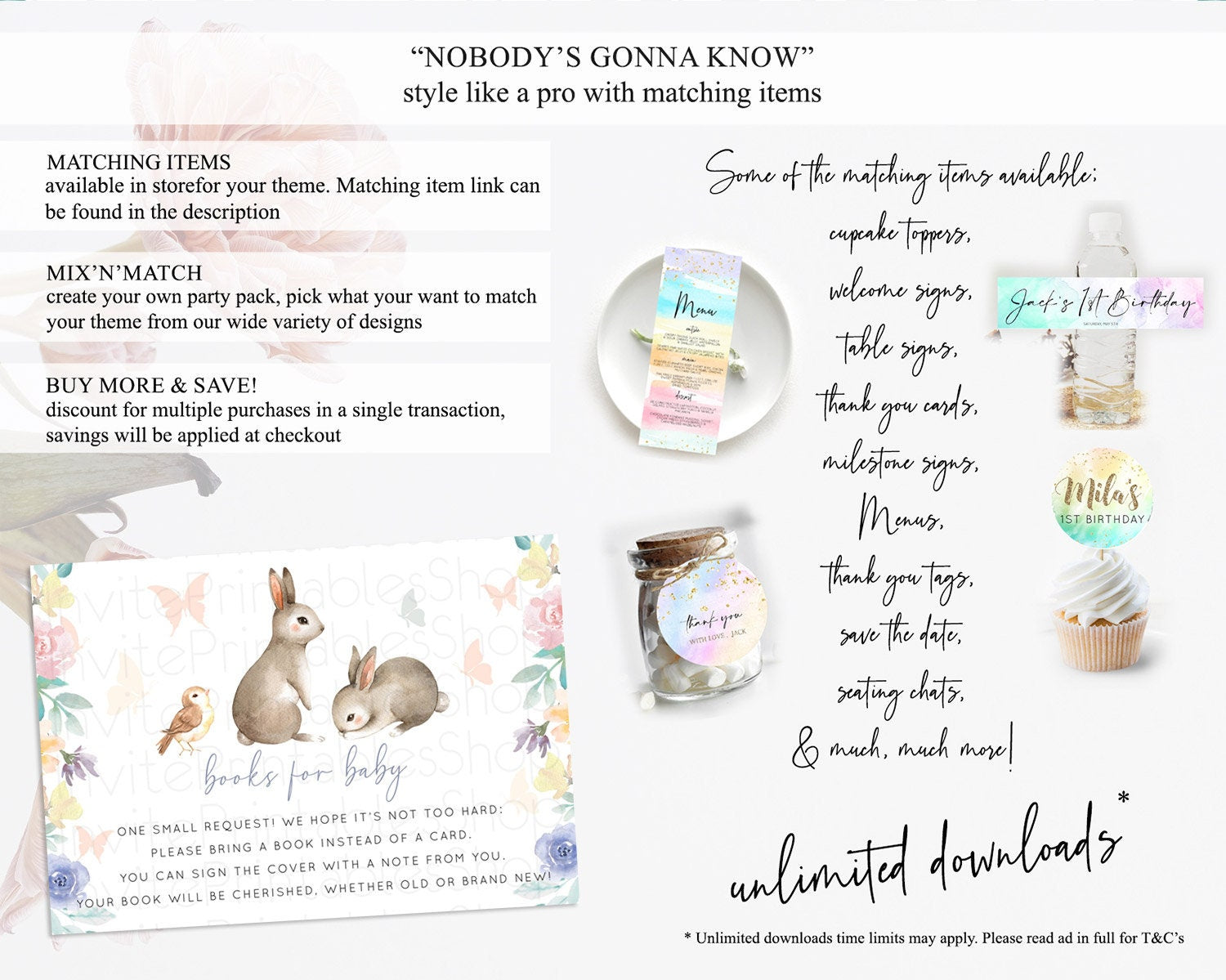 Bunny Books For Baby Card Floral Bunny Book Insert Pastel Flowers Woodland Bunny Book Card Forest Bunny Baby Book Poem Request D10928