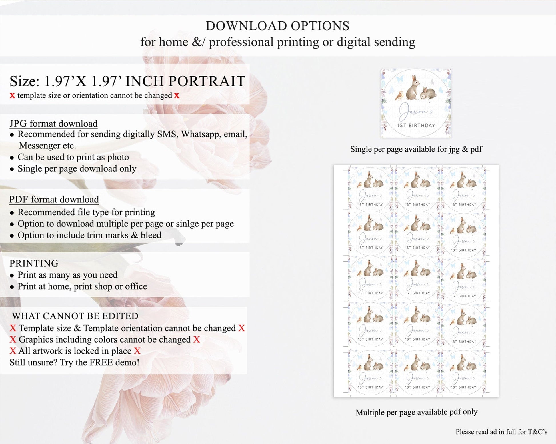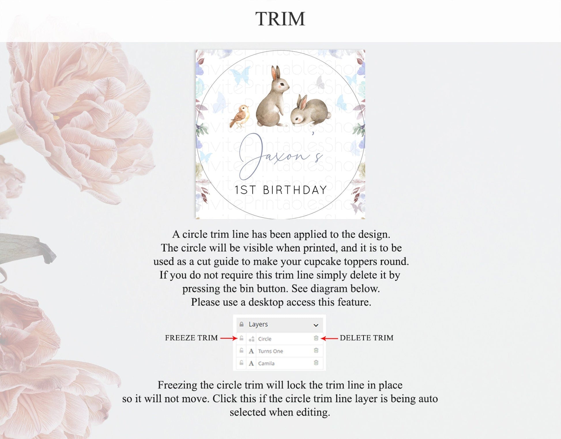 Bunny Cupcake Toppers Floral Bunny Cupcake Toppers Pastel Bunny Cupcake Pastel Watercolor Woodland Flowers Bunny First Birthday D10927