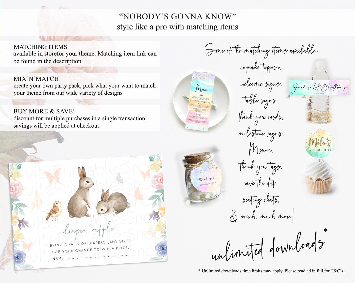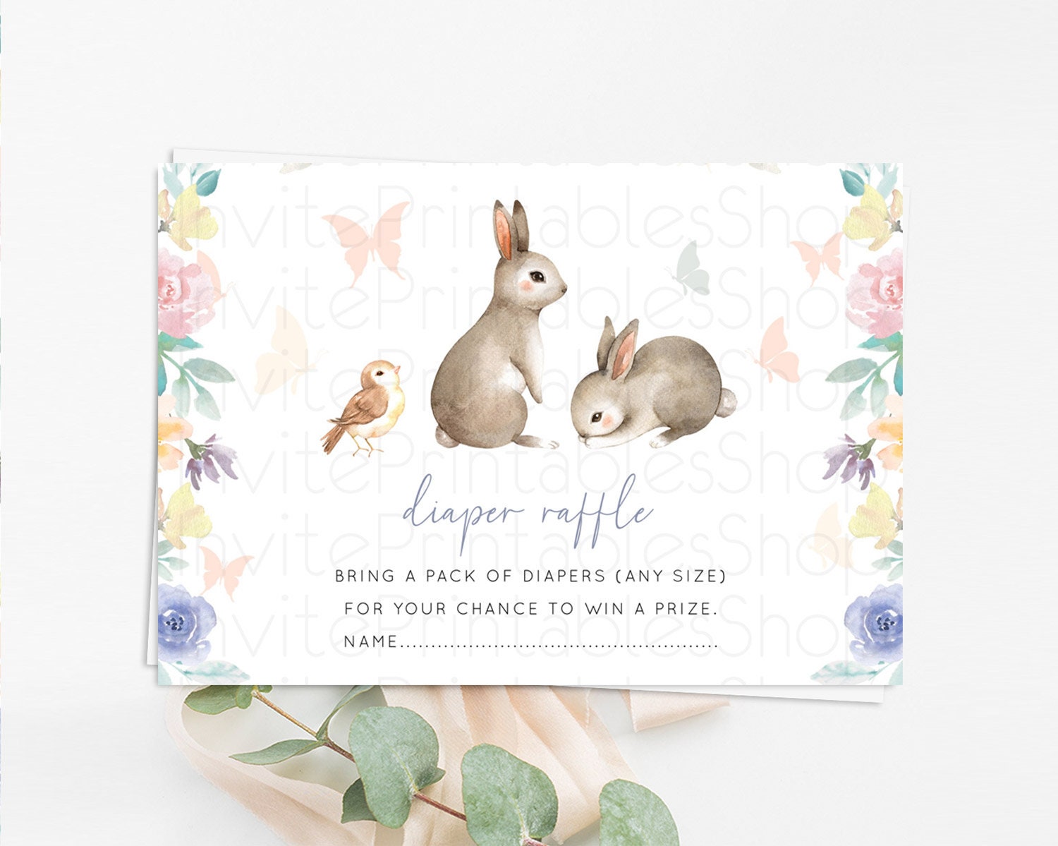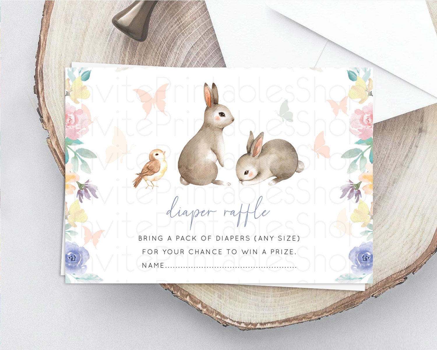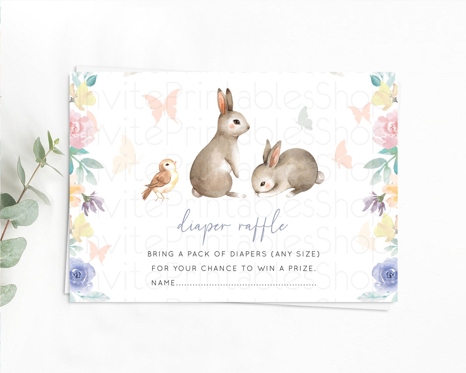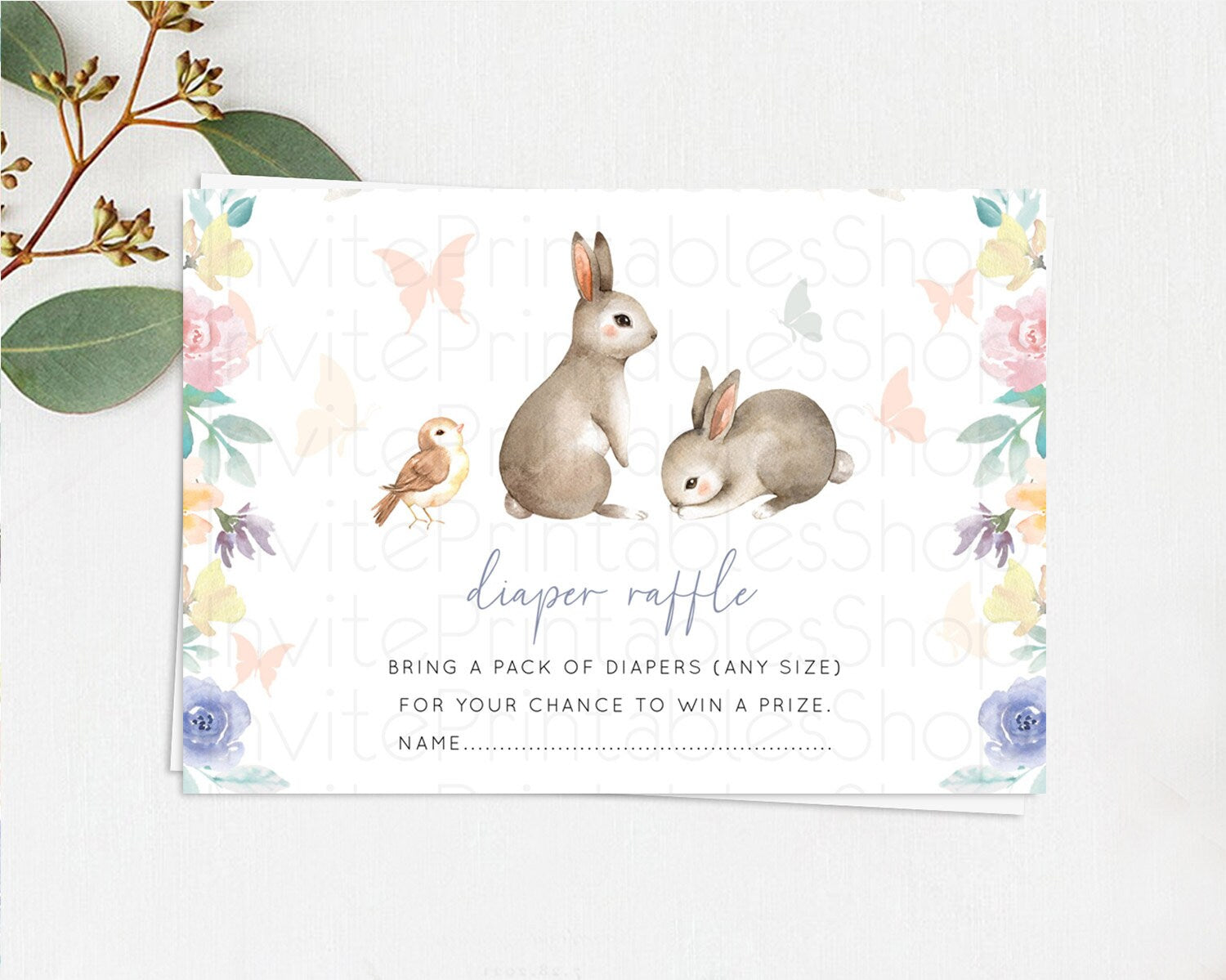 Bunny Diaper Raffle Card Floral Bunny Diaper Raffle Insert Pastel Flowers Woodland Bunny Diaper Ticket Forest Bunny Raffle Game D10928