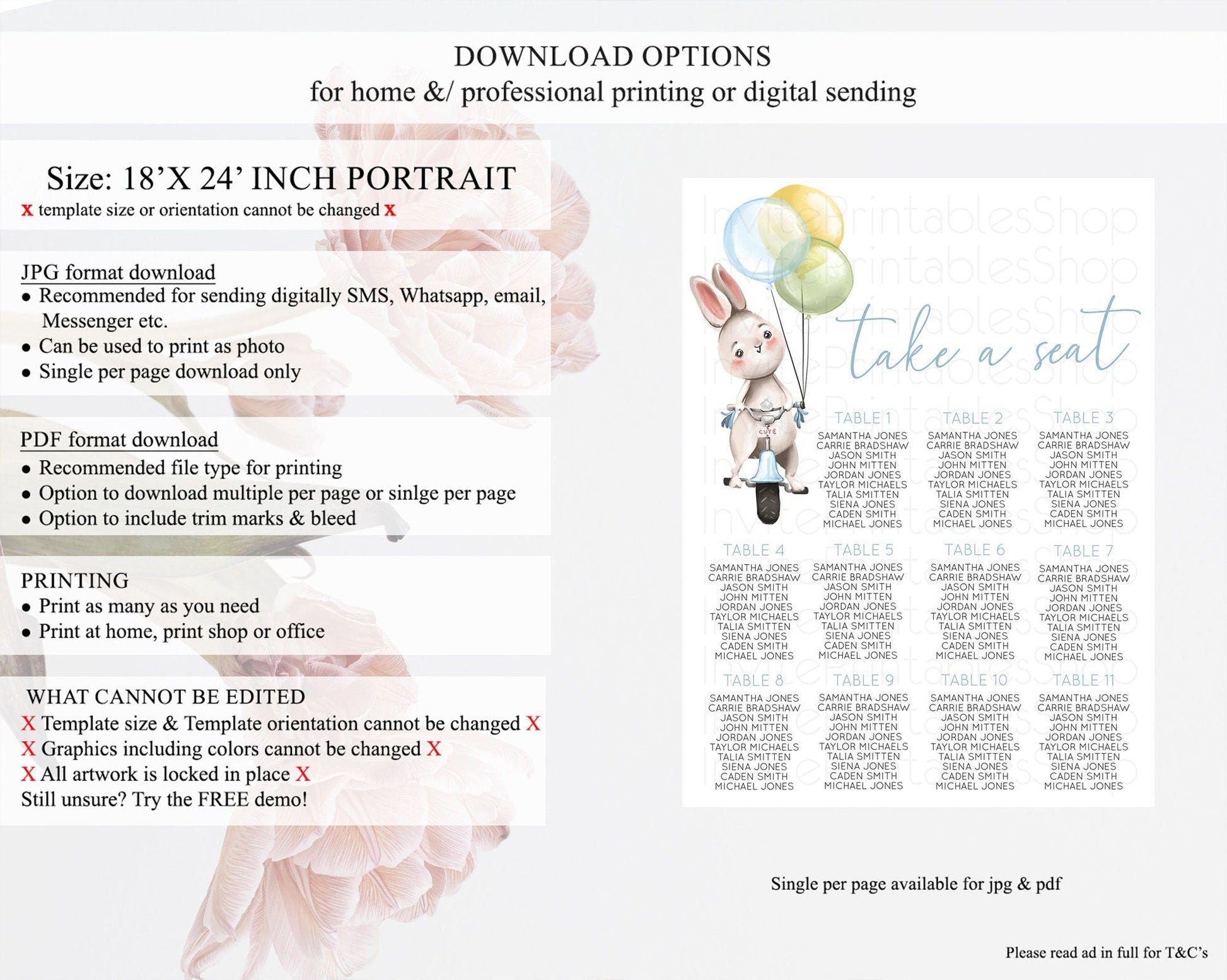 Bunny Seating Chart Pastel Bunny Seating Chart Bunny Balloon Seating Sign Pastel Confetti Balloon Bunny Seating Board Bunny Decor D10783