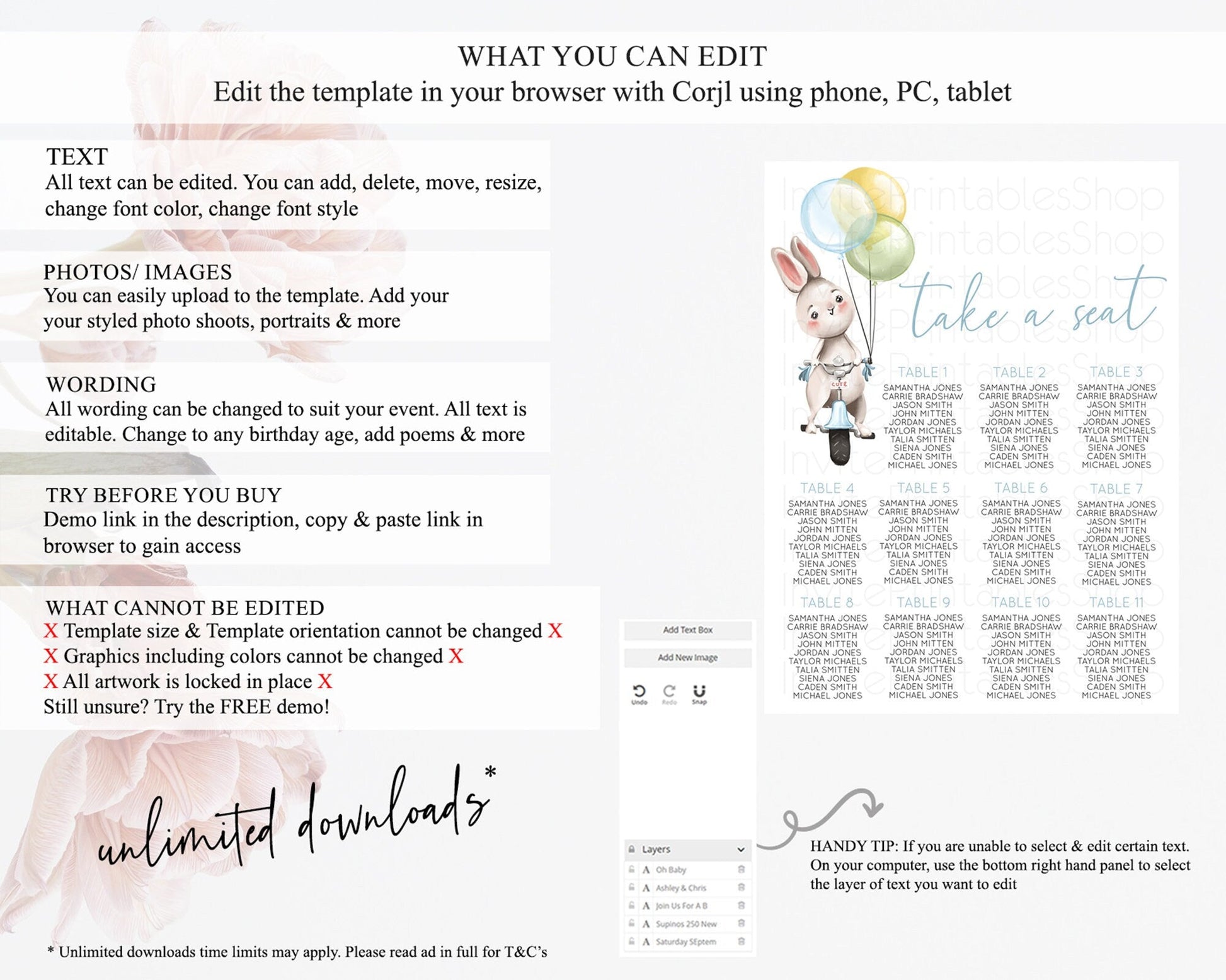 • After purchase, Corjl emails your editing link. Allow up to 15 minutes for delivery.
