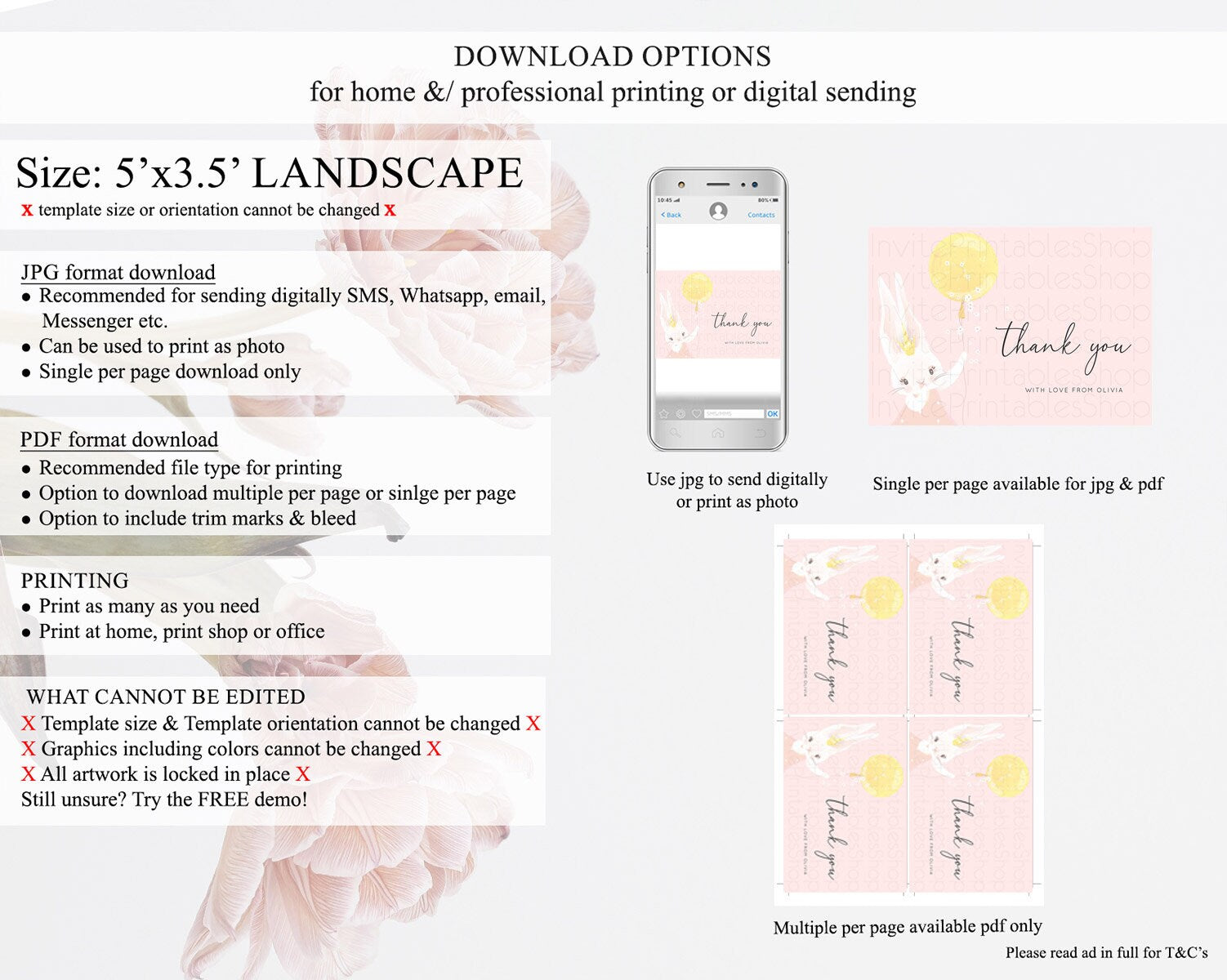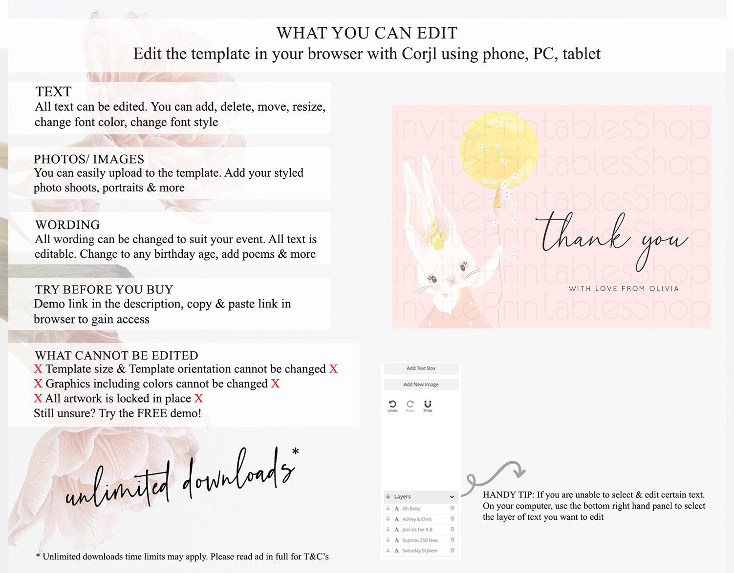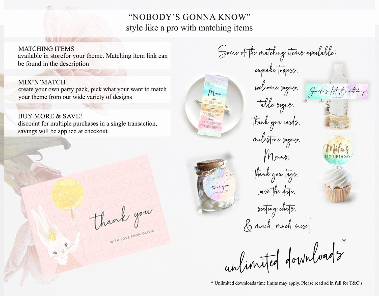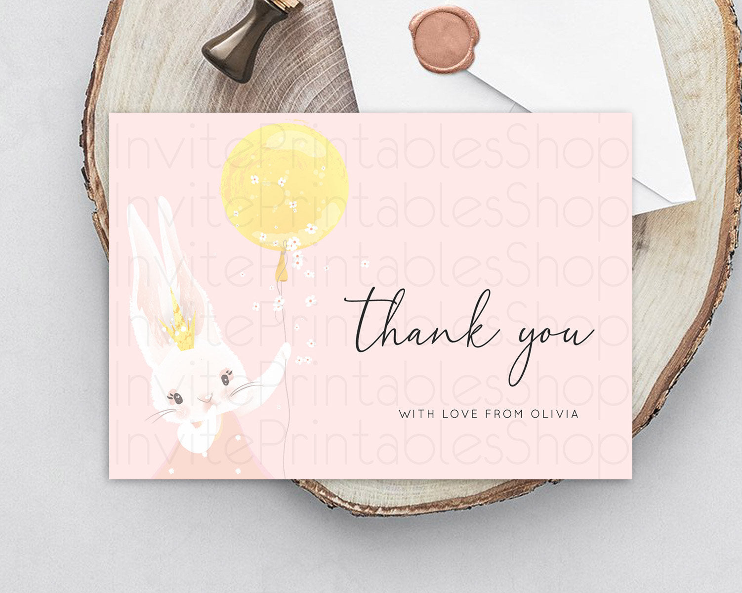 Bunny Thank You Bunny Balloon Thank You Card Colorful Pastel Confetti Birthday Thank You Card Sprinkles Bunny Teacher Thank You Card D10219