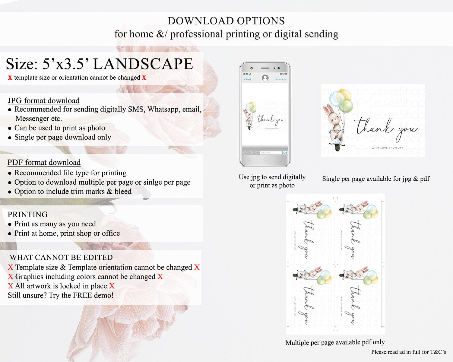 Bunny Thank You Bunny Balloon Thank You Card Colorful Pastel Confetti Birthday Thank You Card Sprinkles Bunny Teacher Thank You Card D10783