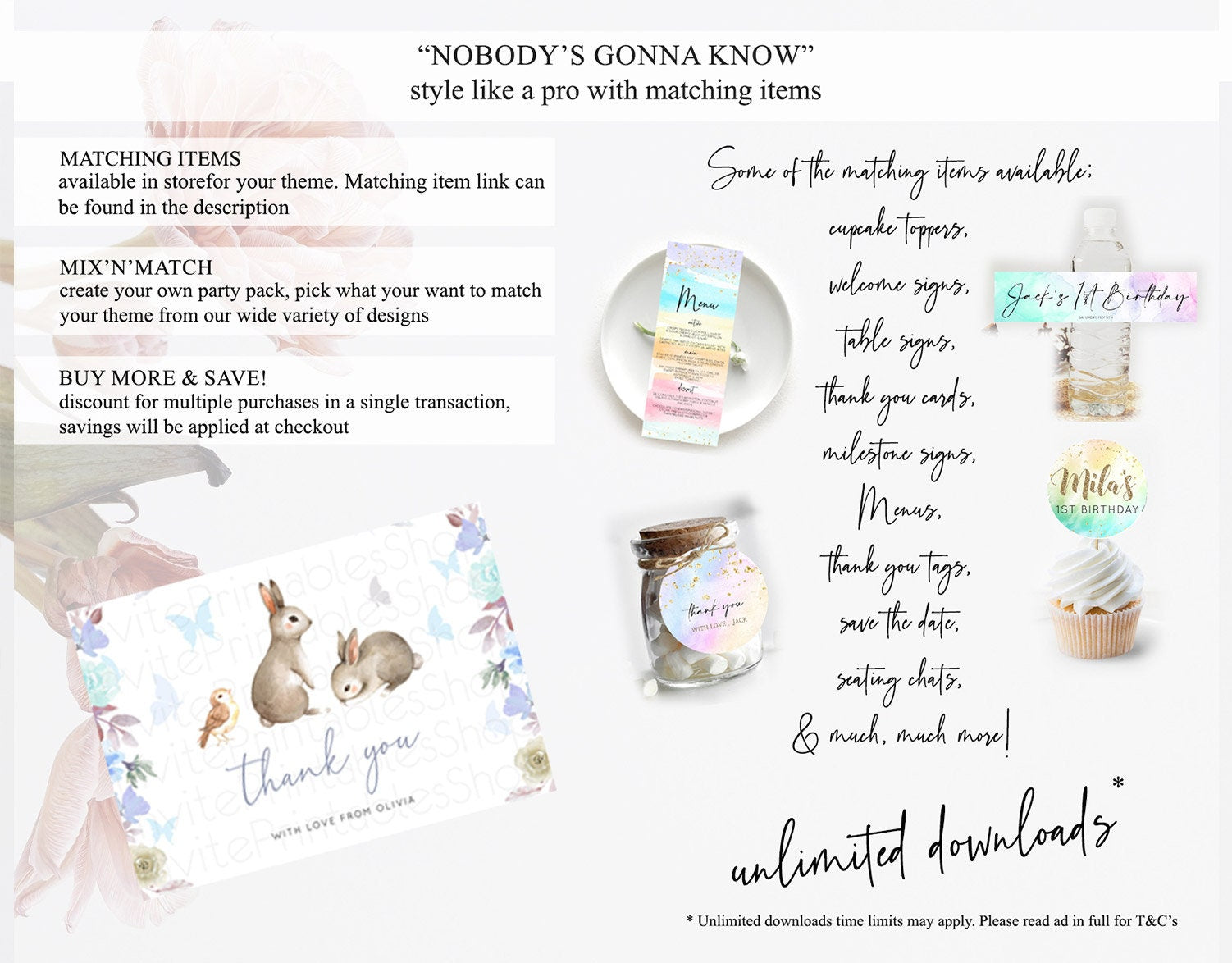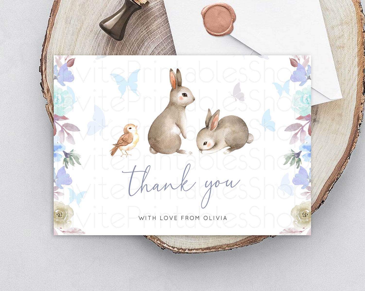 Bunny Thank You Floral Bunny Thank You Card Pastel Flowers Bunny Birthday Thank You Card Secret Garden Bunny Teacher Thank You Cards D10927