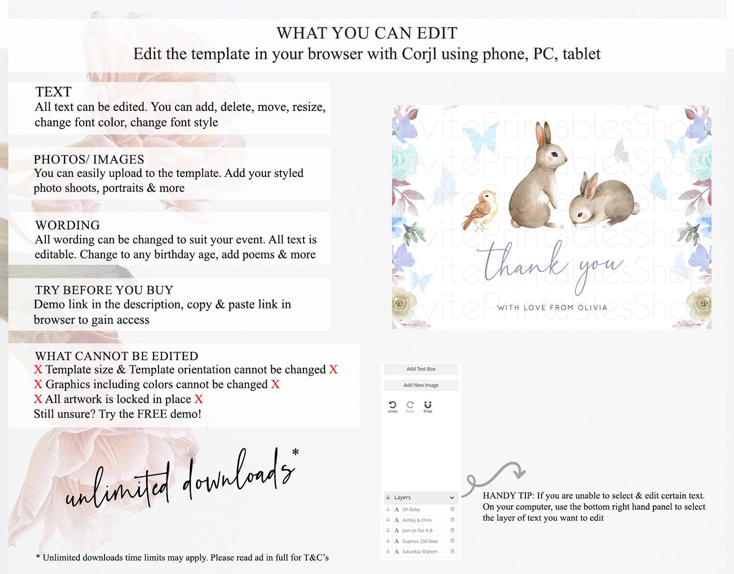 • After purchase, Corjl emails your editing link. Allow up to 15 minutes for delivery.