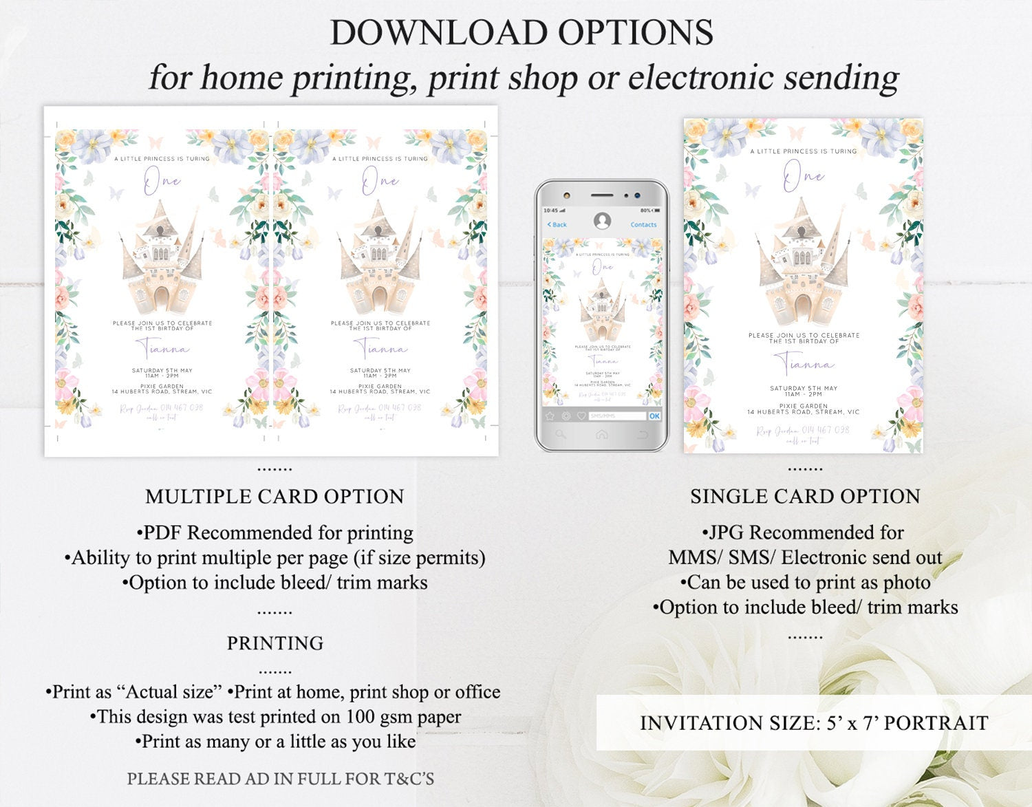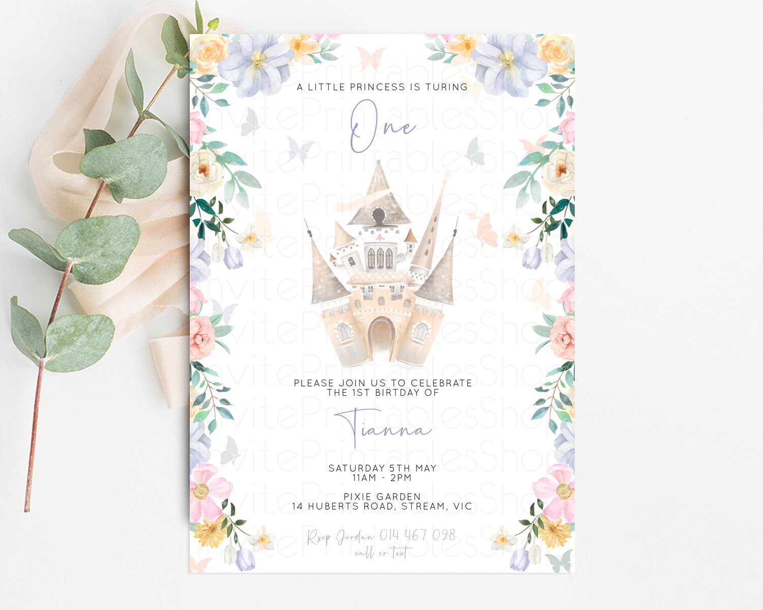 Castle Birthday Invitation Princess Birthday invite Enchanted Garden Invite Pastel Floral Invite Butterfly Garden Invite Royal Party C513