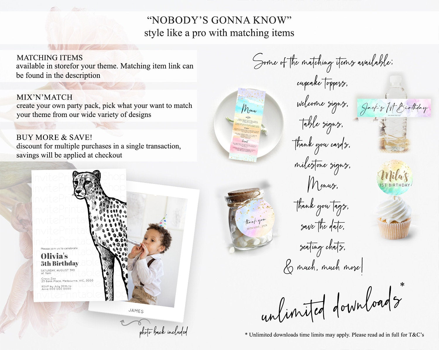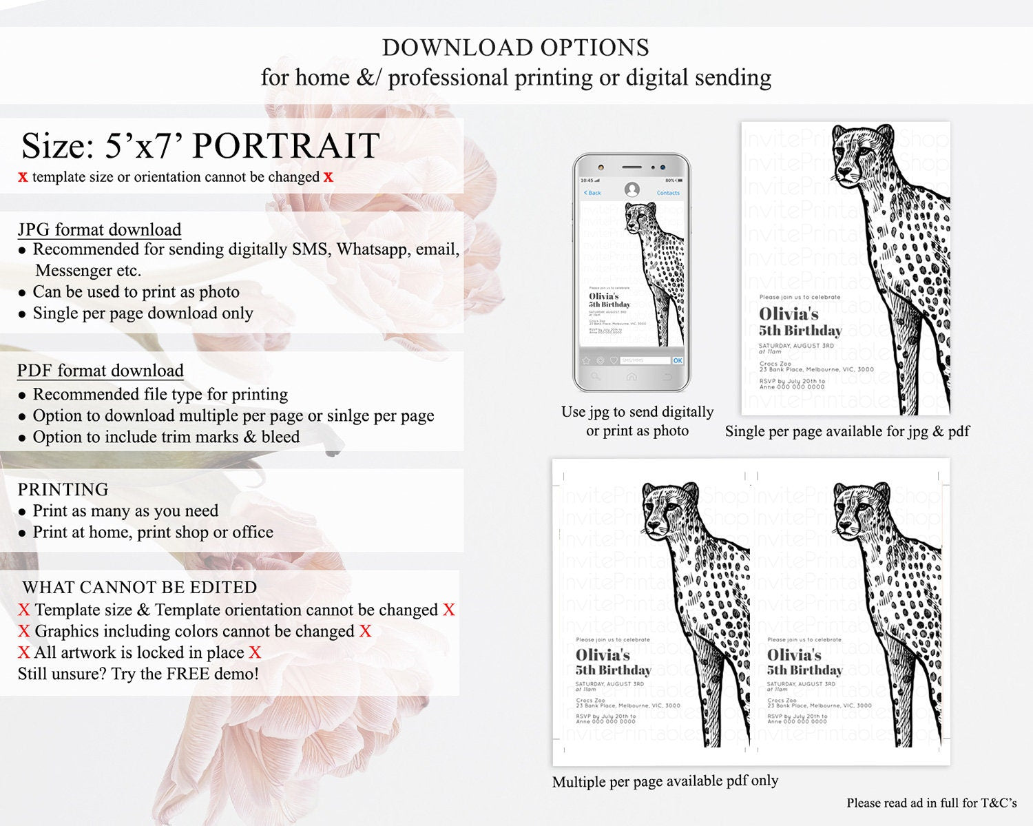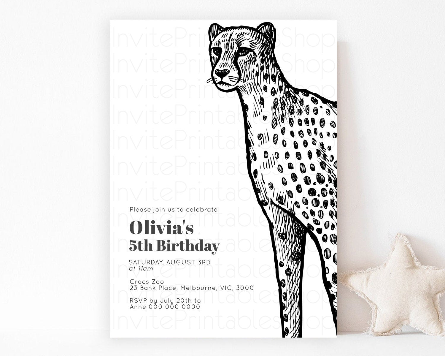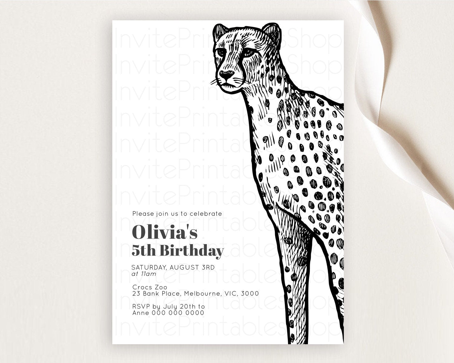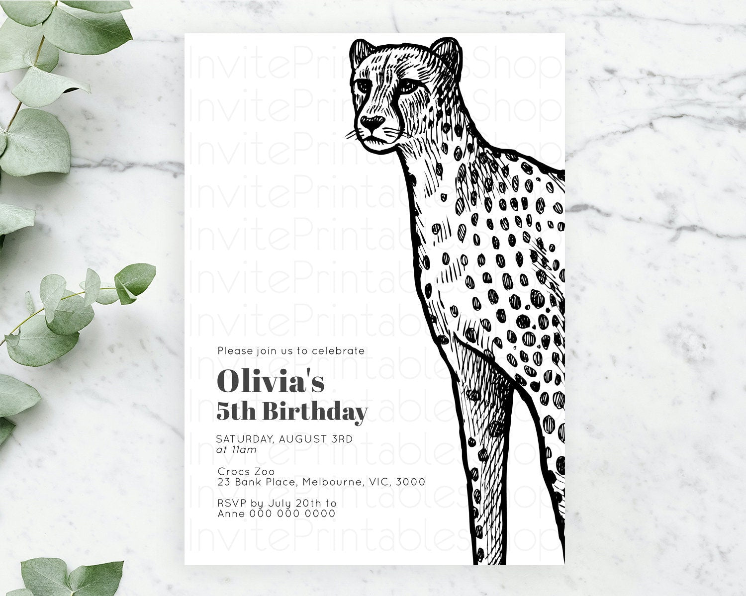 Cheetah Birthday Invitation Cheetah Invitation Cheetah Birthday Cheetah Safari Adventure Invite Cheetah Palm Leaf Invite Zoo Party D10290