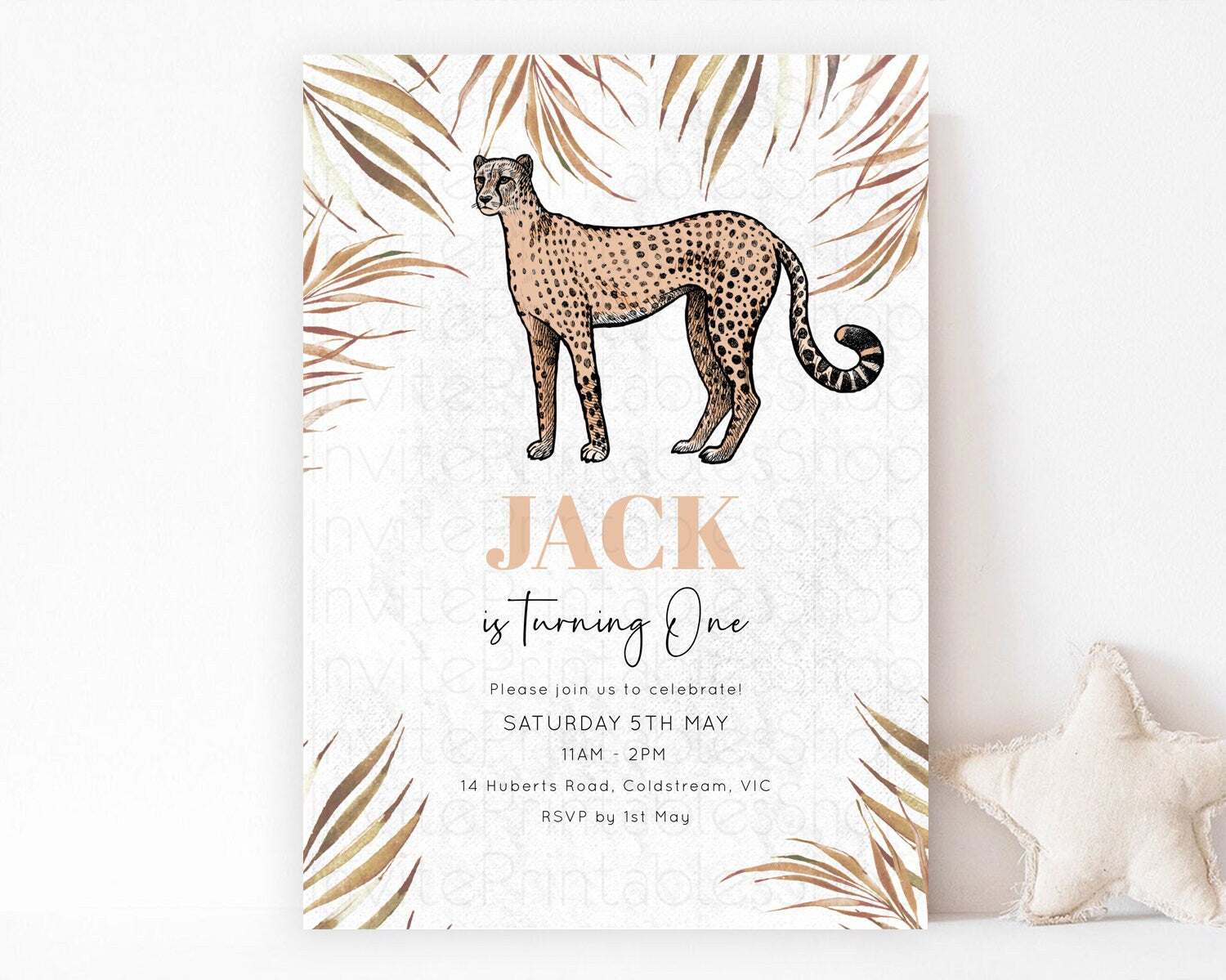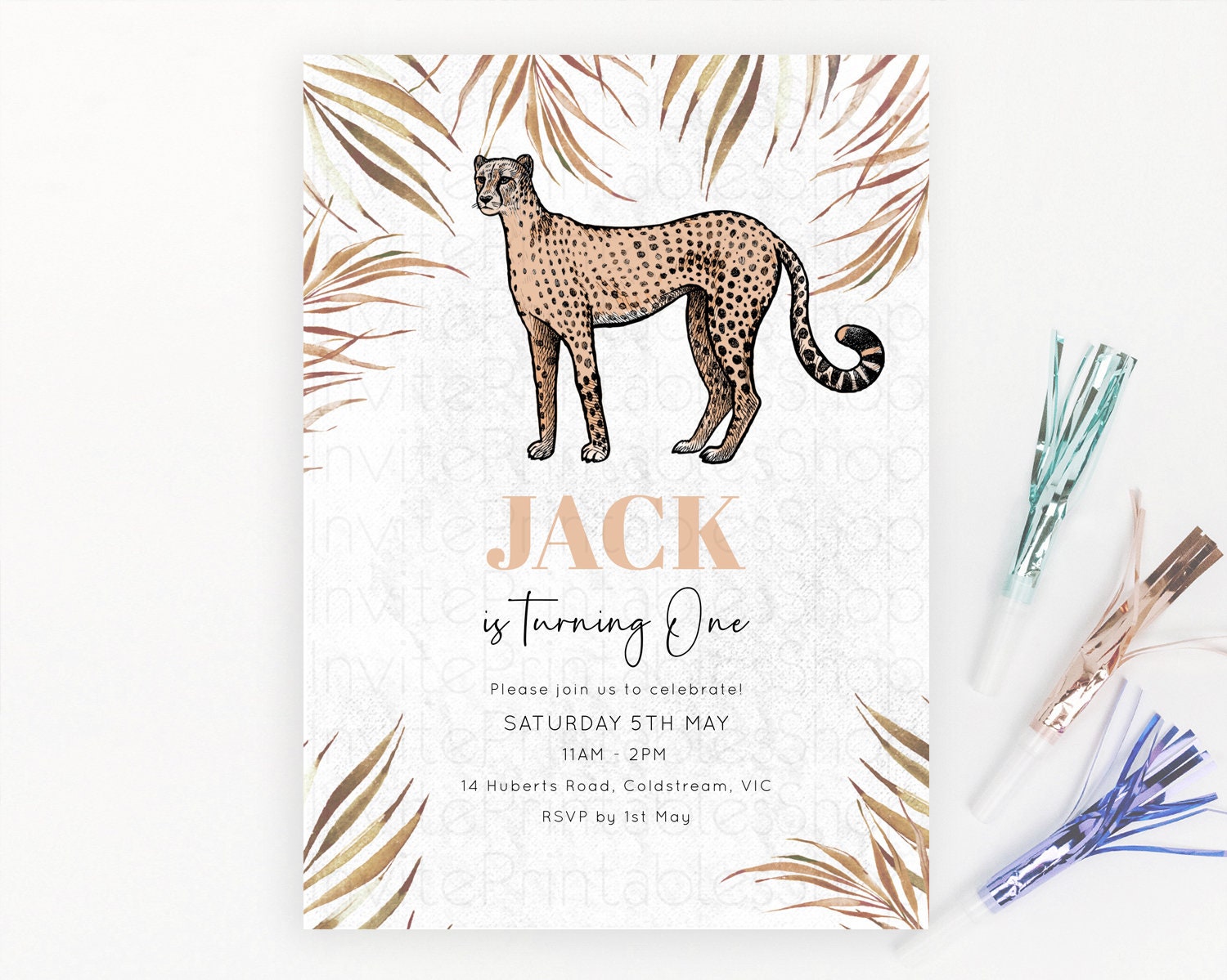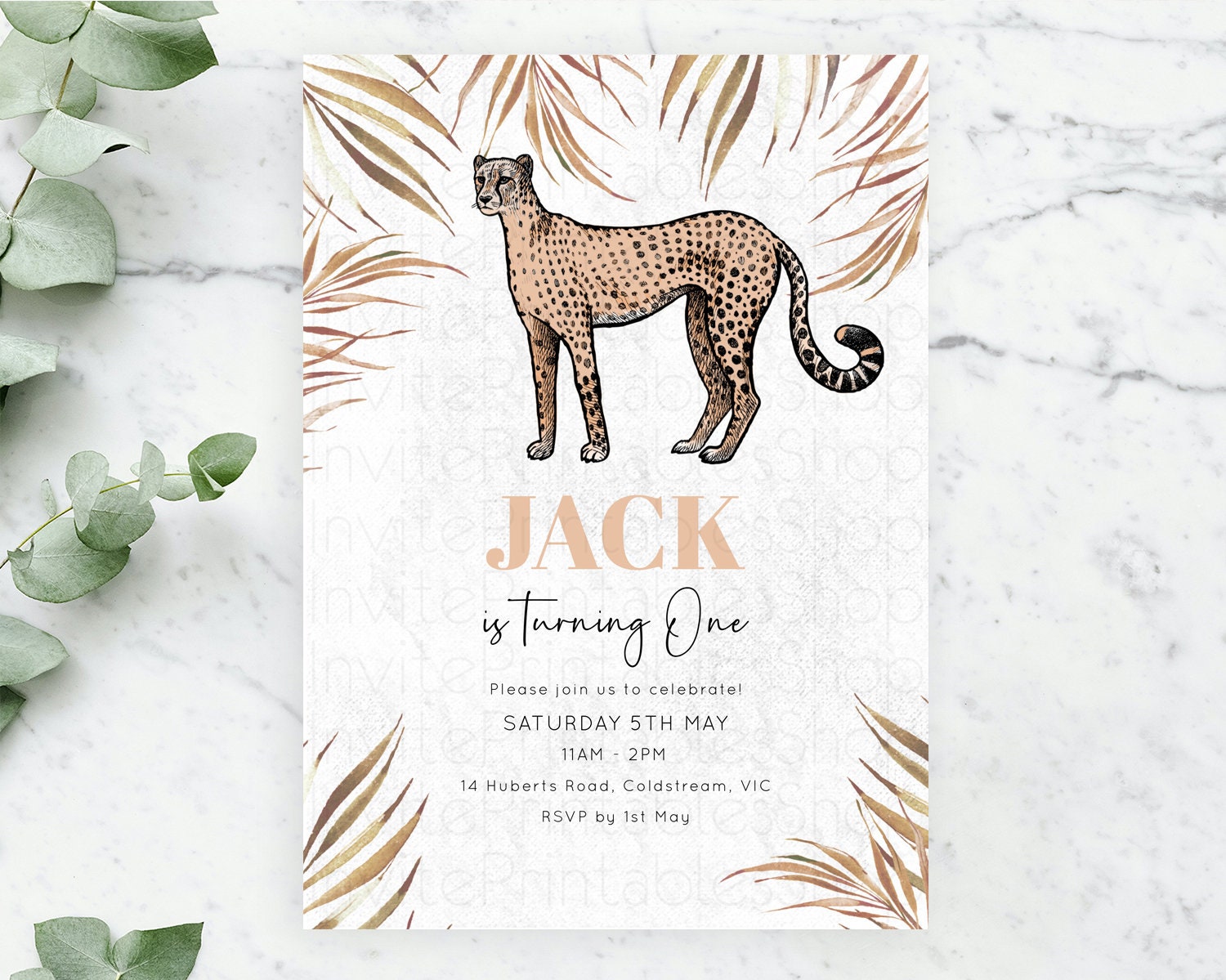Cheetah Birthday Invitation Cheetah Invitation Cheetah Birthday Cheetah Safari Adventure Invite Cheetah Palm Leaf Invite Zoo Party D10291