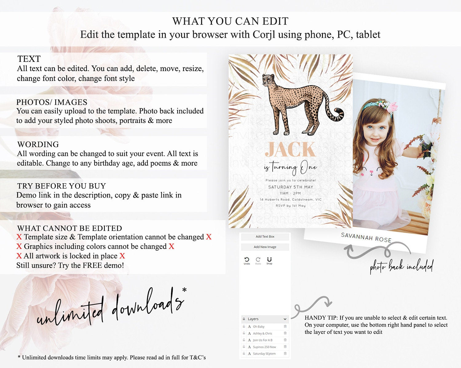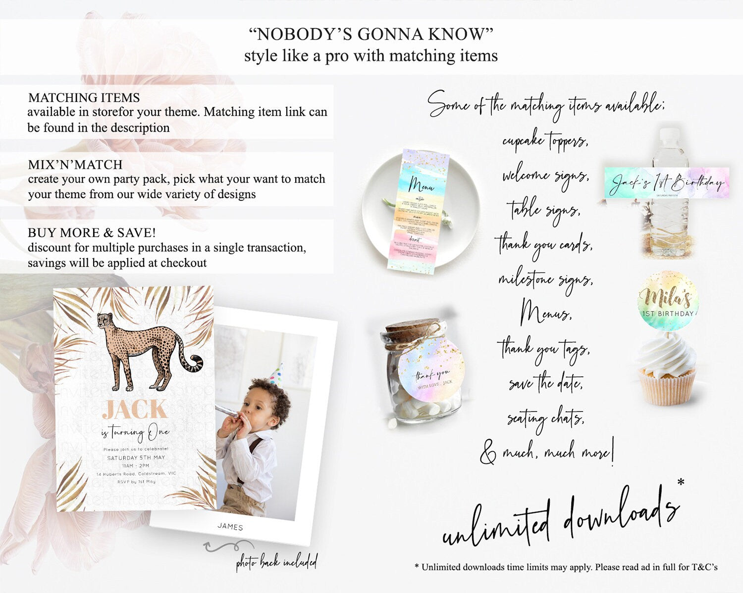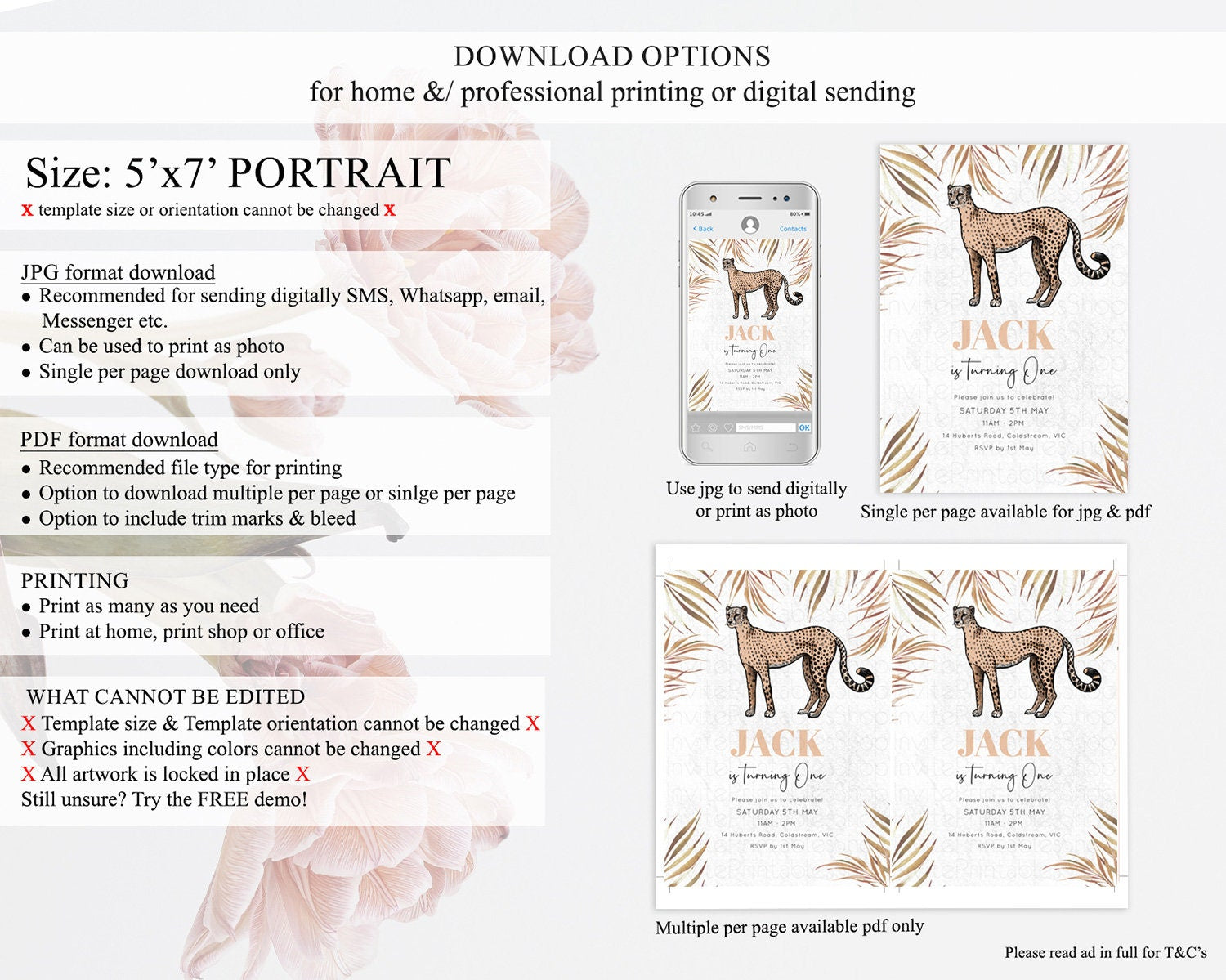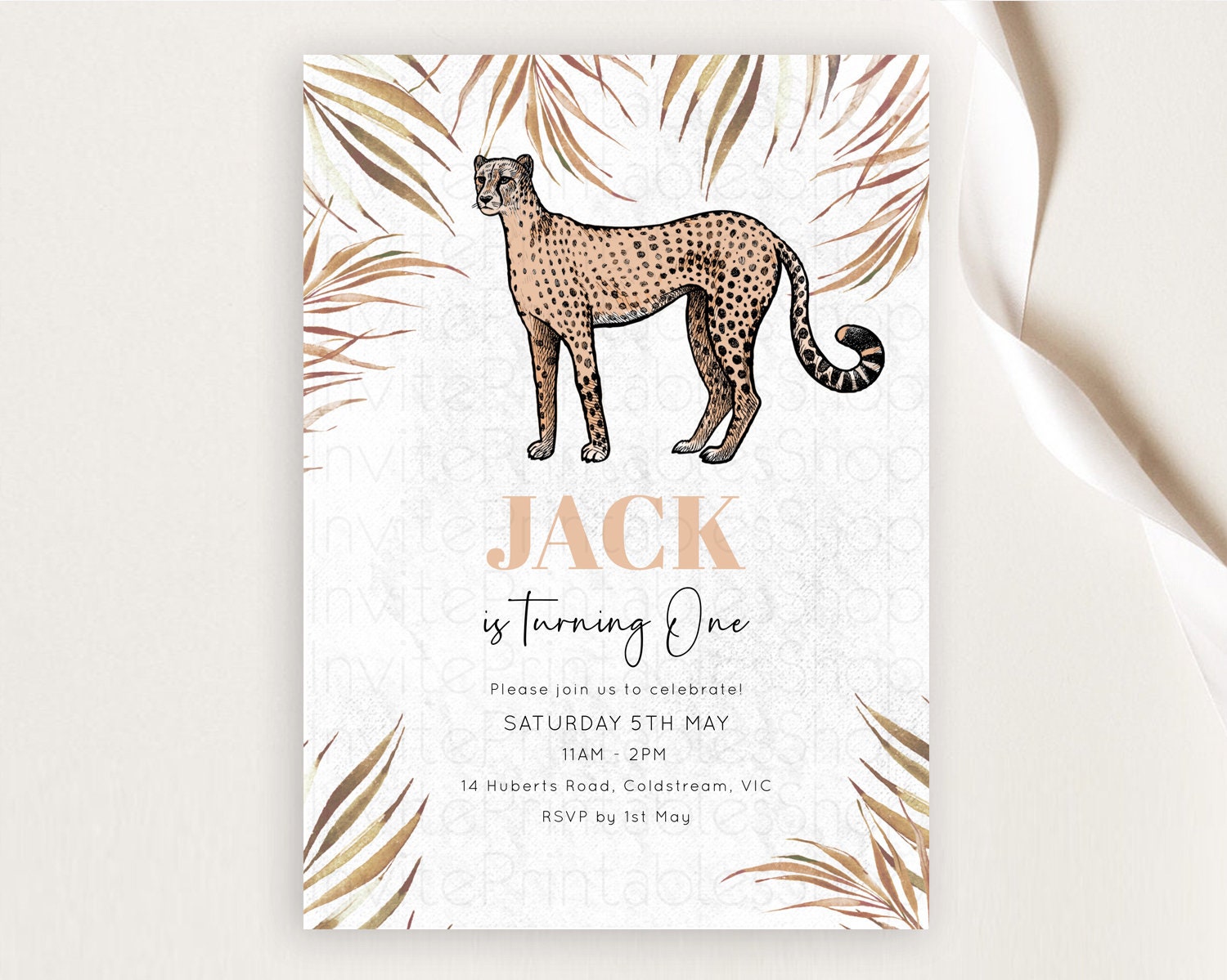 Cheetah Birthday Invitation Cheetah Invitation Cheetah Birthday Cheetah Safari Adventure Invite Cheetah Palm Leaf Invite Zoo Party D10291