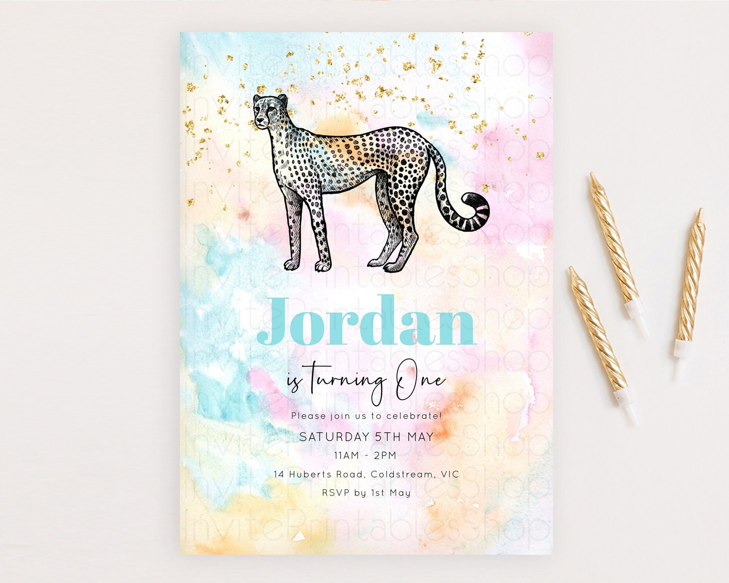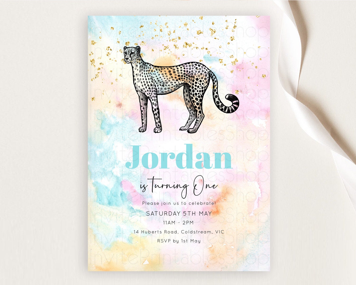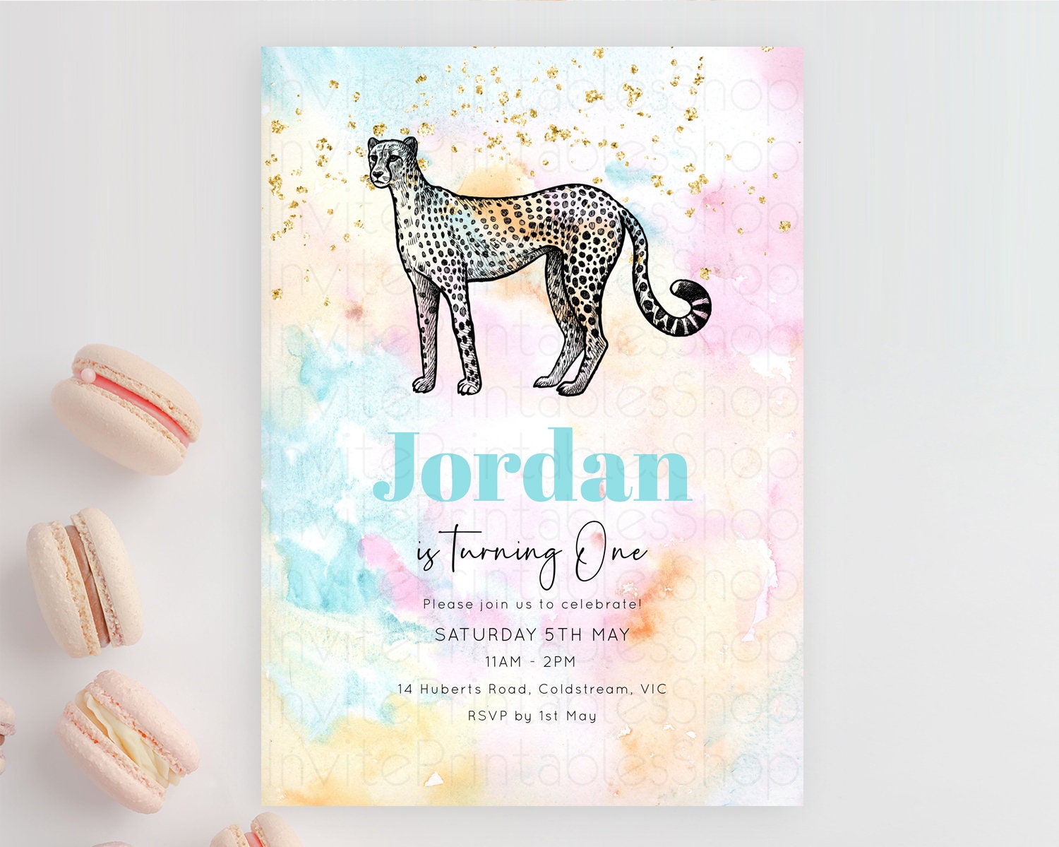 Cheetah Birthday Invitation Cheetah Invitation Cheetah Birthday Pastel Watercolor Cheetah Invitation Rainbow Cheetah Invitation D10289
