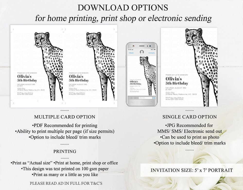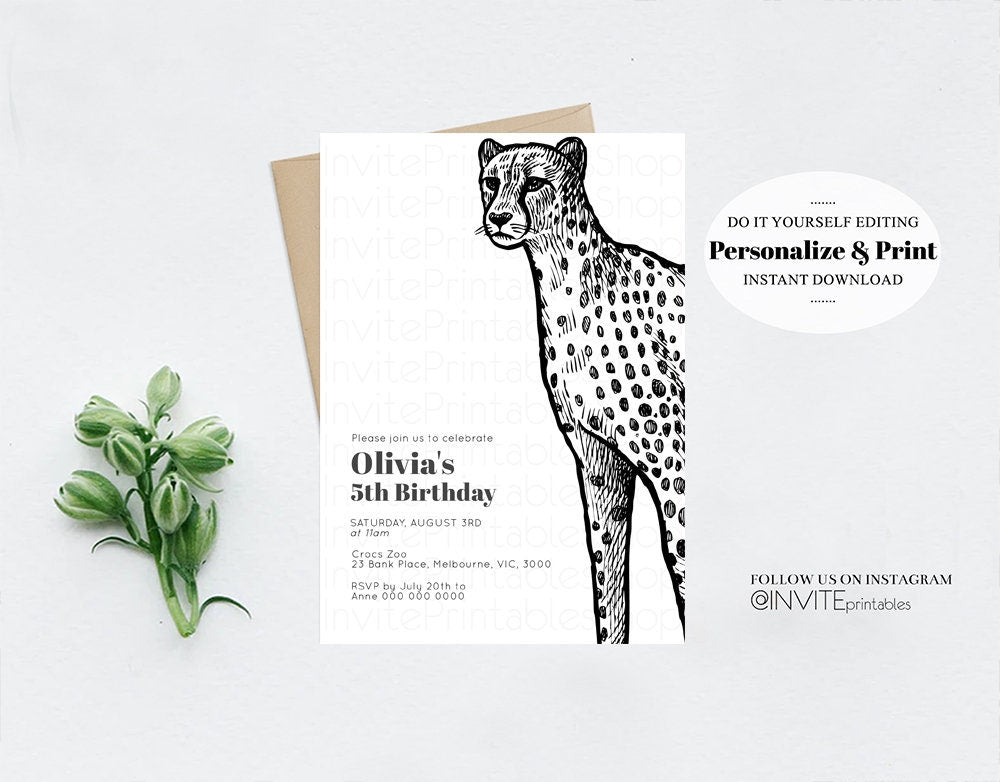 Cheetah Birthday Invitation Cheetah Invite Jungle Safari invite Watercolor Tropical Palm Invite Adventure Zoo Party Wild Animal Party