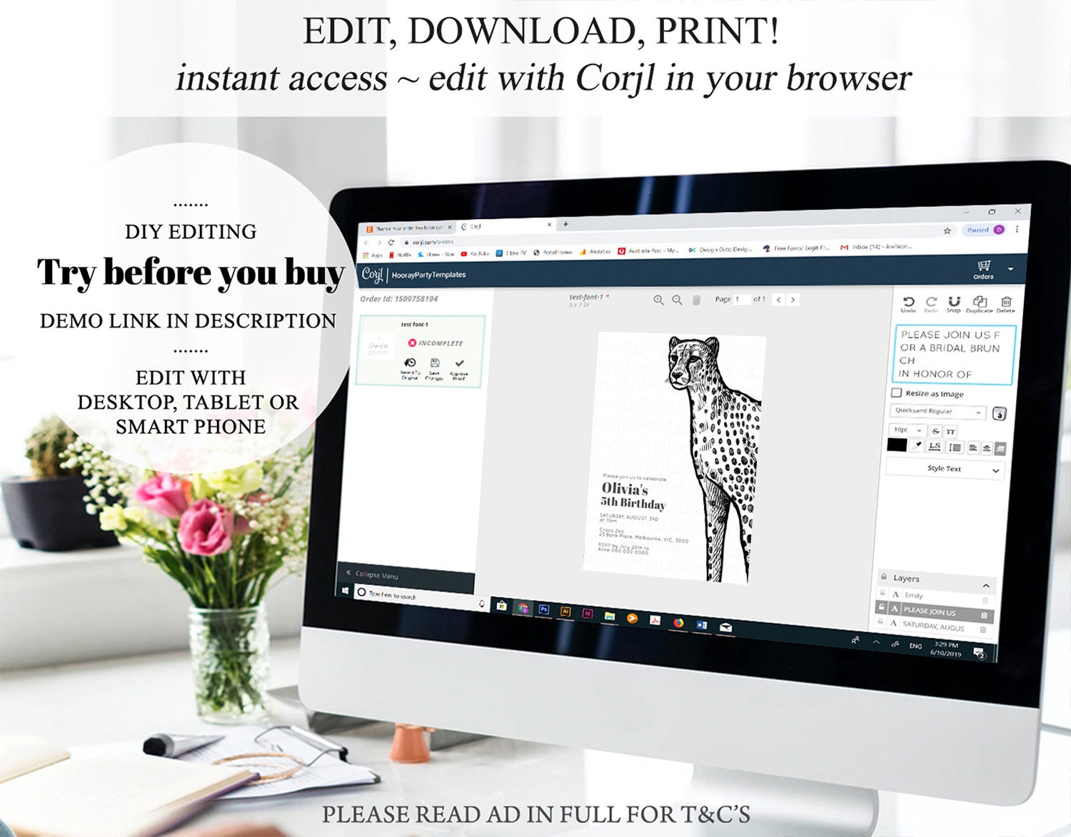 • After purchase, Corjl emails your editing link. Allow up to 15 minutes for delivery.