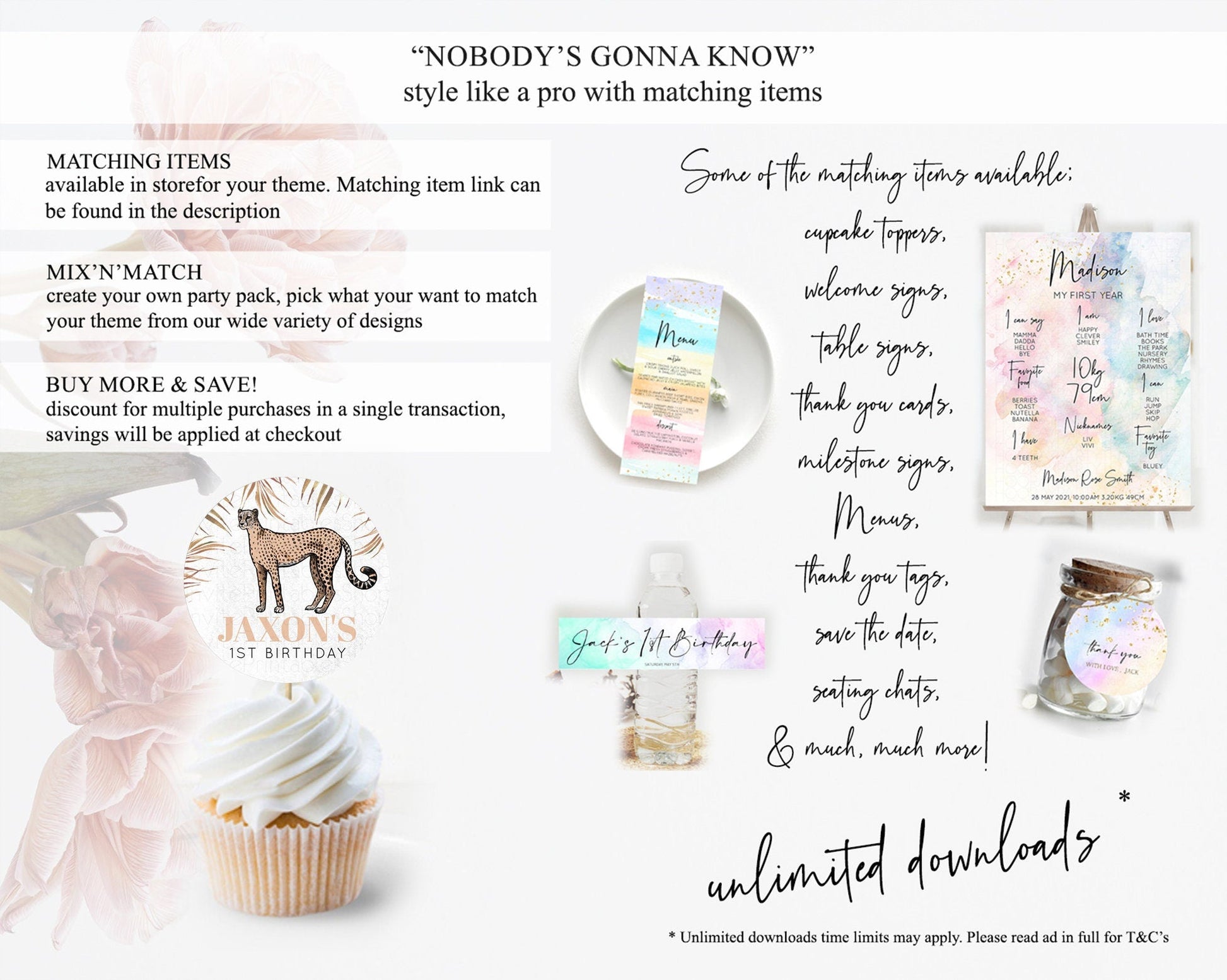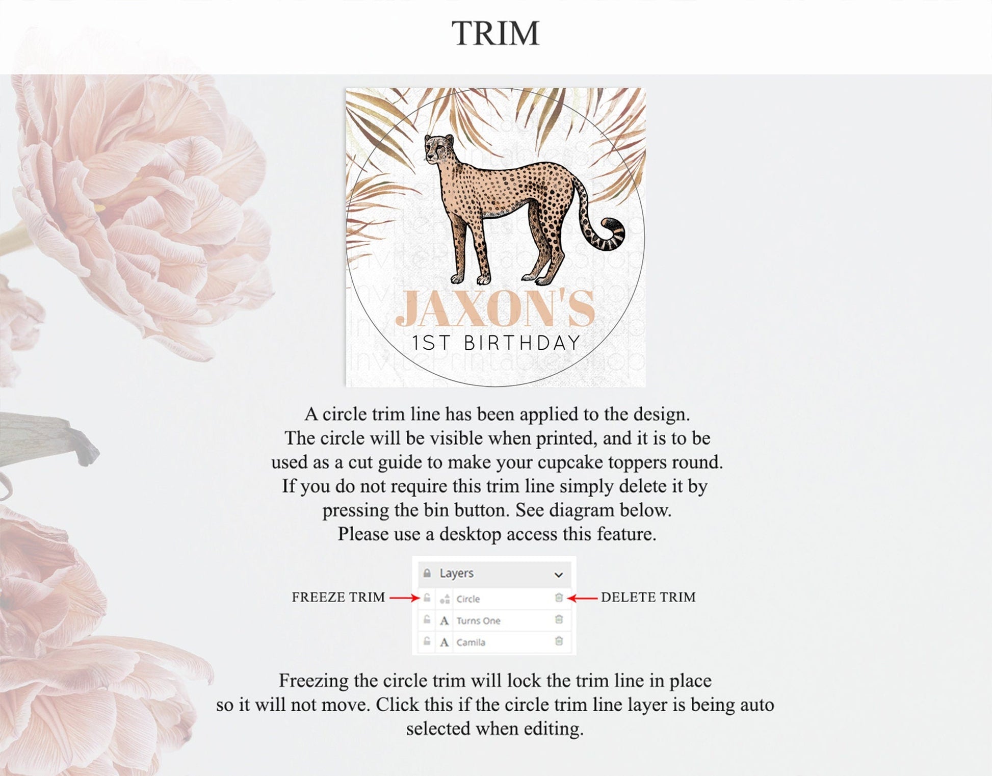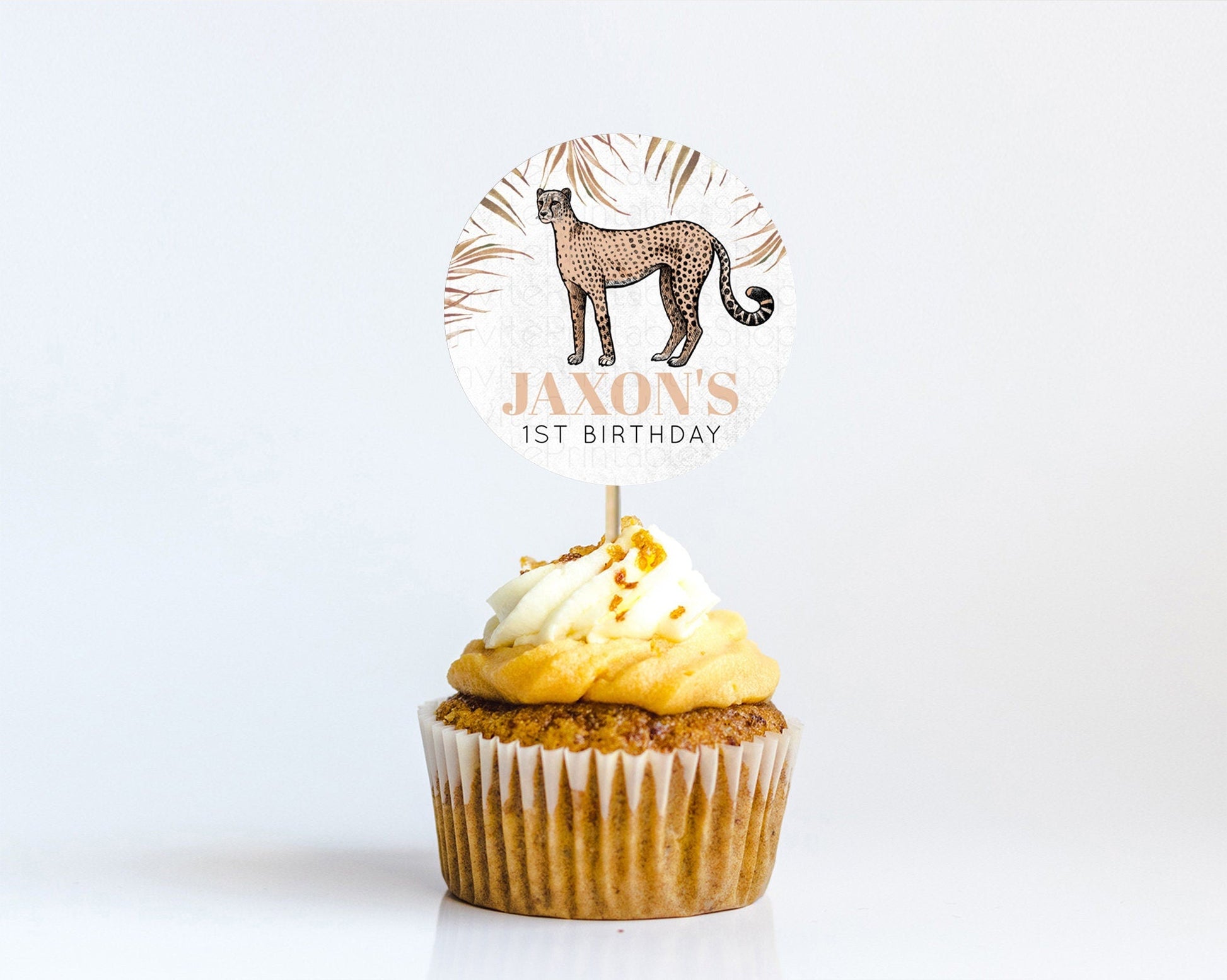 Cheetah Cupcake Toppers Cheetah Cupcake Cheetah Safari Cupcake Adventure Cheetah Cupcake Topper Palm Leaf Zoo First Birthday Decor D10291